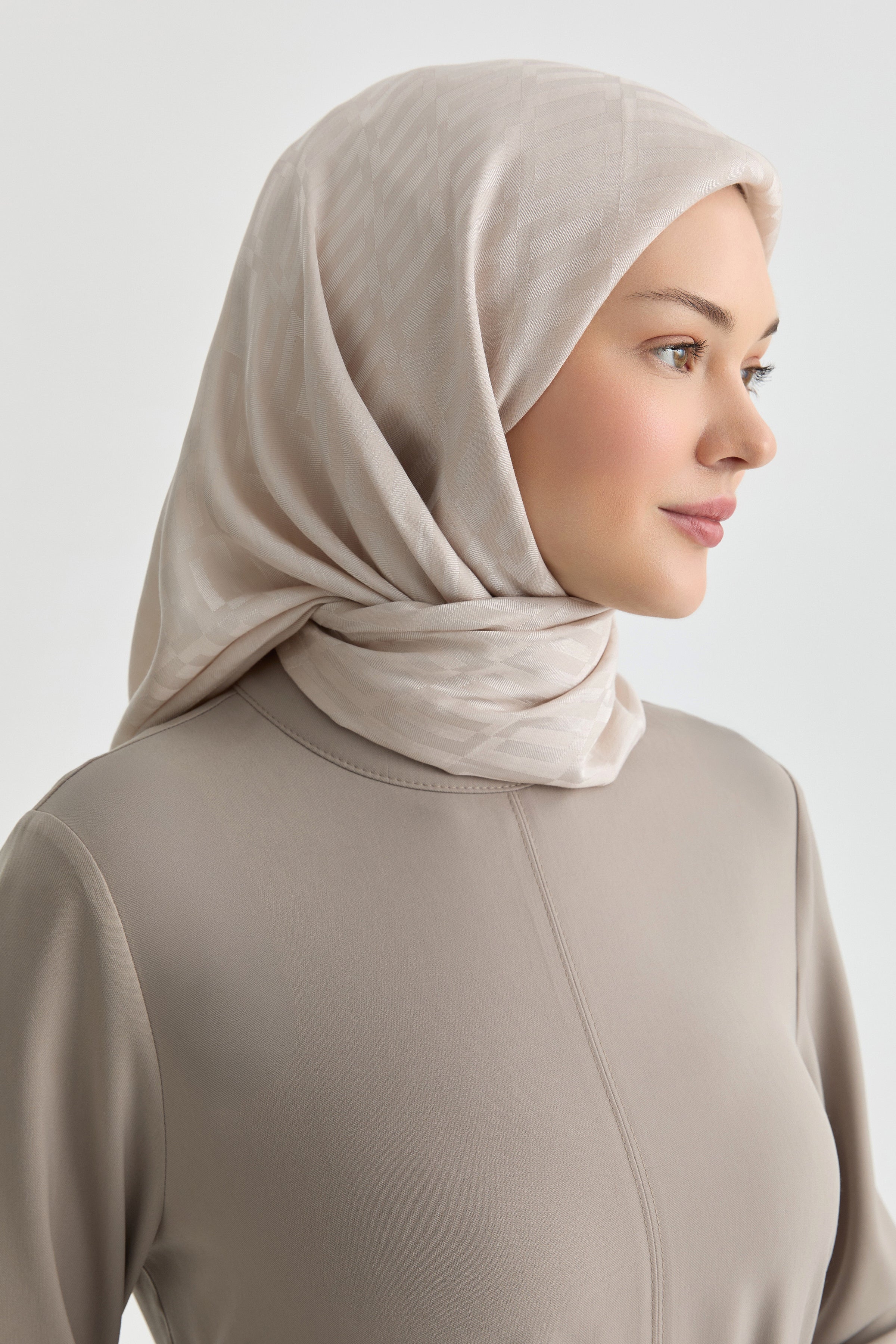 Zarif jakar dokusunda yer alan geometrik desenleriyle modern bir duruş sergileyen Naia naturel eşarp, doğal yapısıyla hafif ve nefes alan bir kullanım sunar. Sade şıklığı güçlü bir tasarımla tamamlayan zamansız bir parçadır.