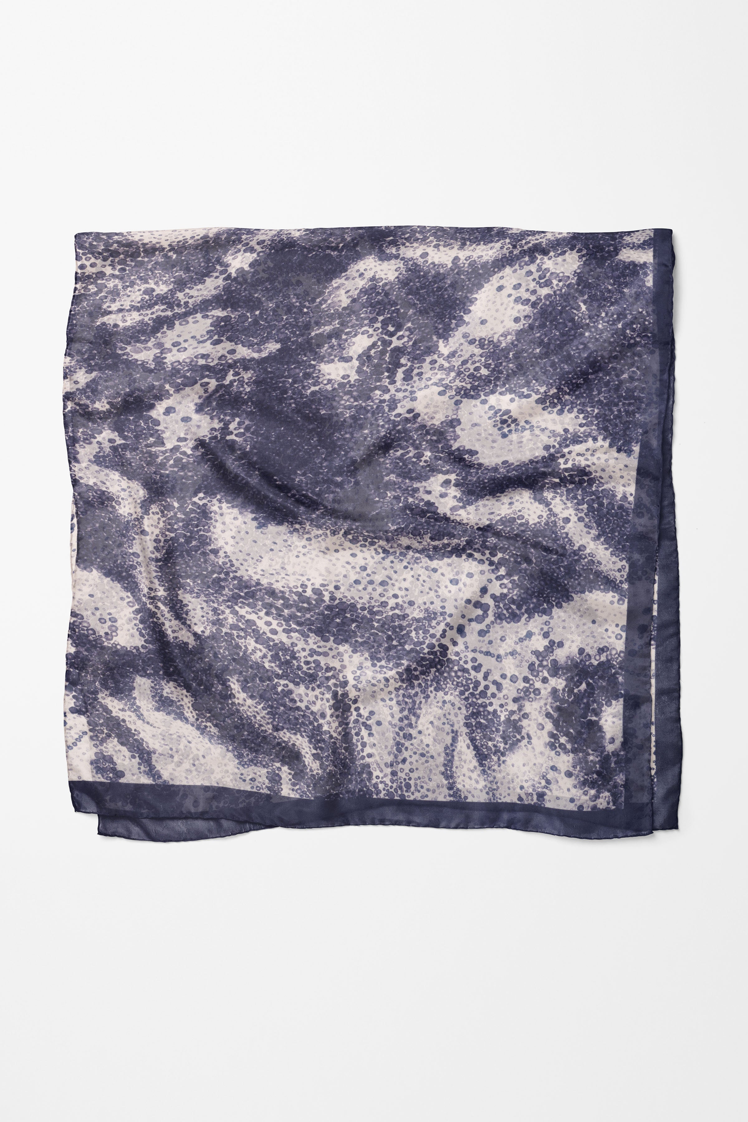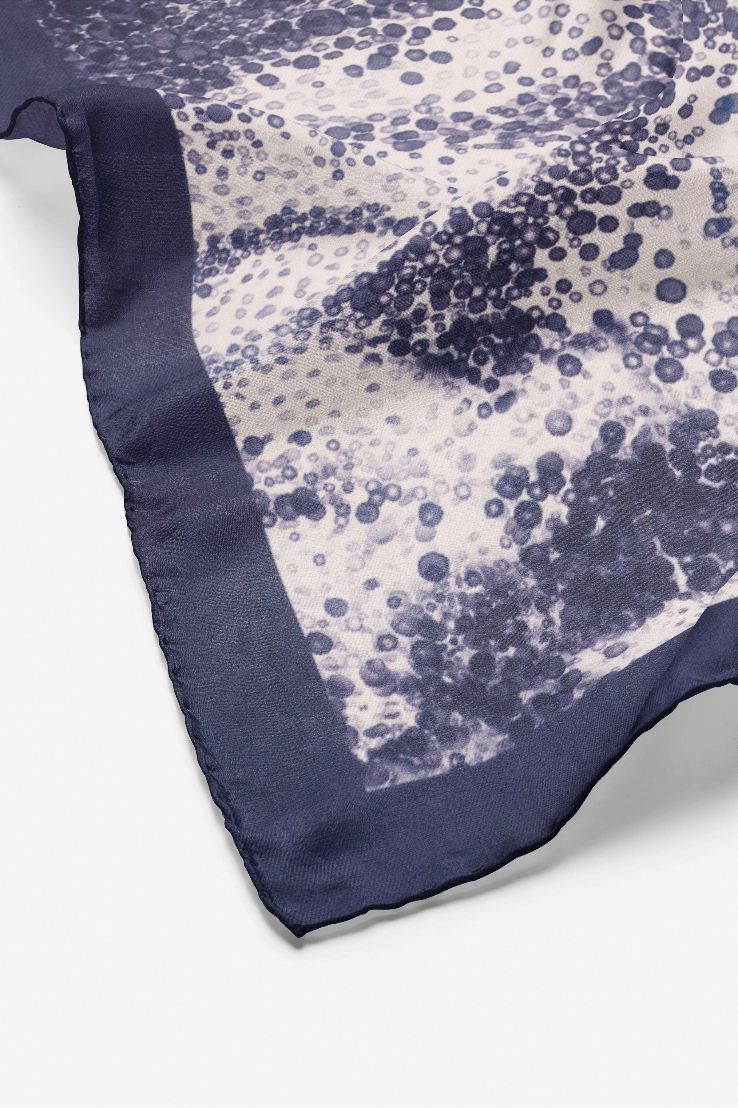 Lekesel puantiyeli twill ipek eşarp, modern desen anlayışını klasik zarafetle buluşturan şık bir parça.