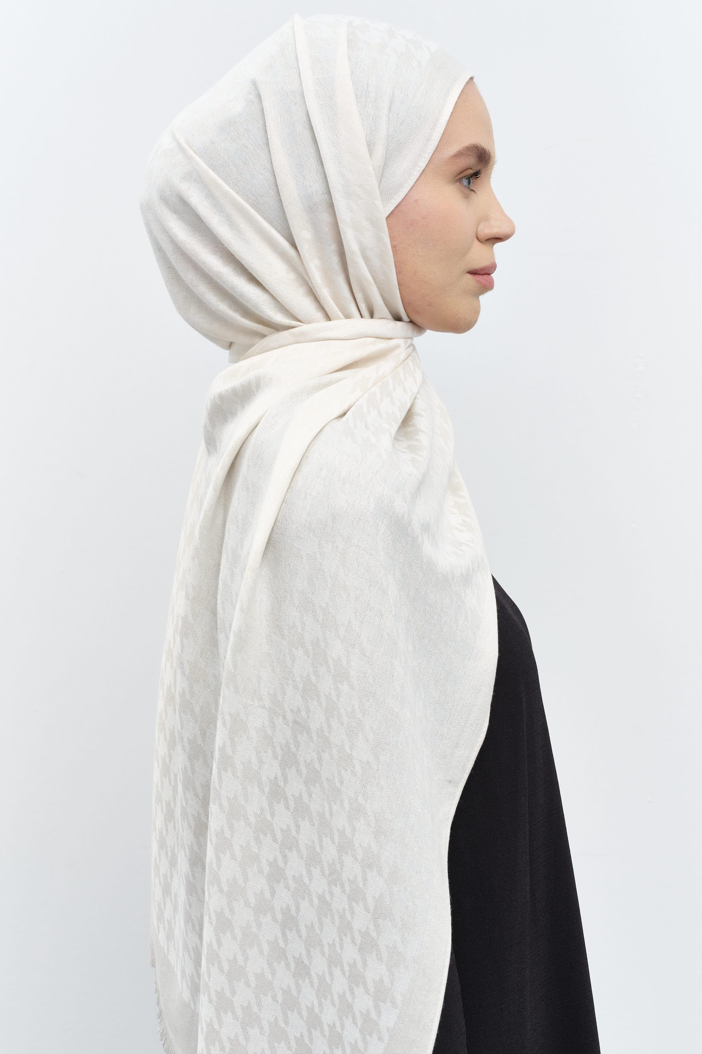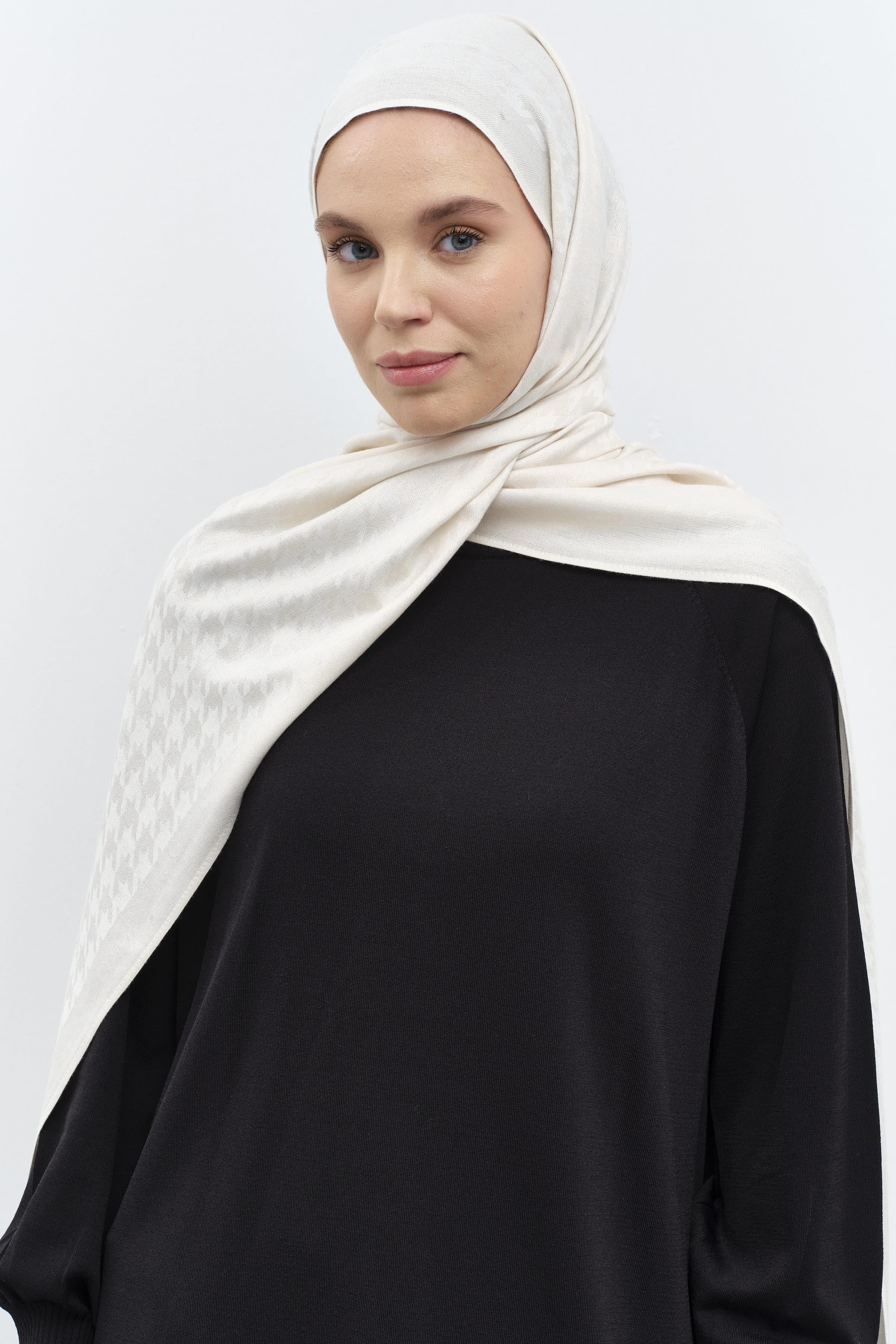 Kazayağı deseniyle klasik ve modern tarzı buluşturan bu şal, zamansız şıklığın temsilcisi. Yumuşak dokusu ve hafif yapısıyla gün boyu konfor sağlarken, kombinlerinize sofistike bir hava katar.