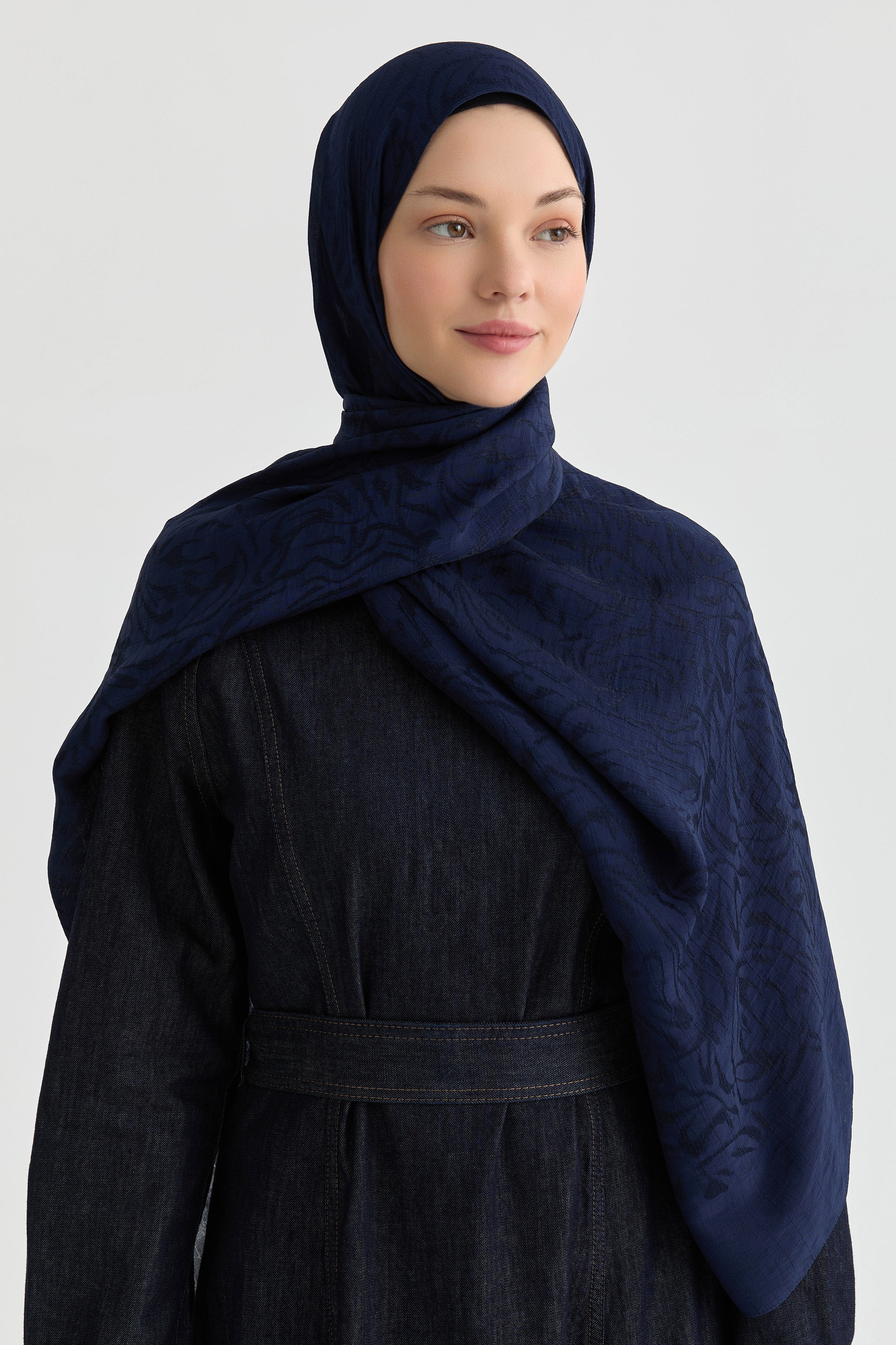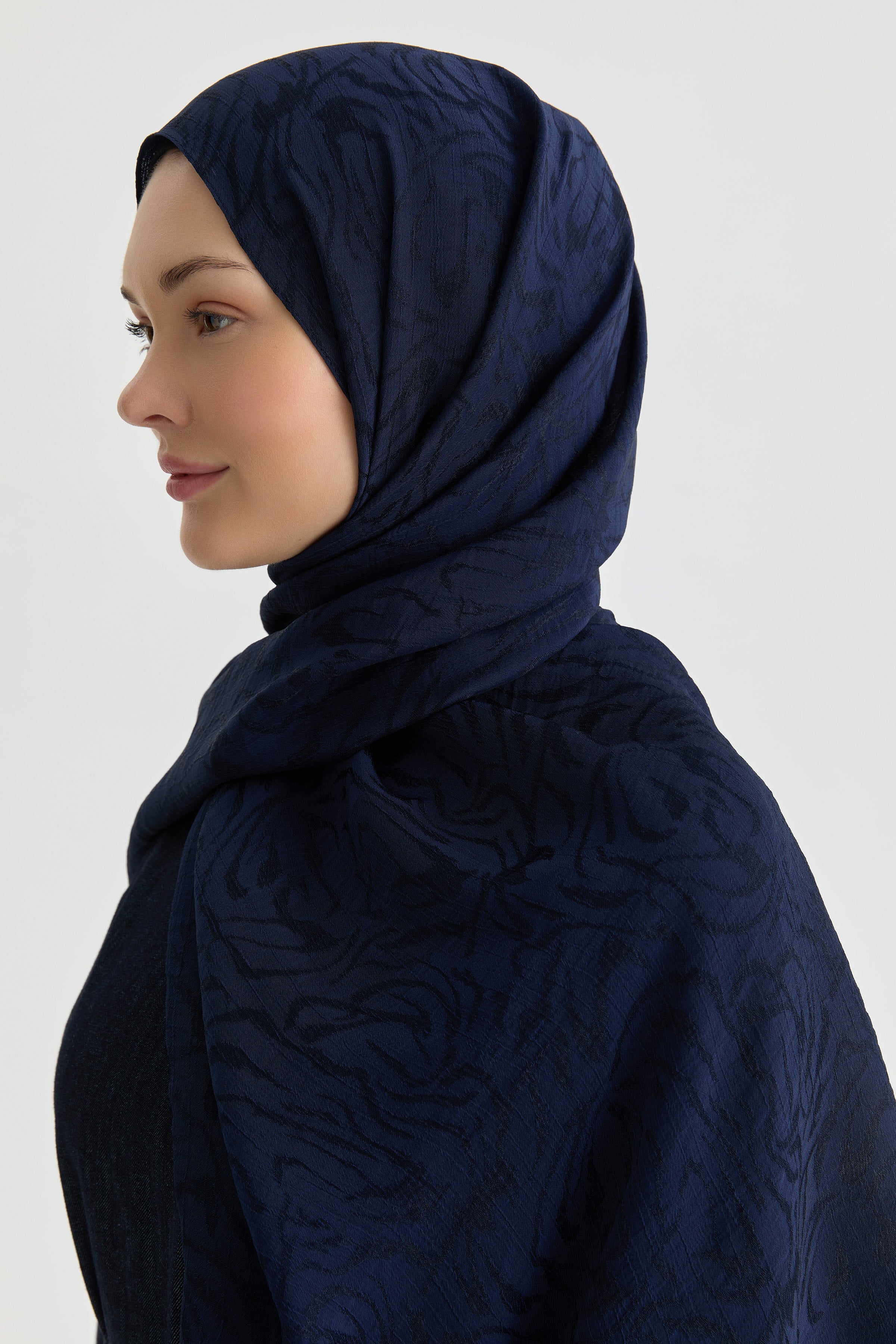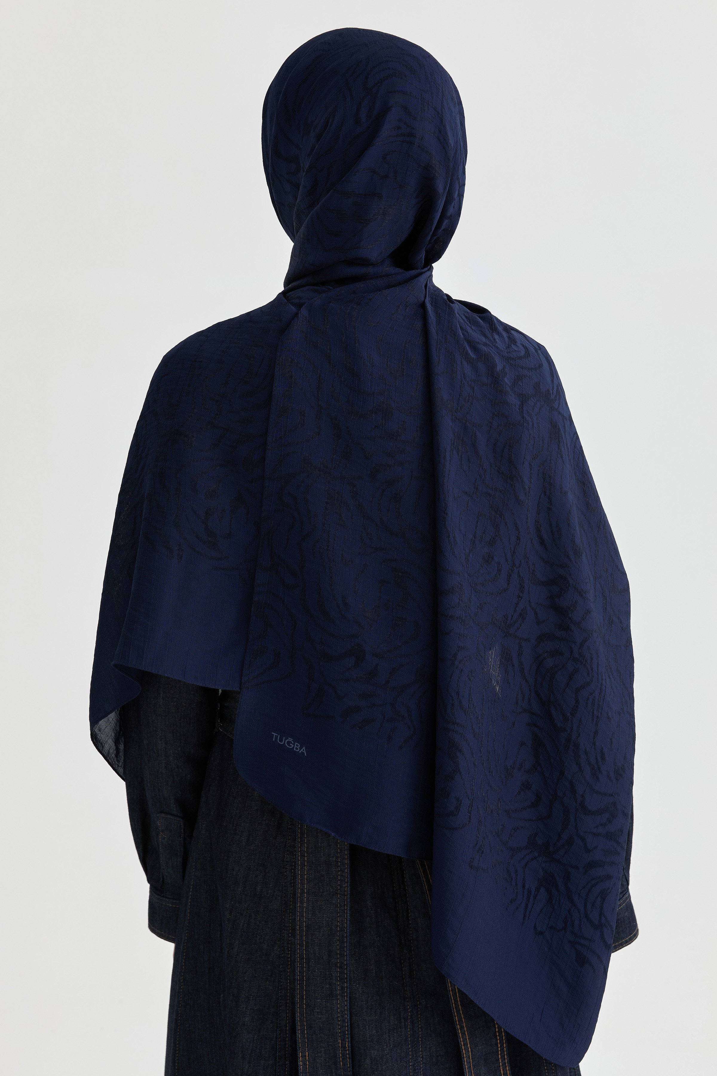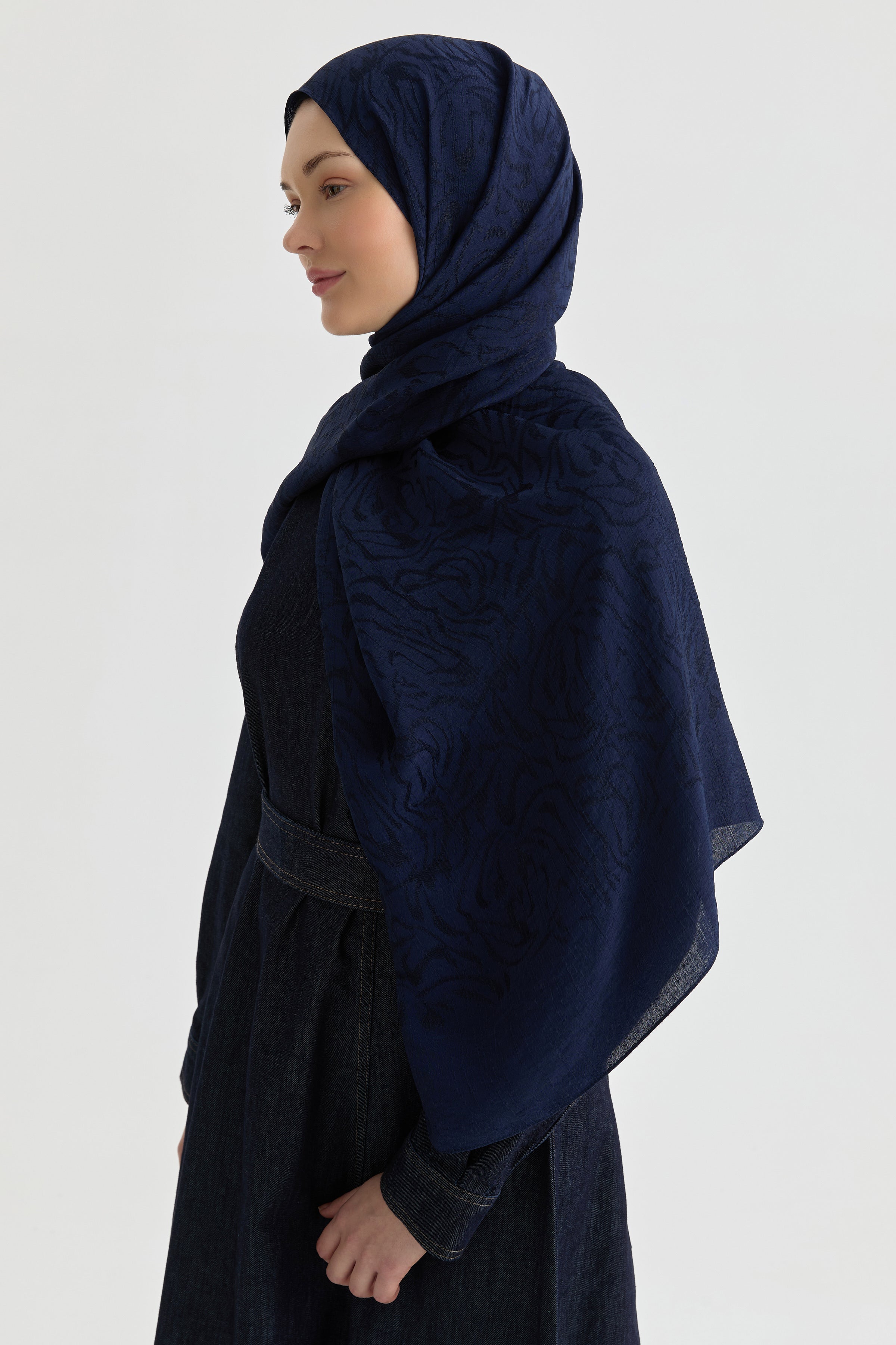 Ebru Desenli Natural Eşarp - Açık Mavi