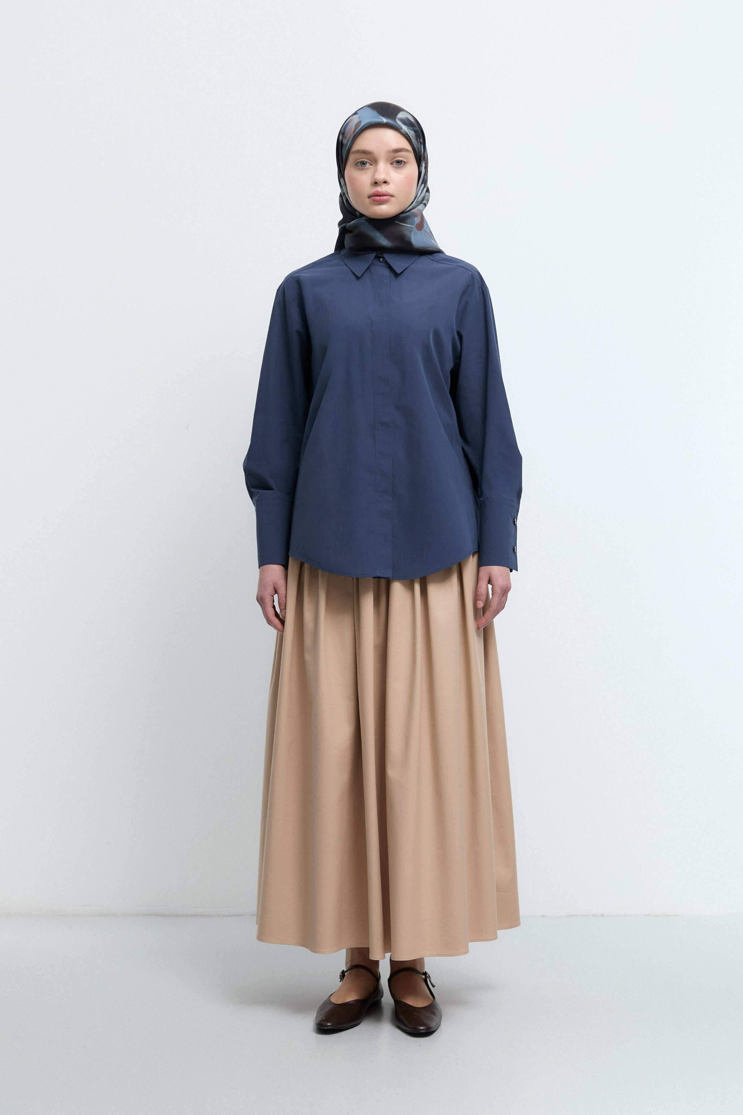 Pamuklu Uzun Kollu Gömlek - Lacivert