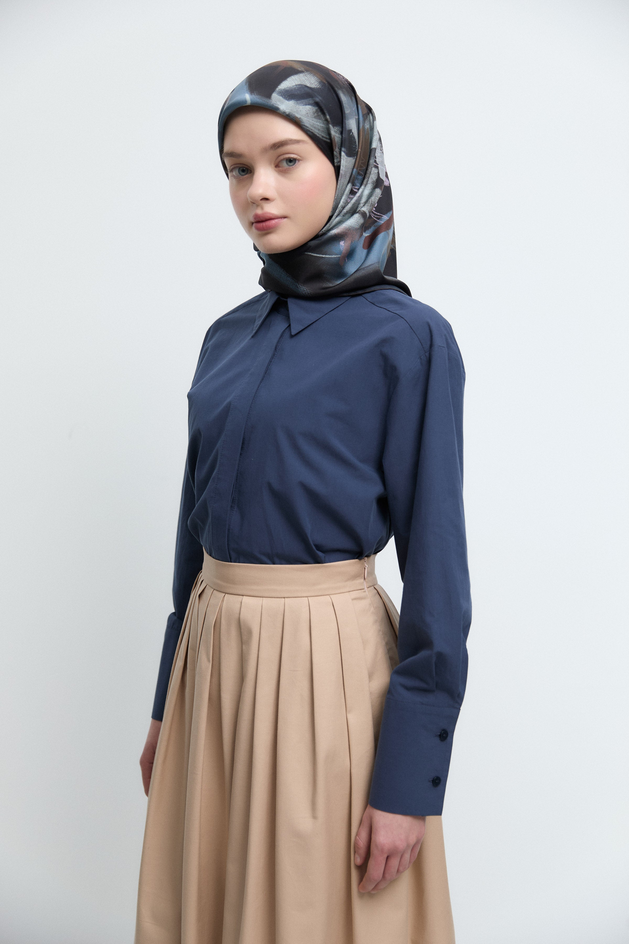 Gülşah Twill İpek Eşarp - İndigo