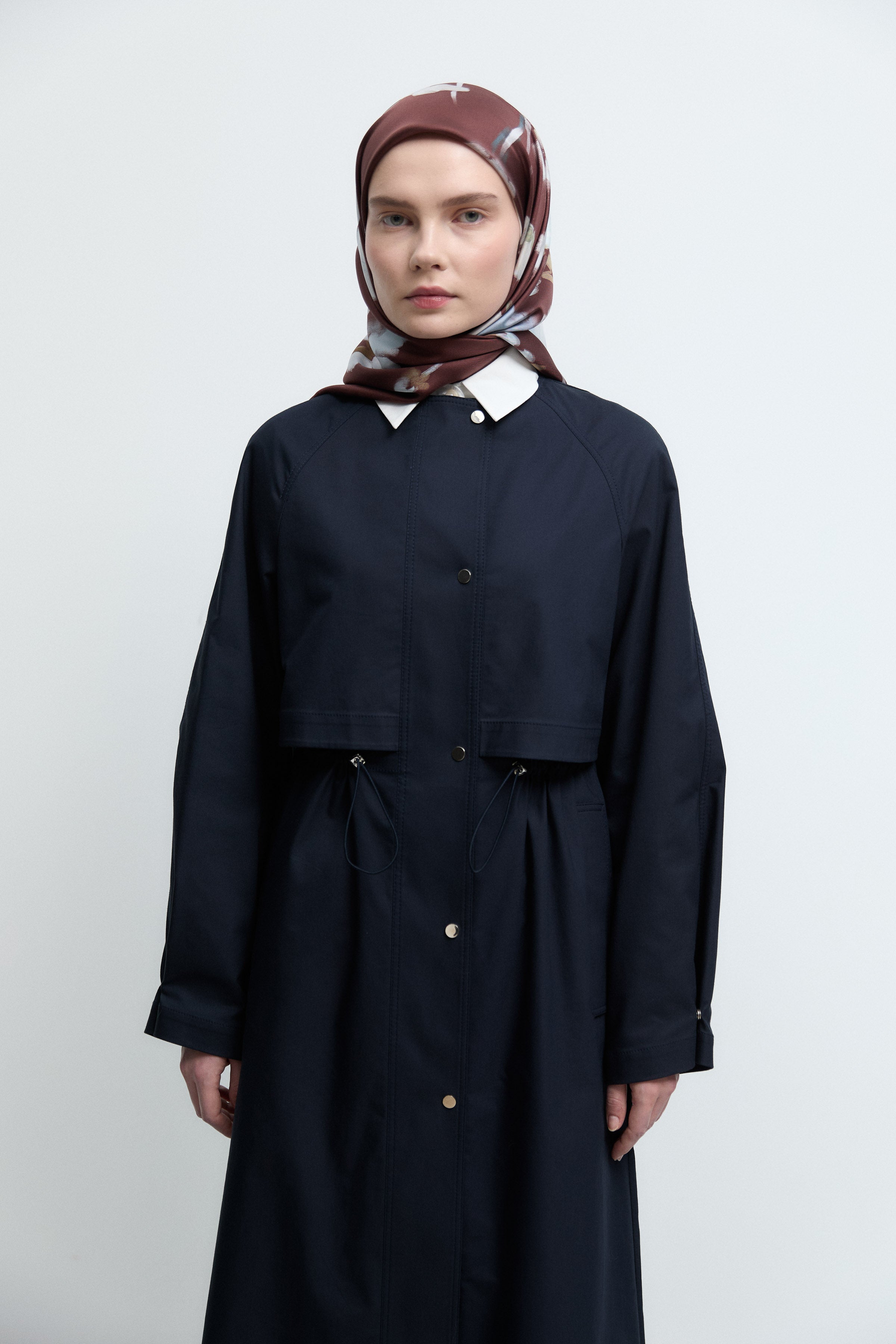 Beli Büzgülü Pardesü - Lacivert