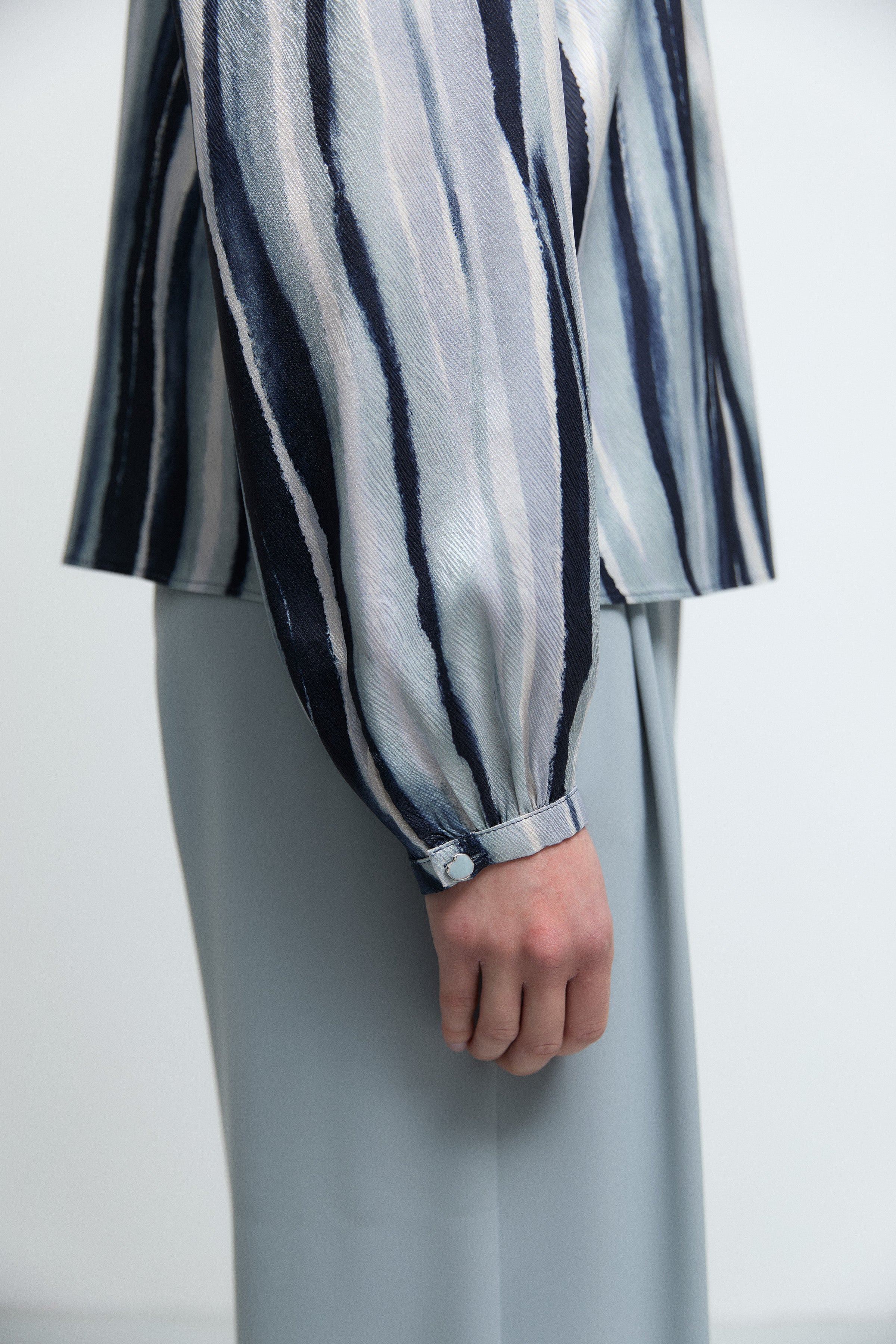 Kolları Düğmeli Bluz - Lacivert