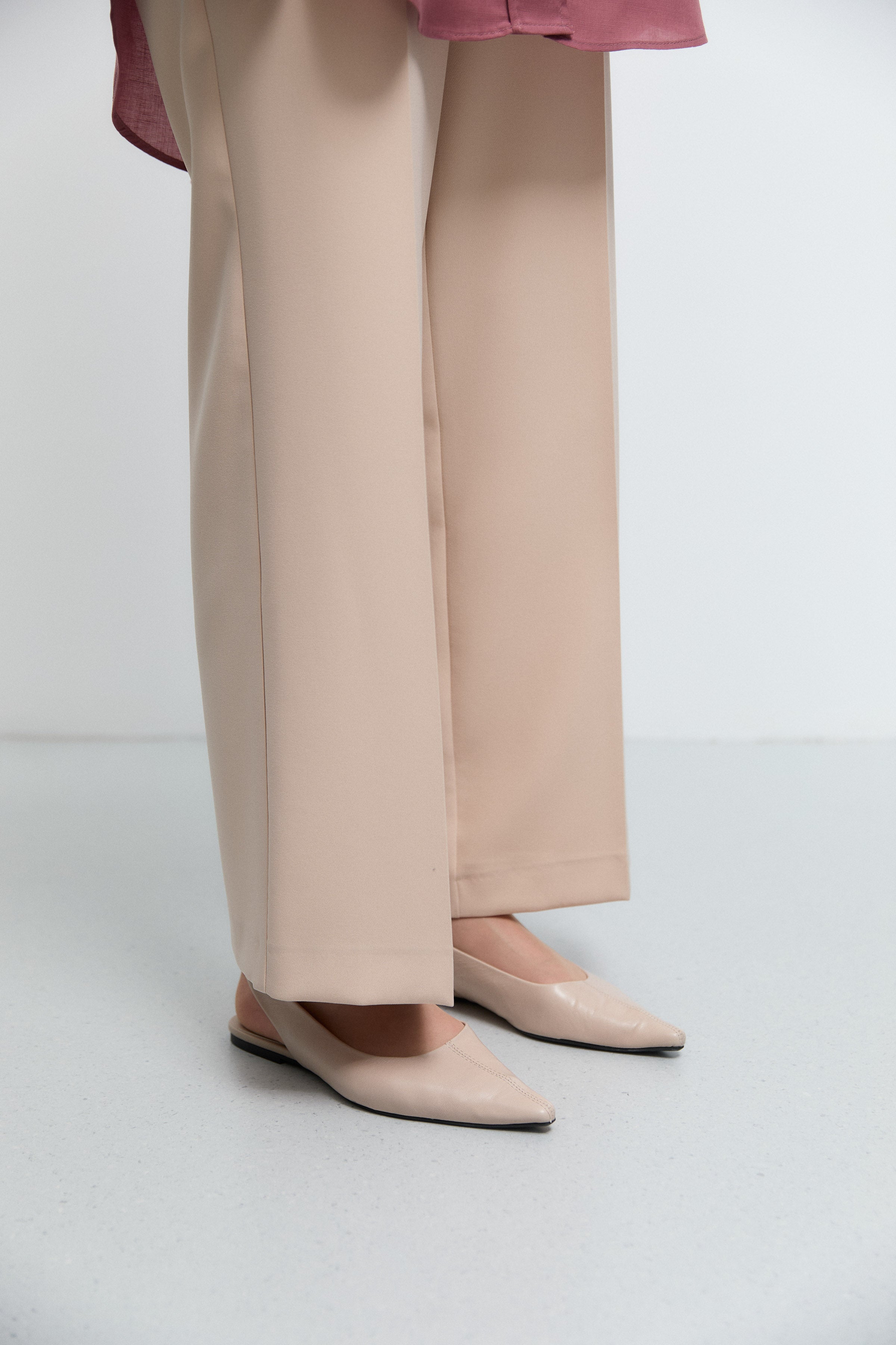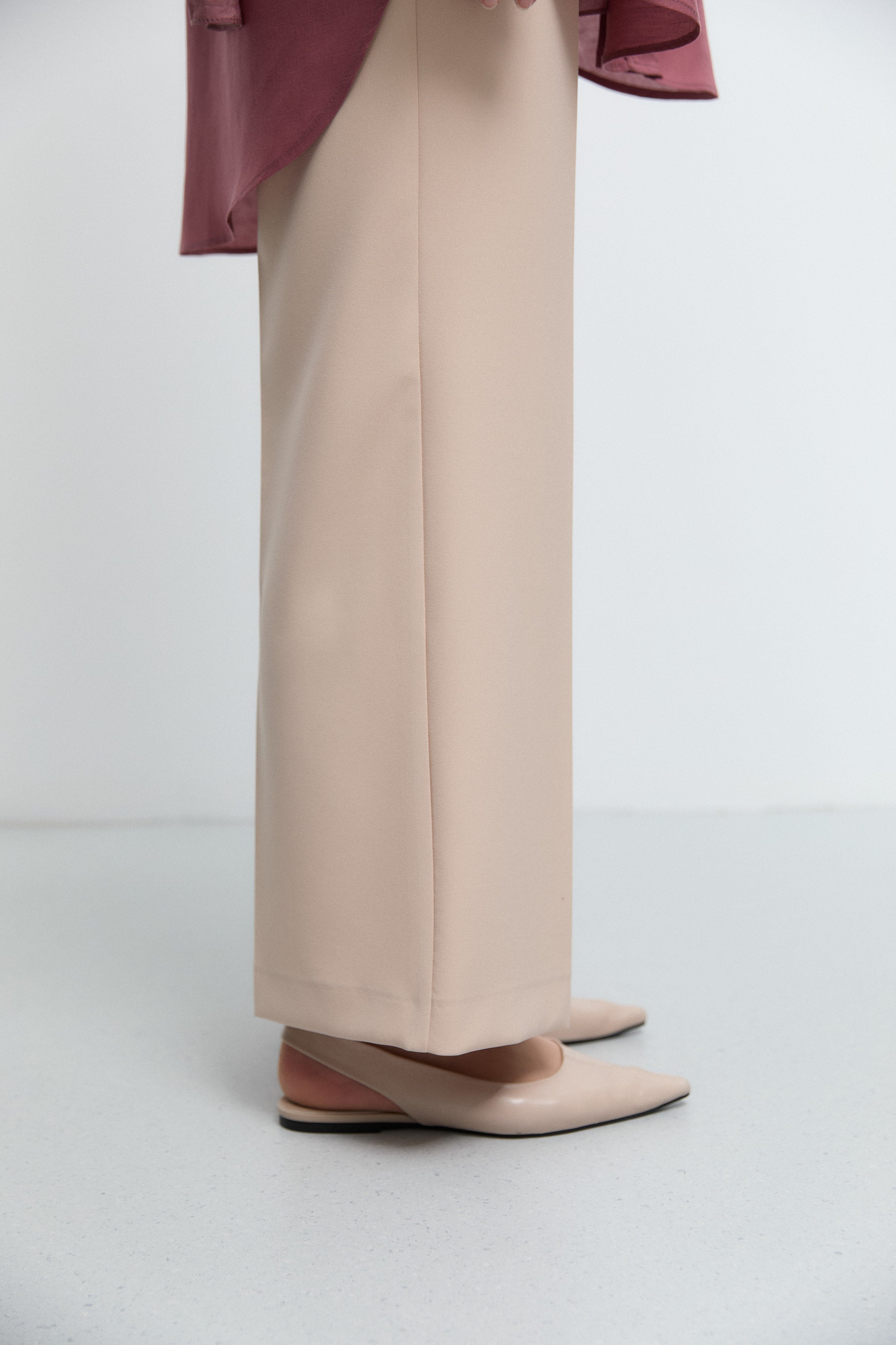 Belden Yarım Lastikli Basic Pantolon - Bej