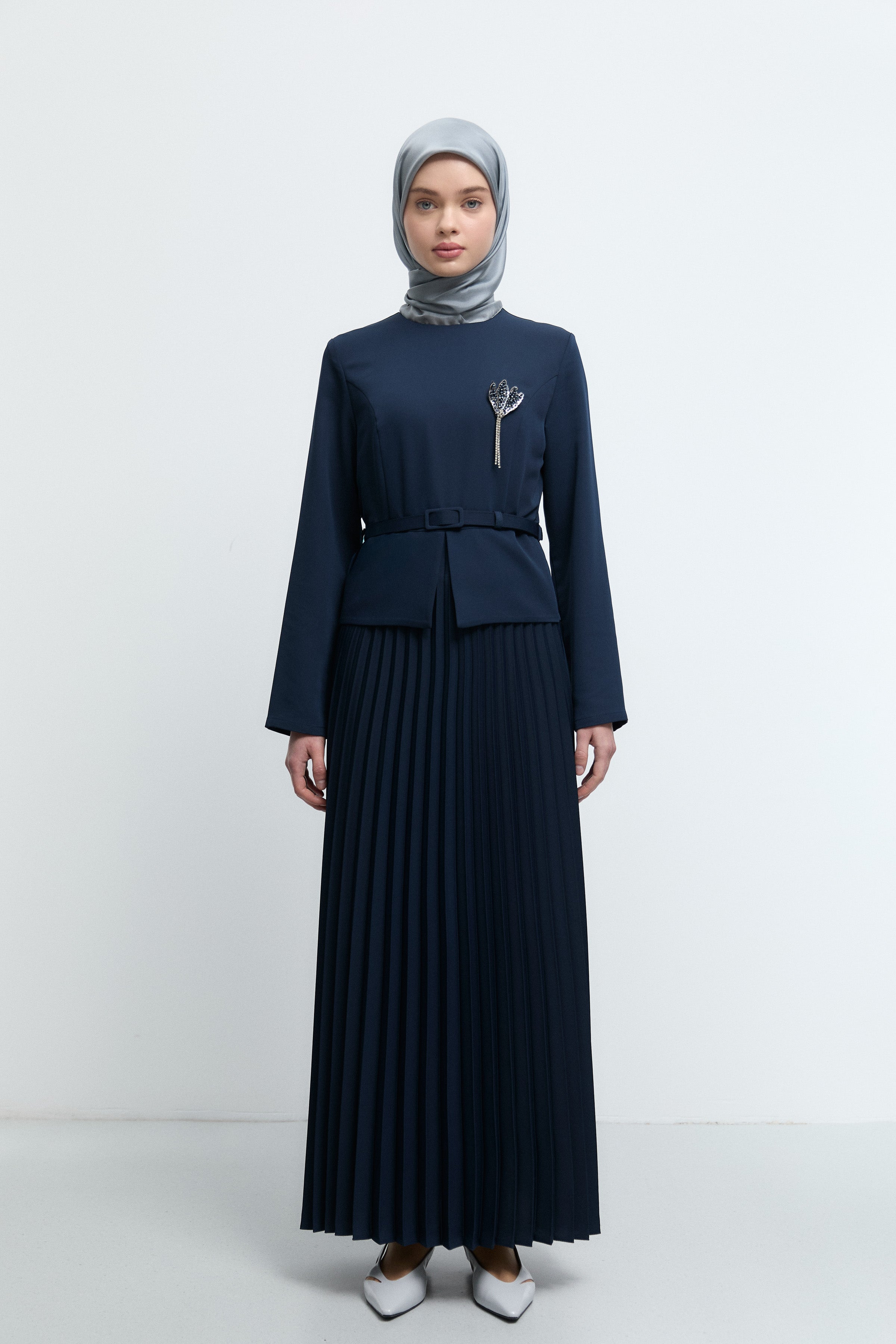 Kemer Detaylı Elbise - Lacivert
