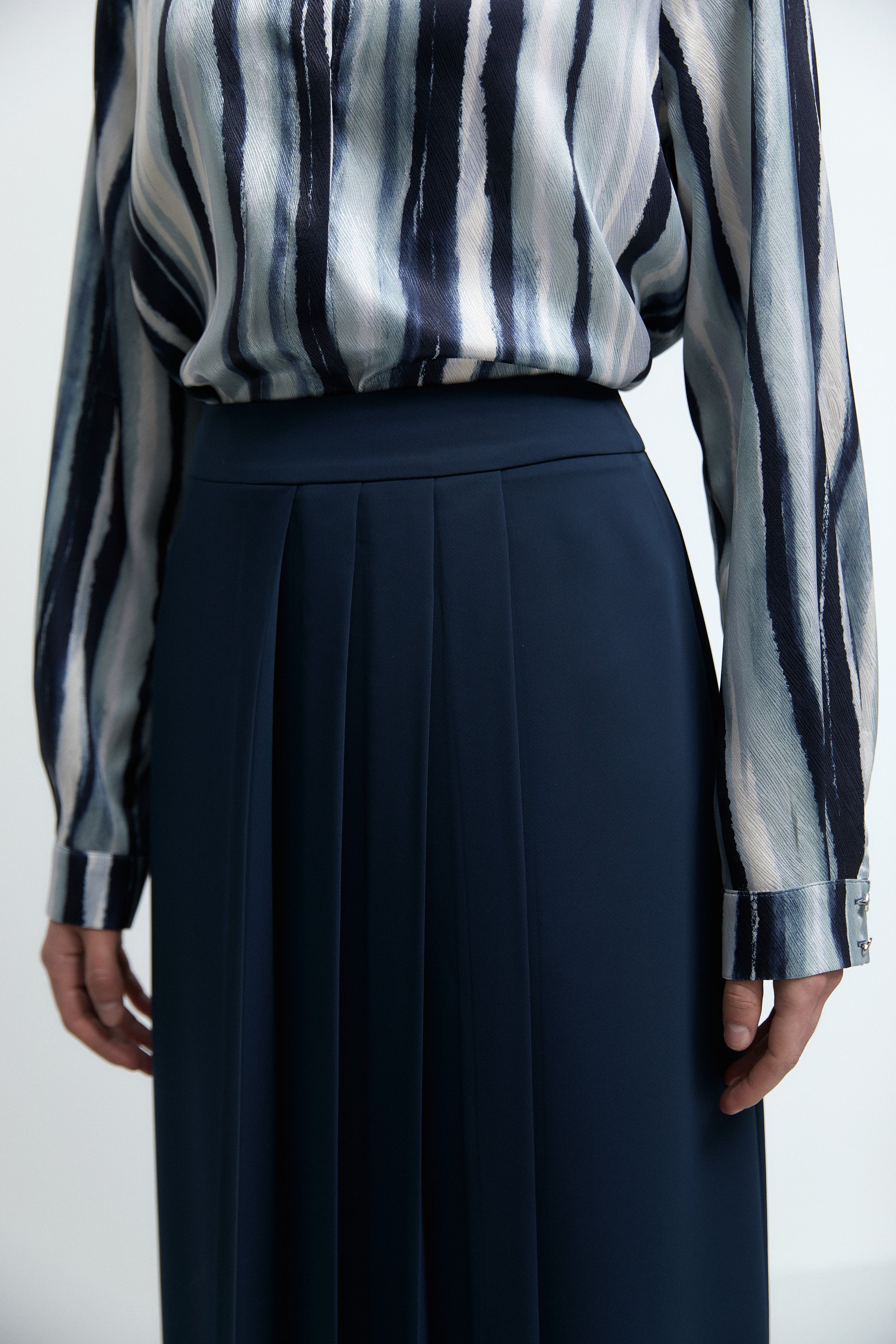 Önden Kırma Detaylı Etek - Lacivert