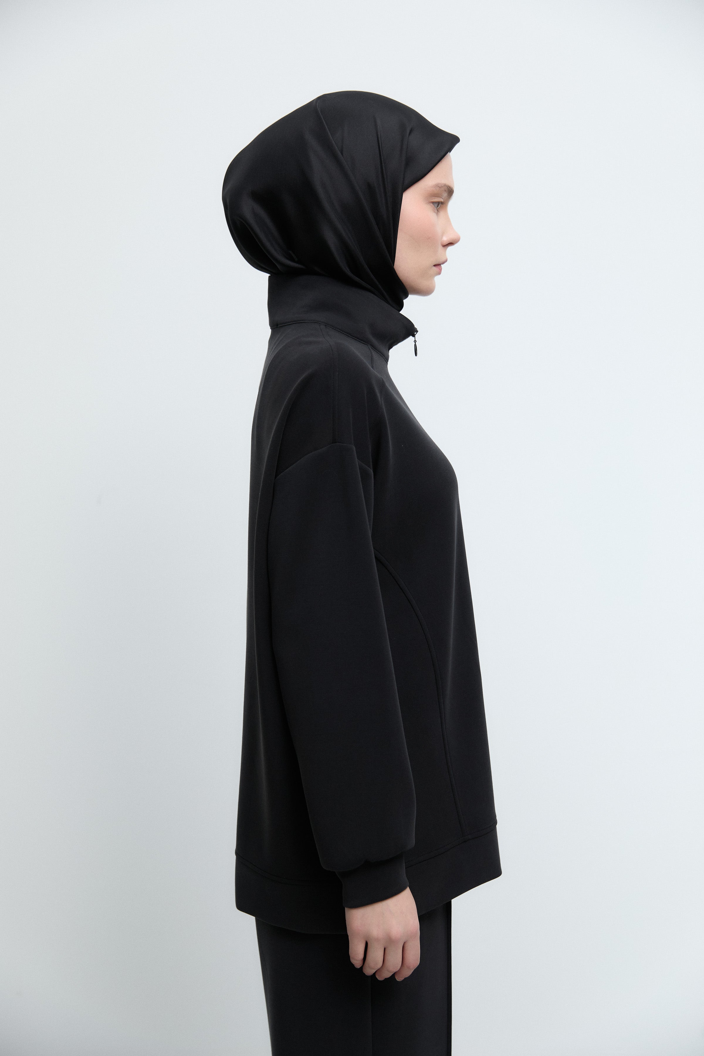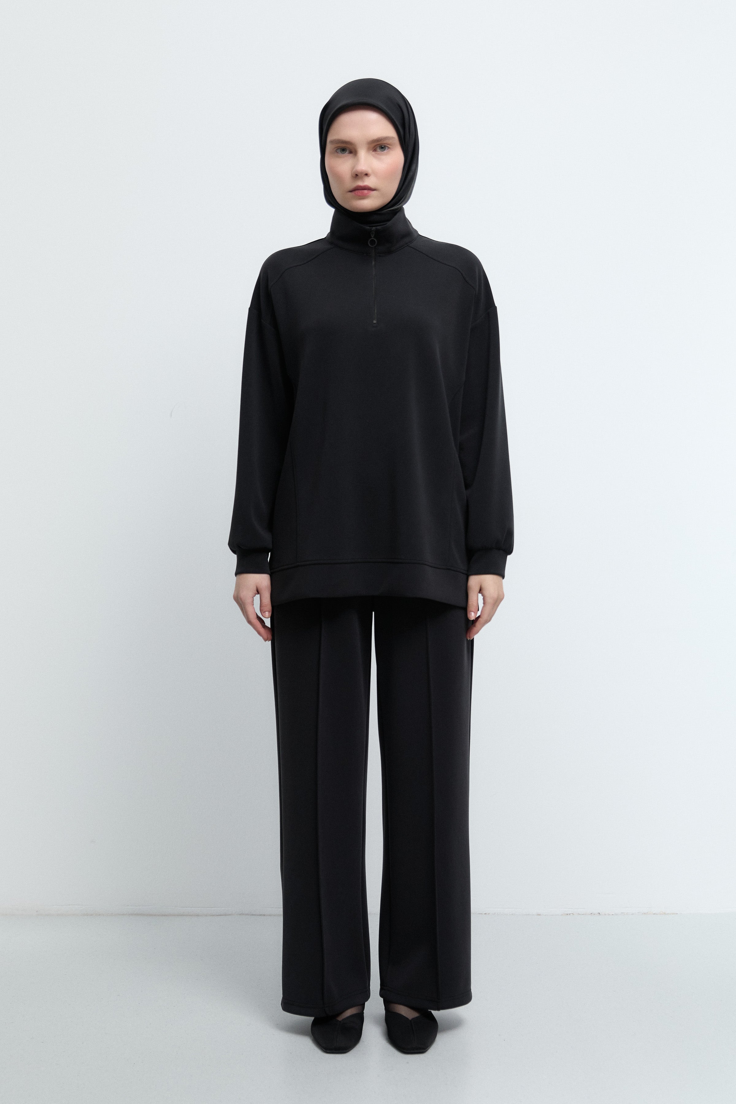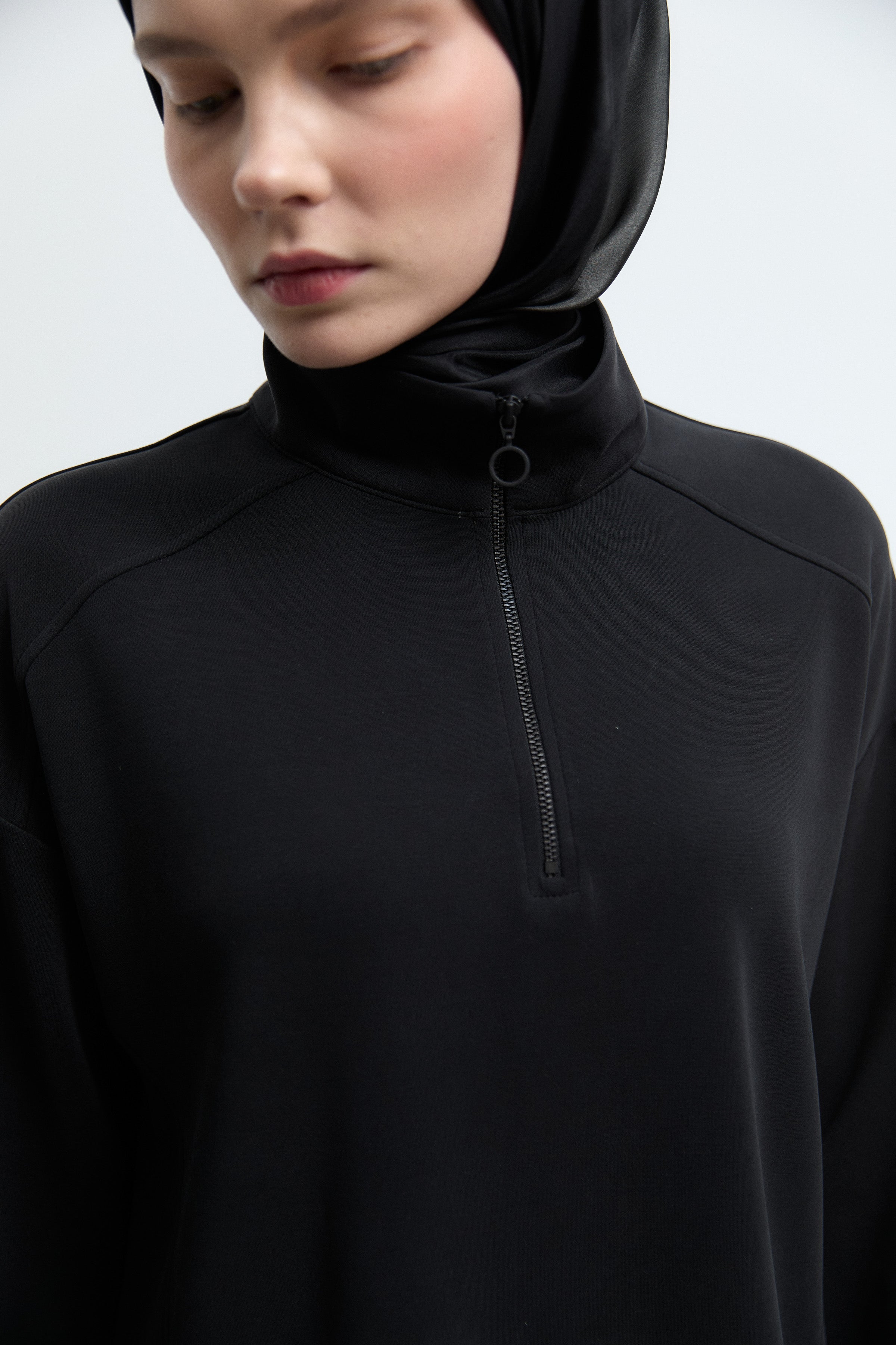 Önü Fermuarlı Sweat - Siyah