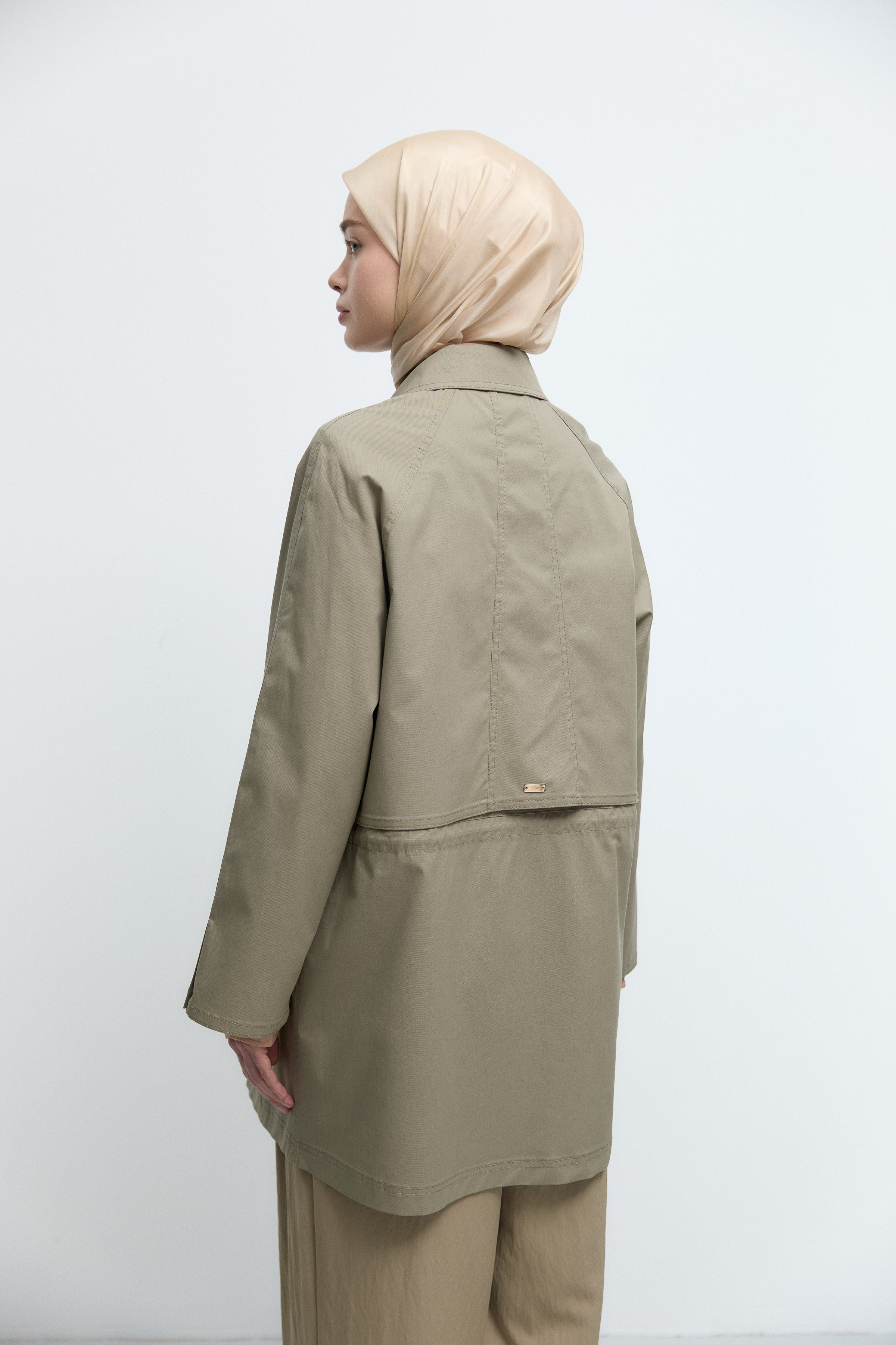 Yanları Dikiş Detaylı Trençkot - Göl Yeşili
