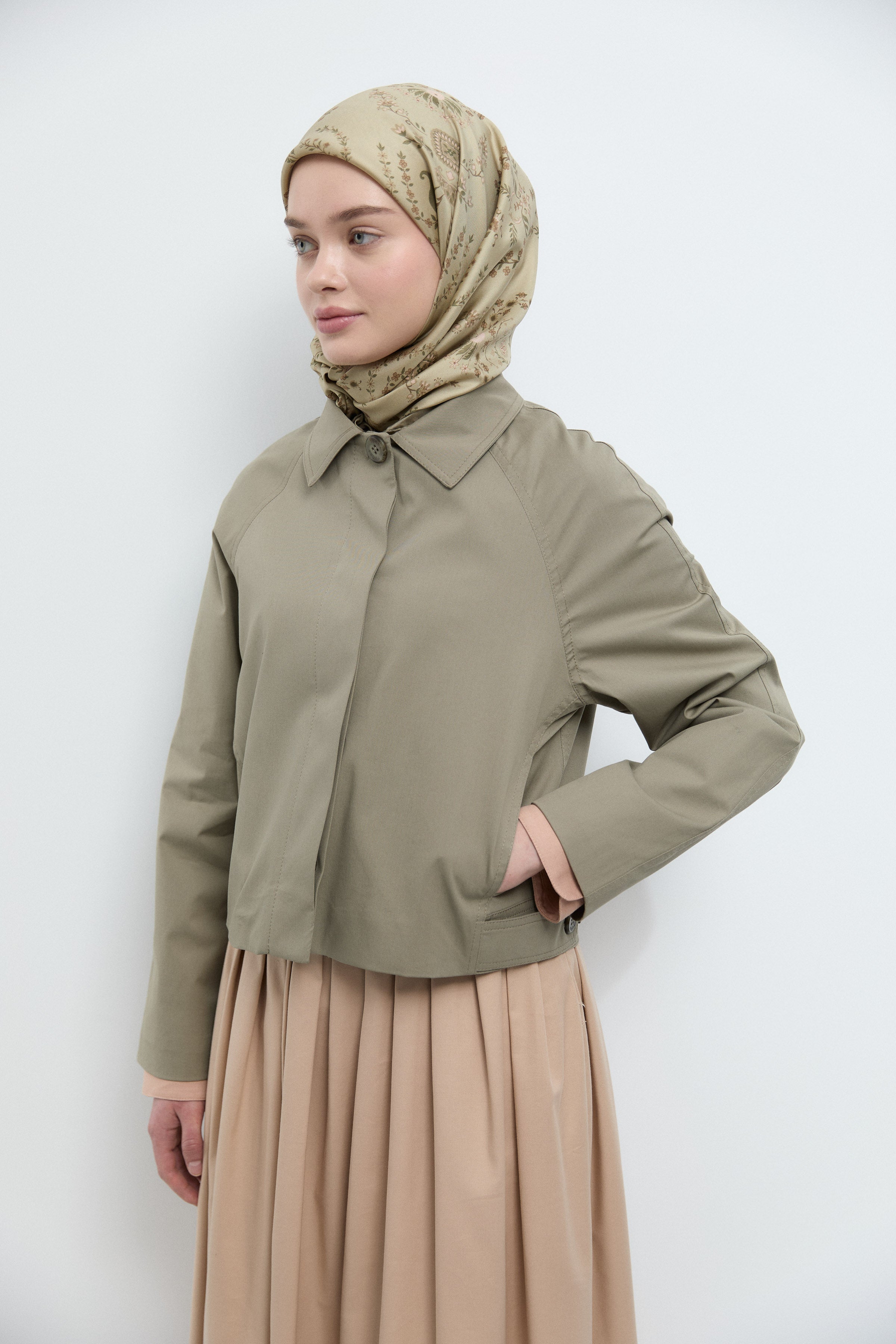 Önden Büyük Cepli Trençkot - Göl Yeşili