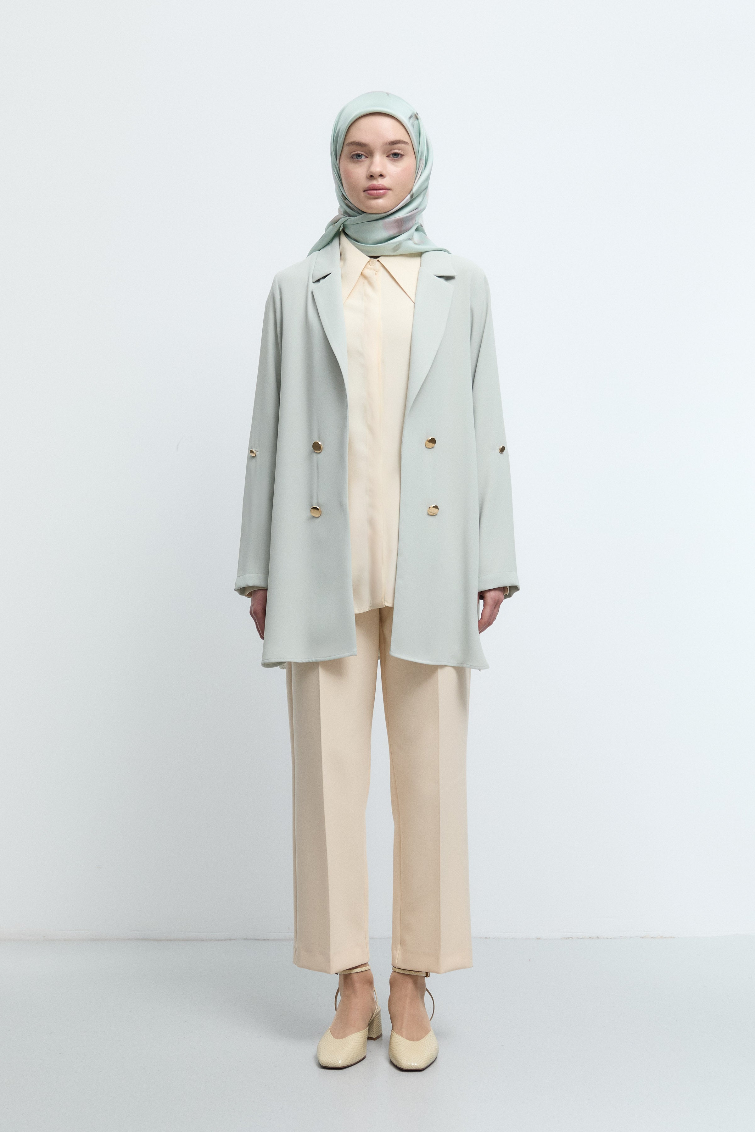 Düğmeli Ceket - Su Yeşili