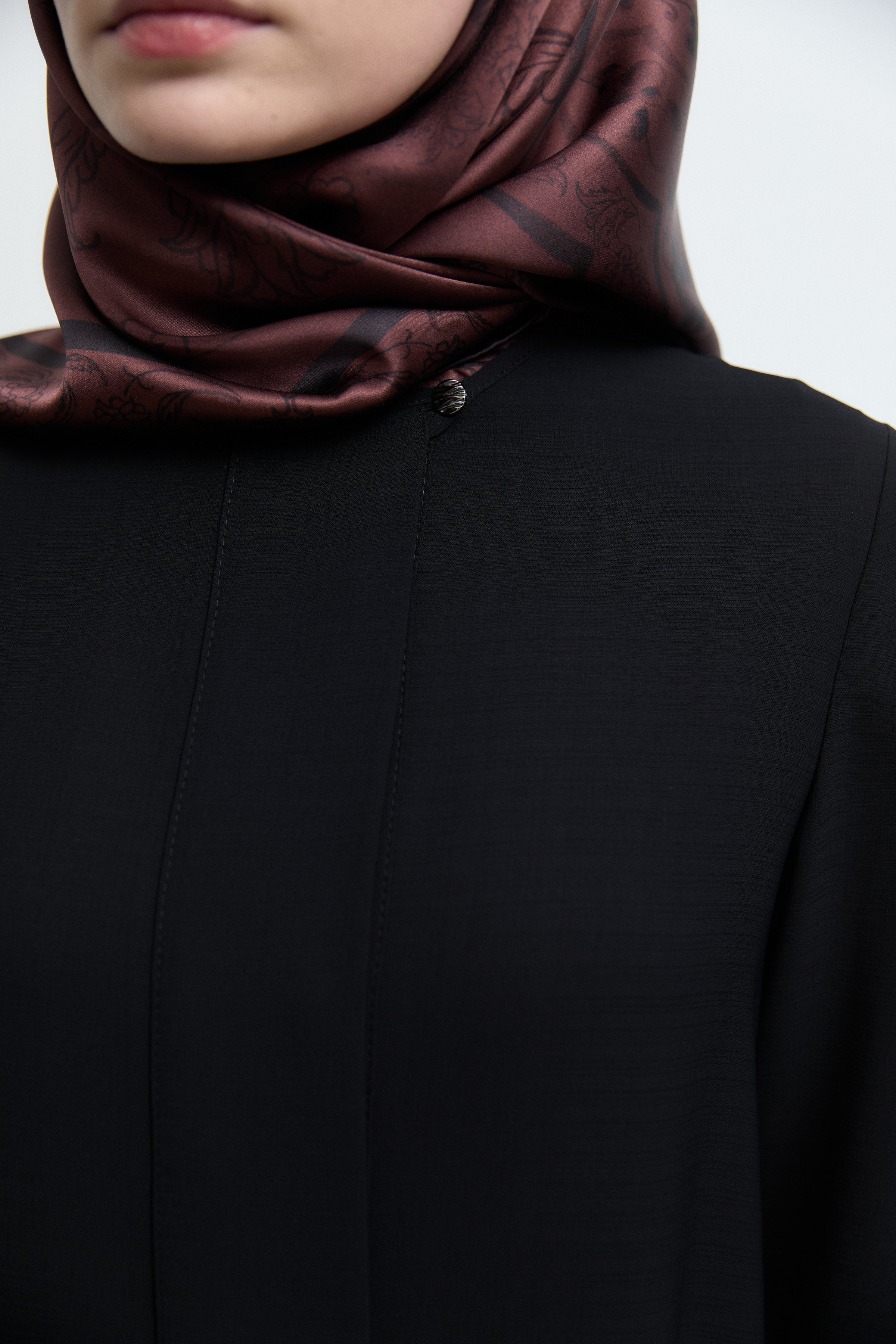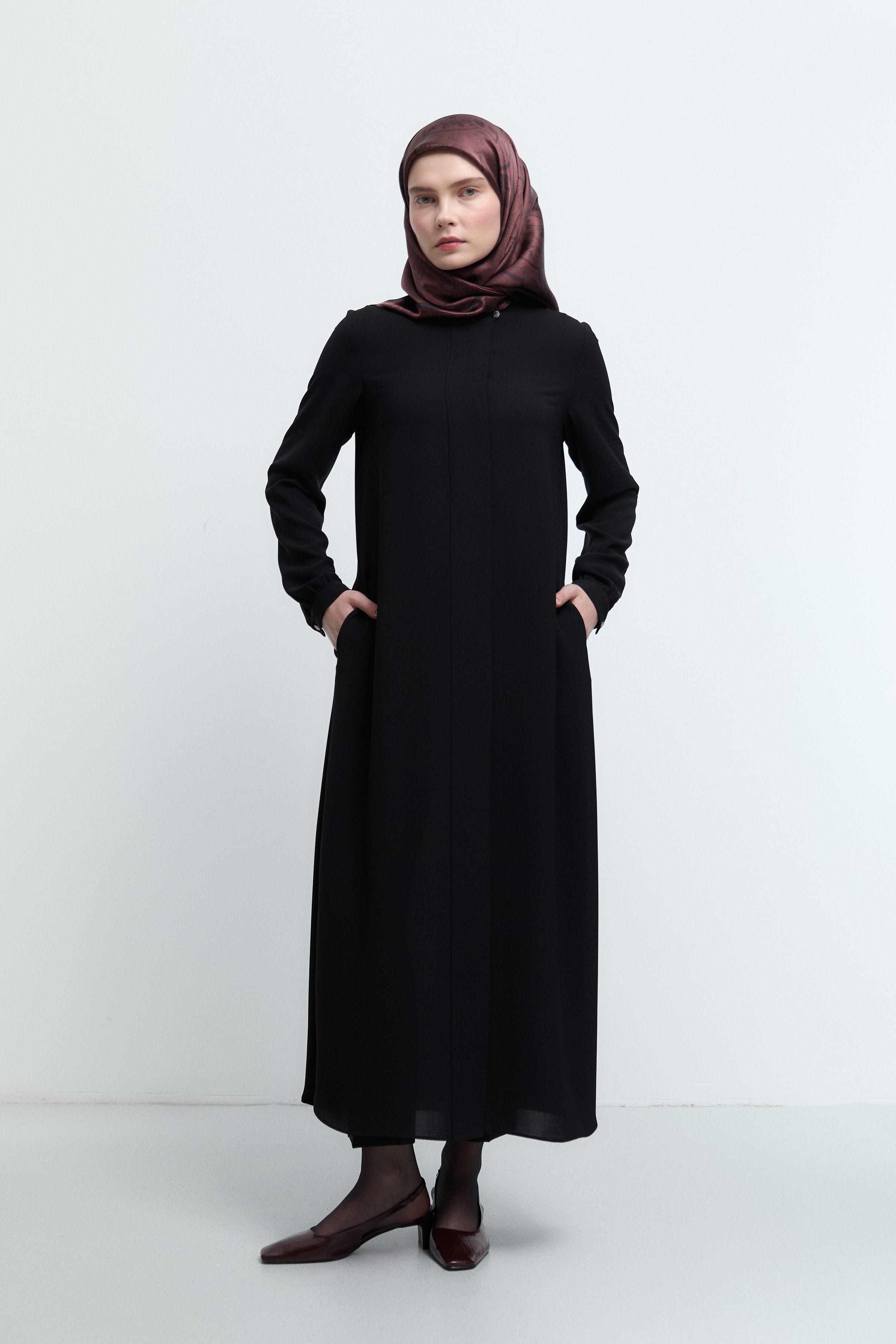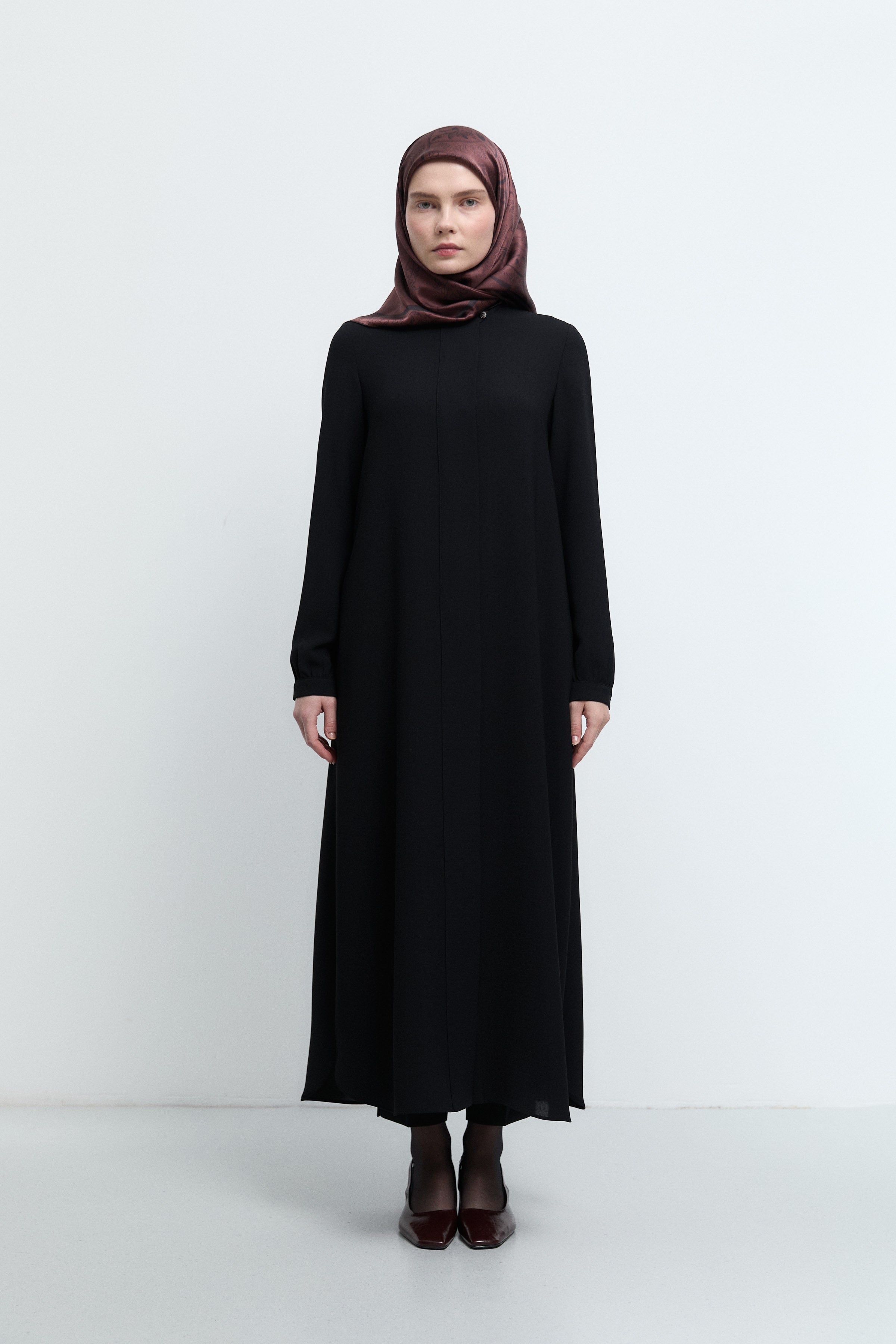 Sıfır Yaka Gizli Patlı Ferace - Siyah