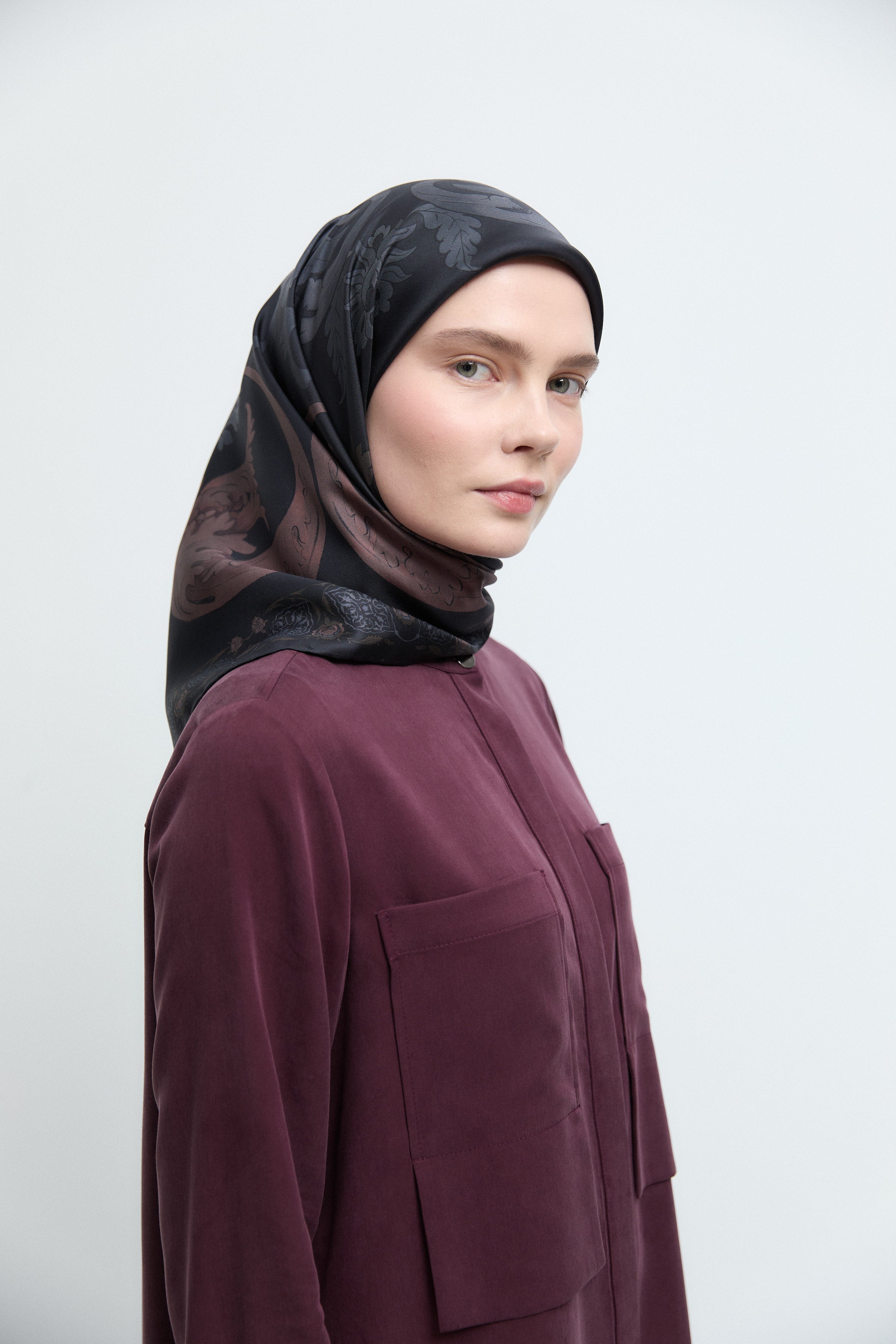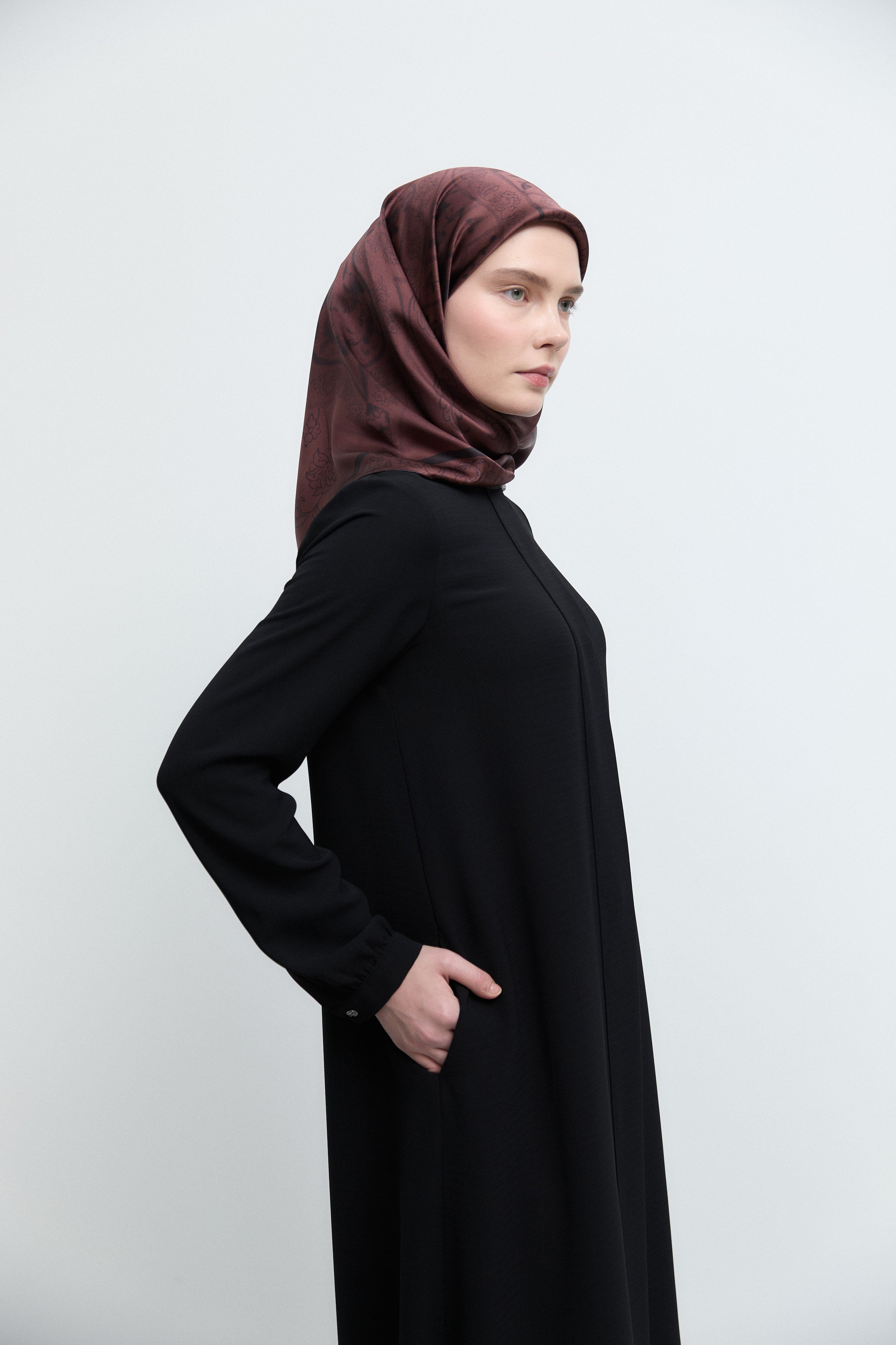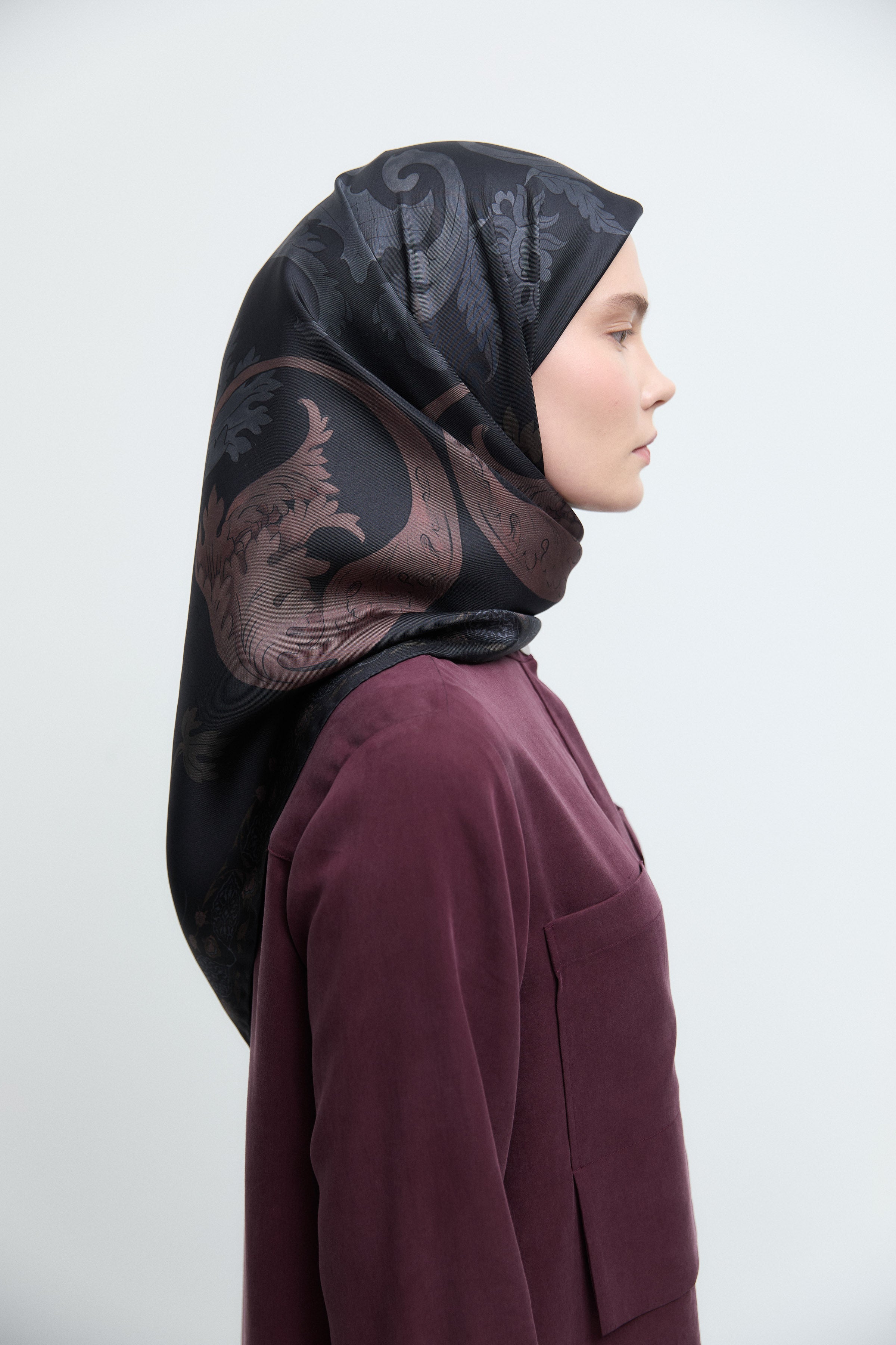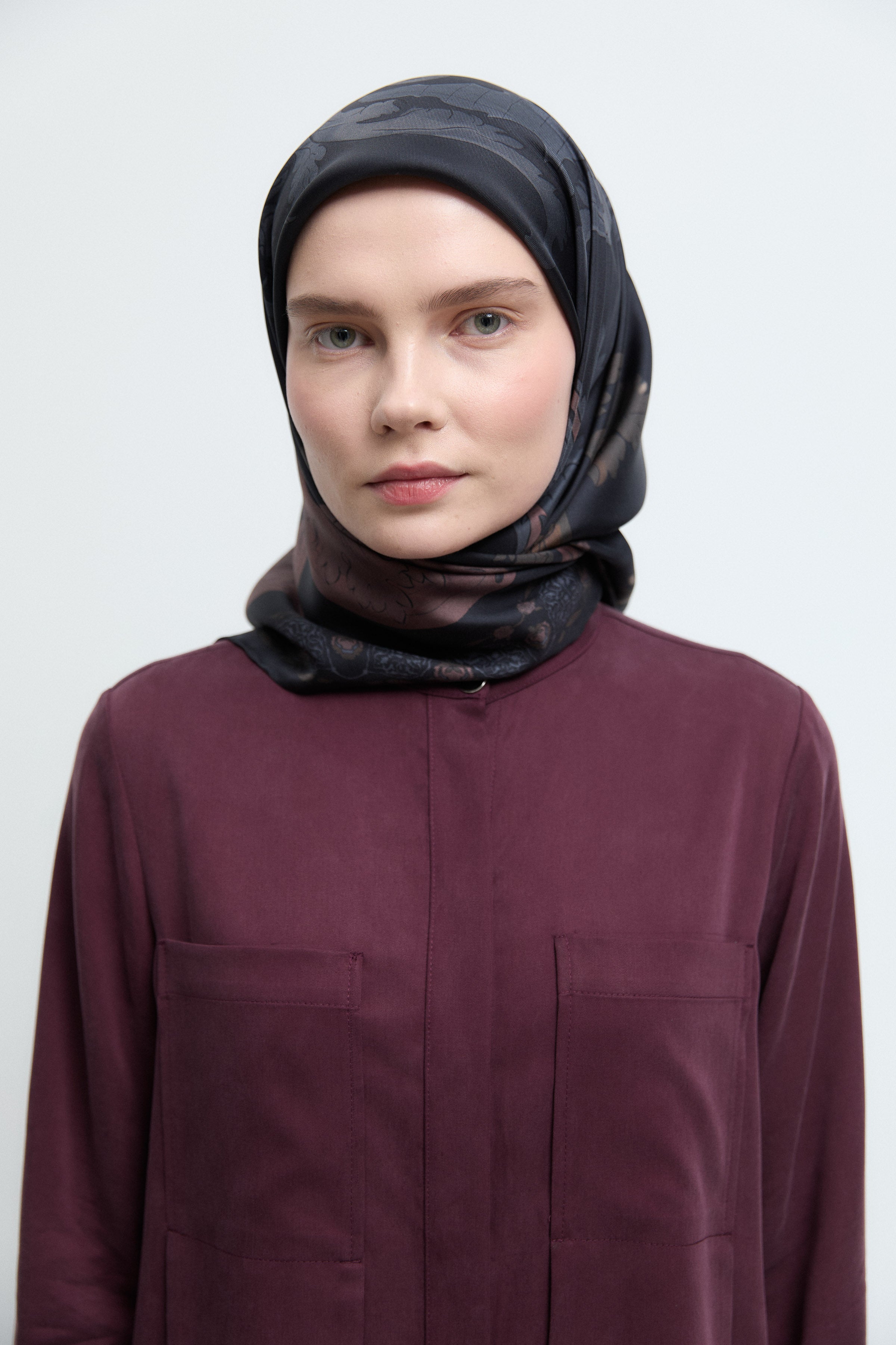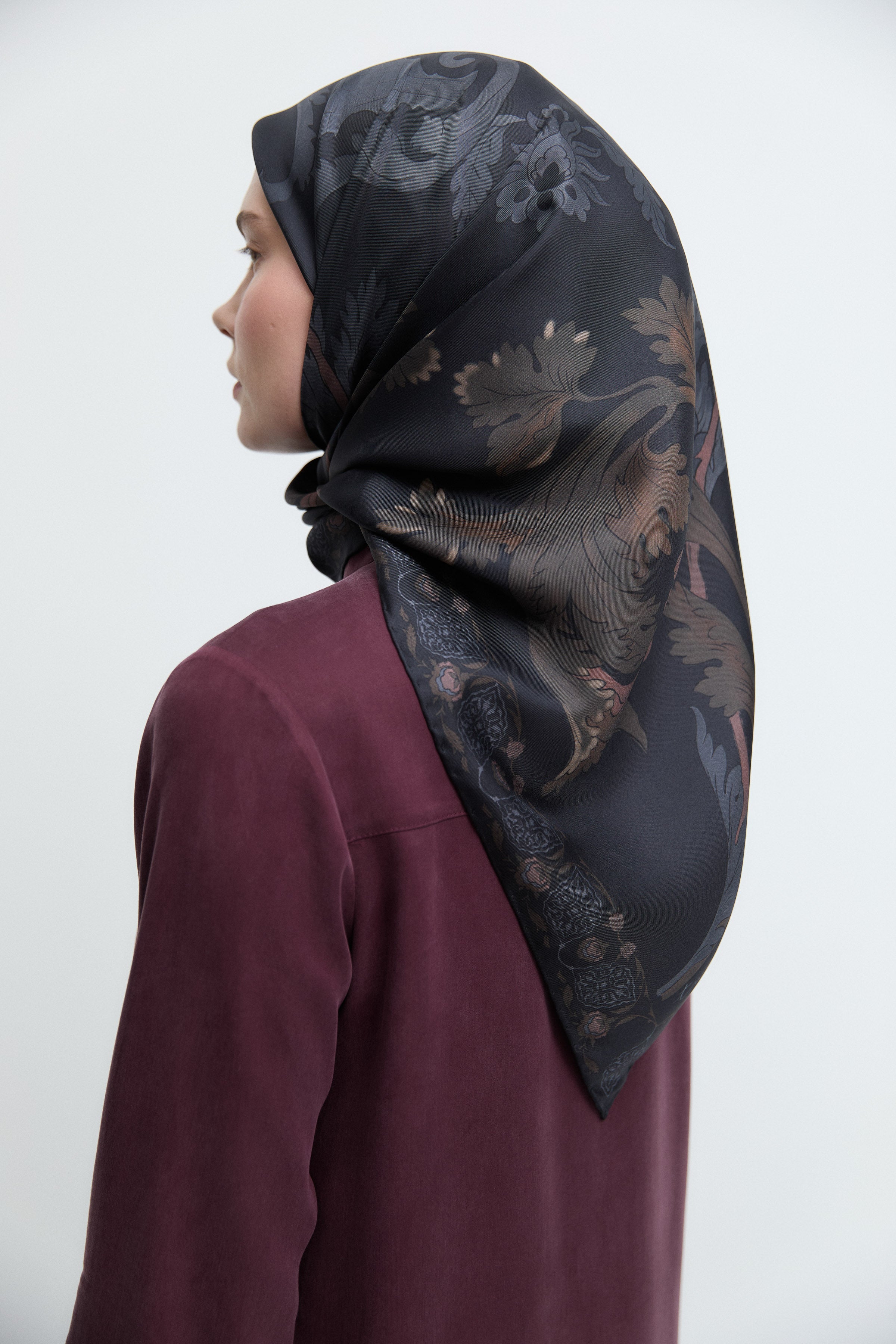 Taharri Twill İpek Eşarp - Bordo