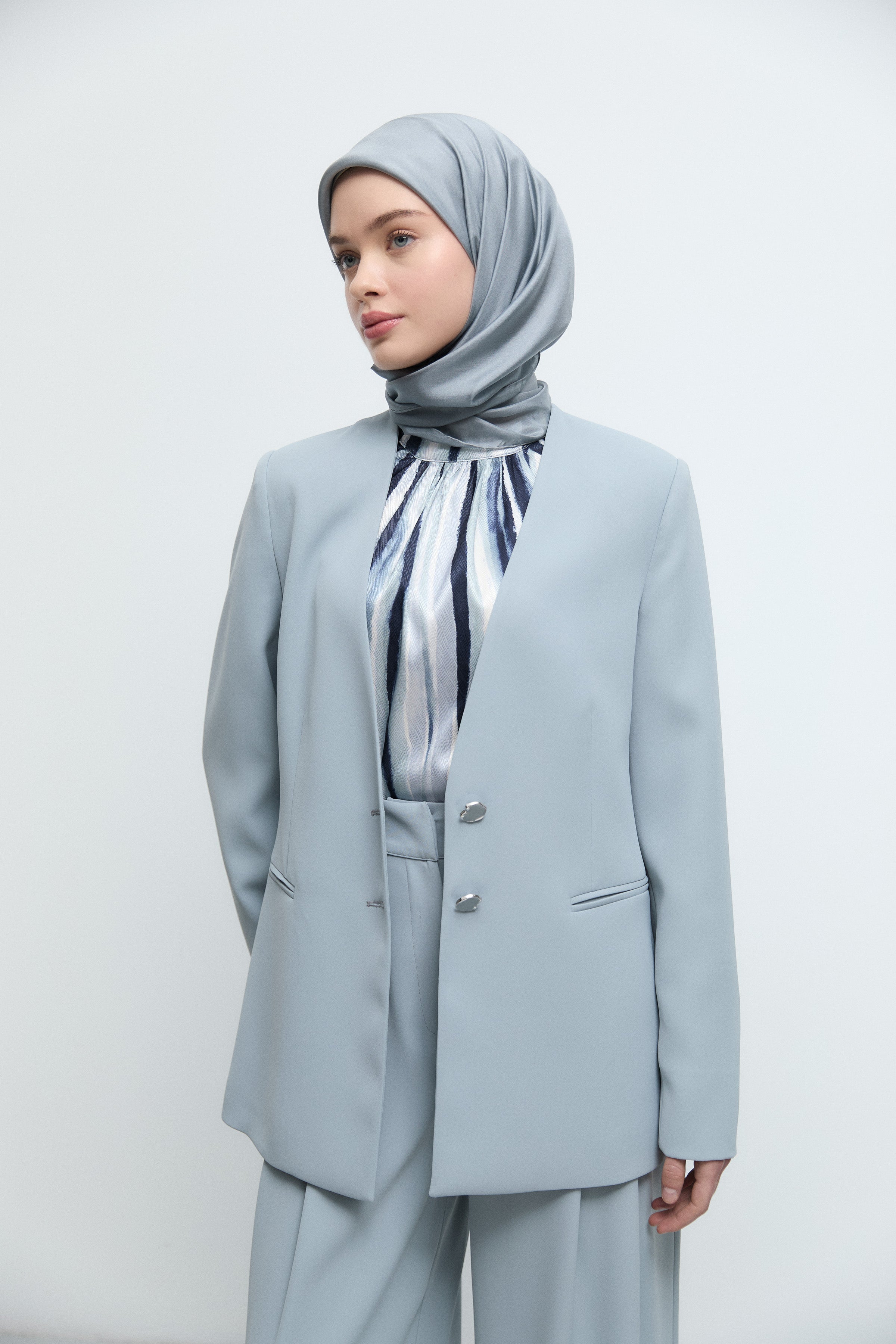 Düğmeli Ceket - Açık Mavi