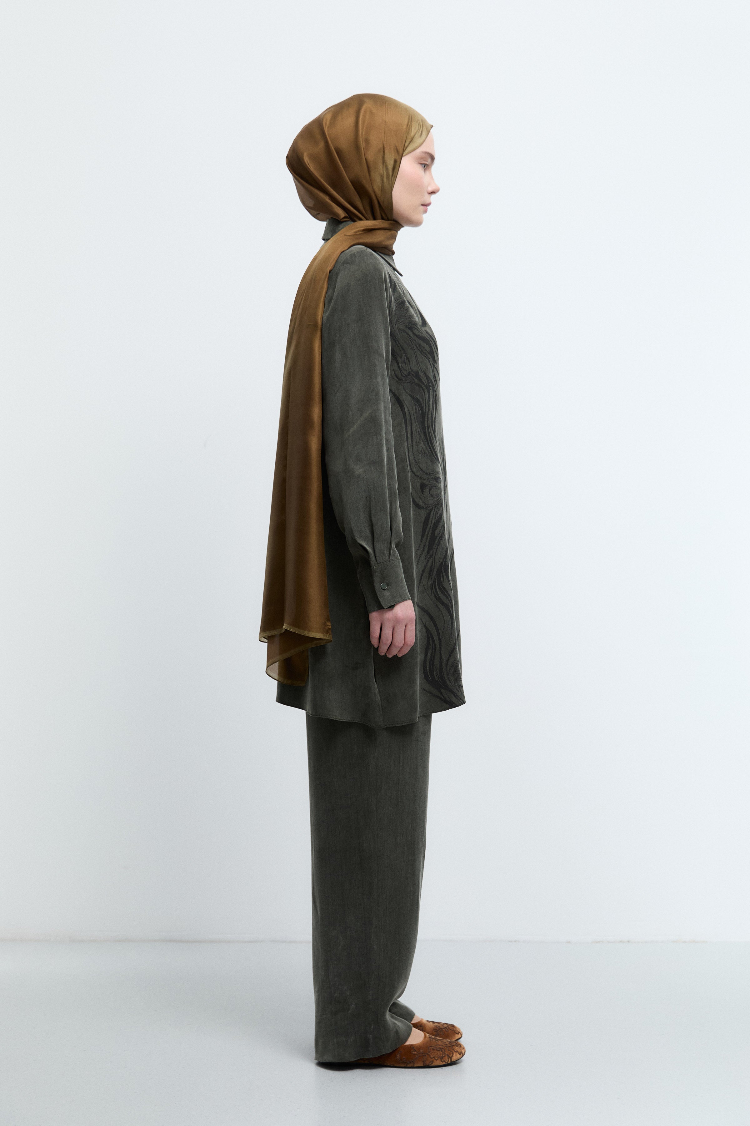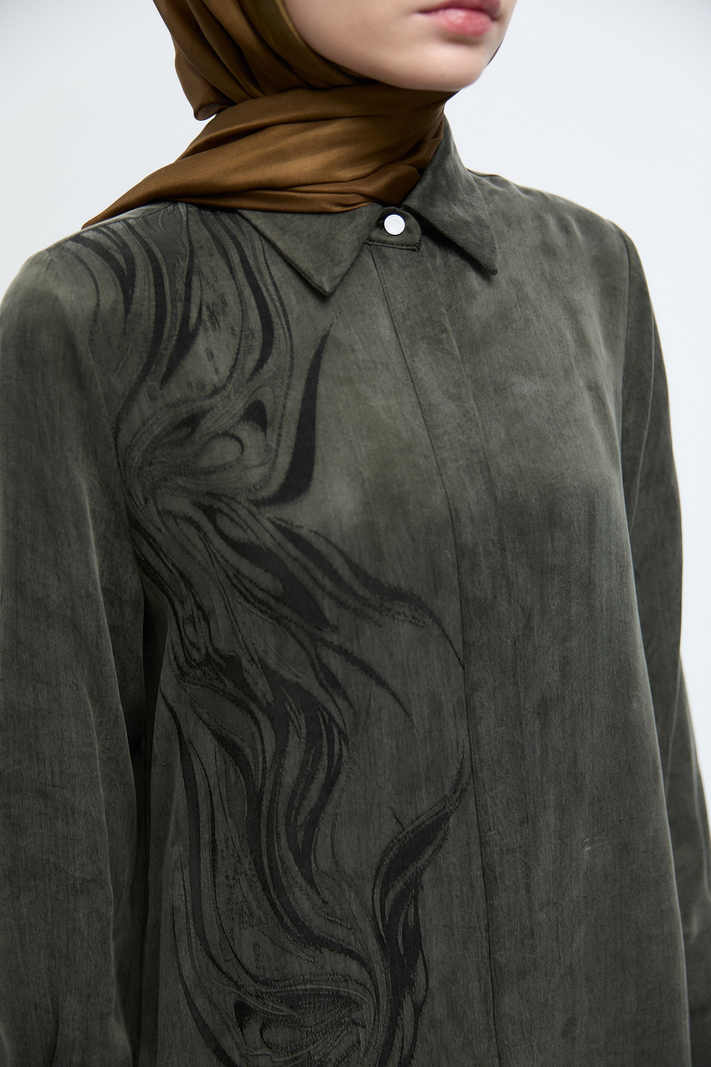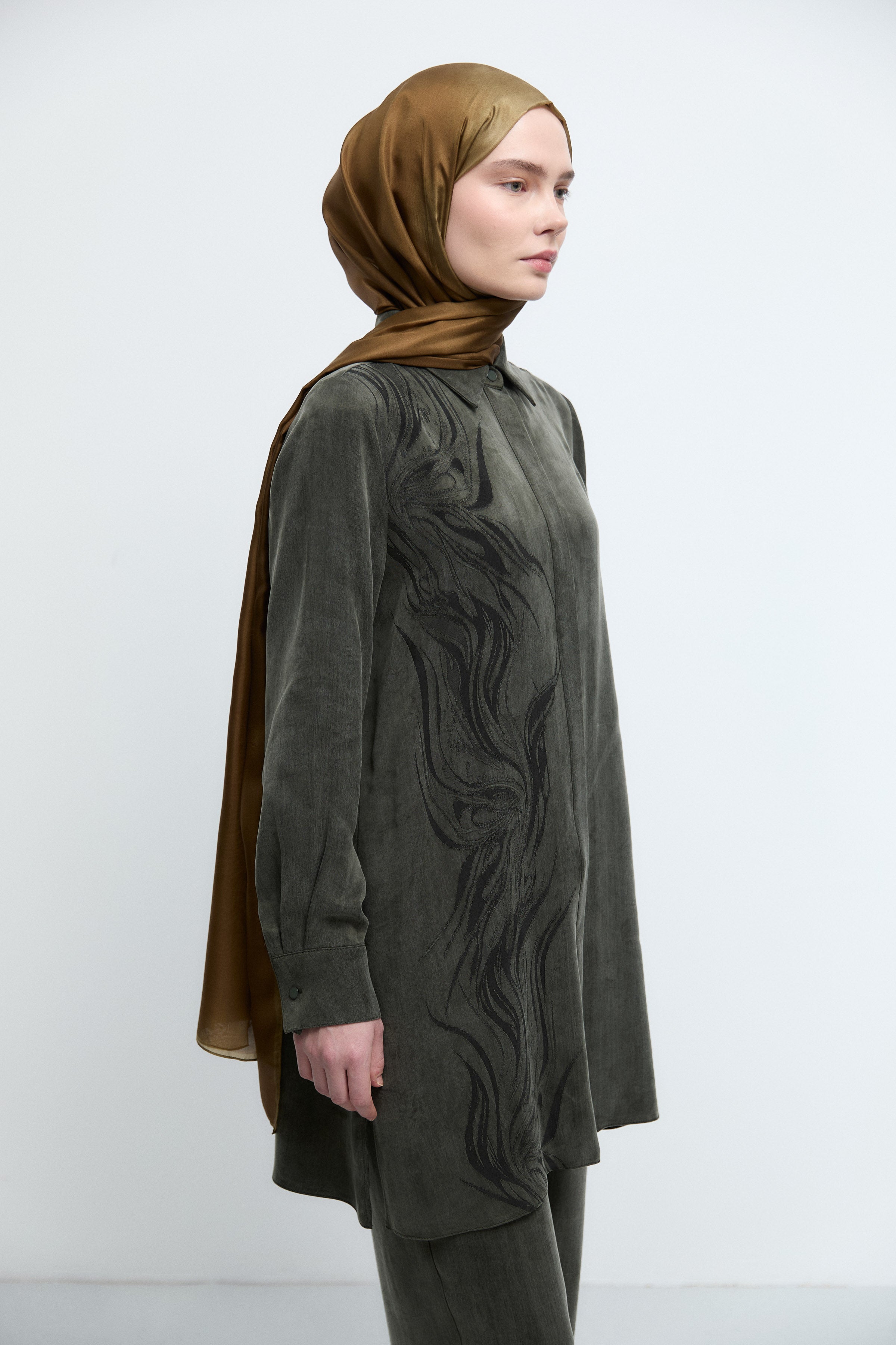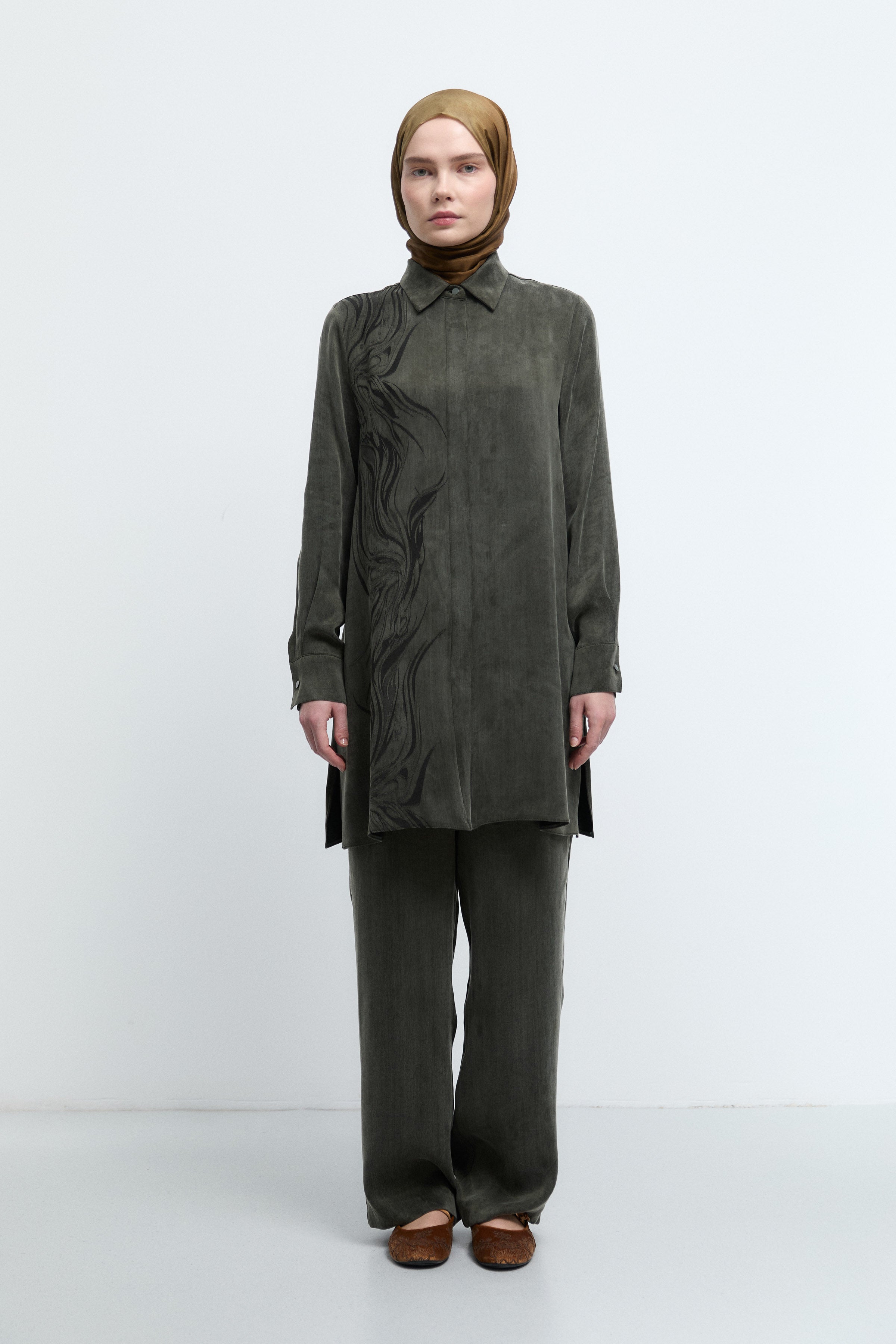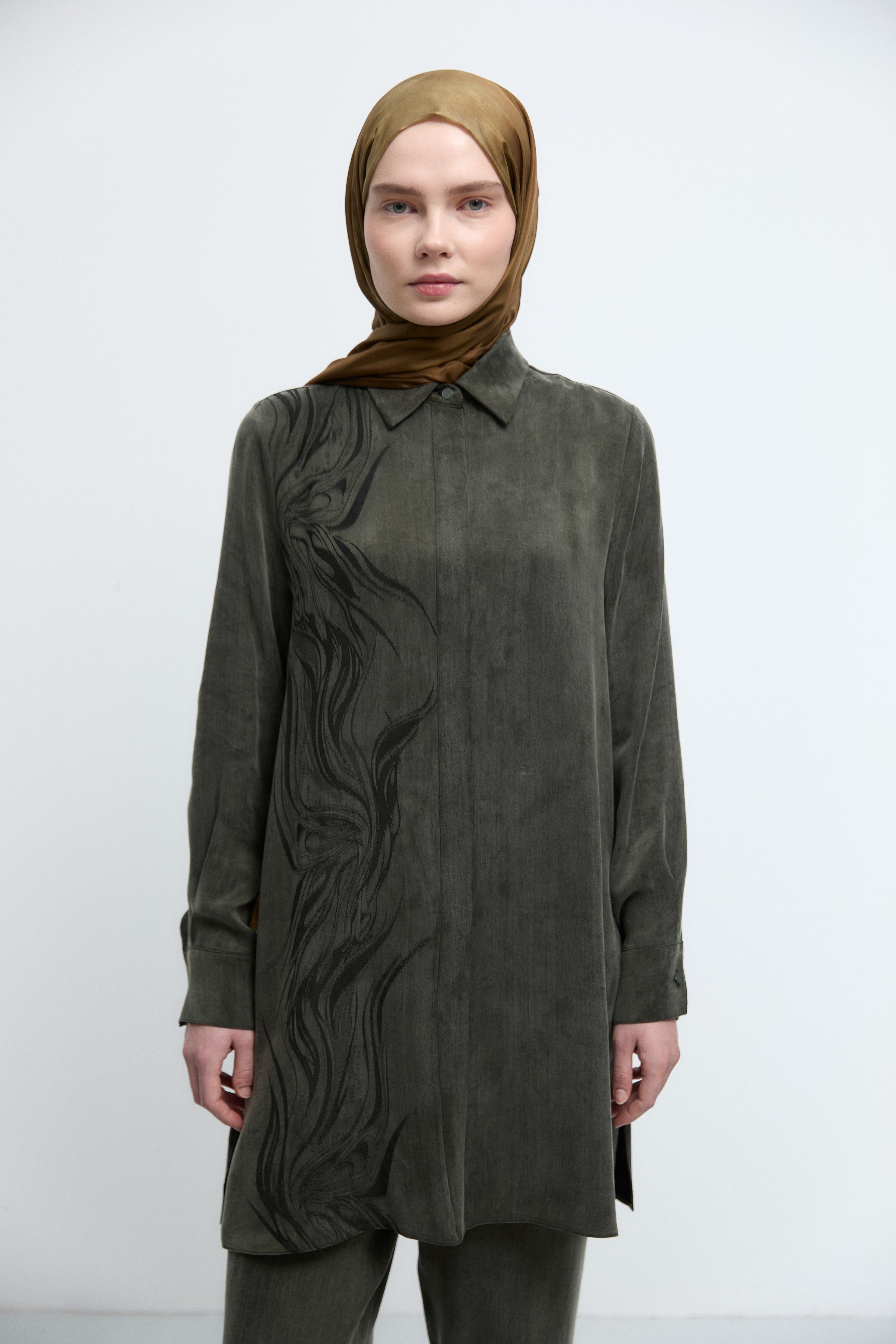 Gizli Patlı Desenli Tunik - Haki