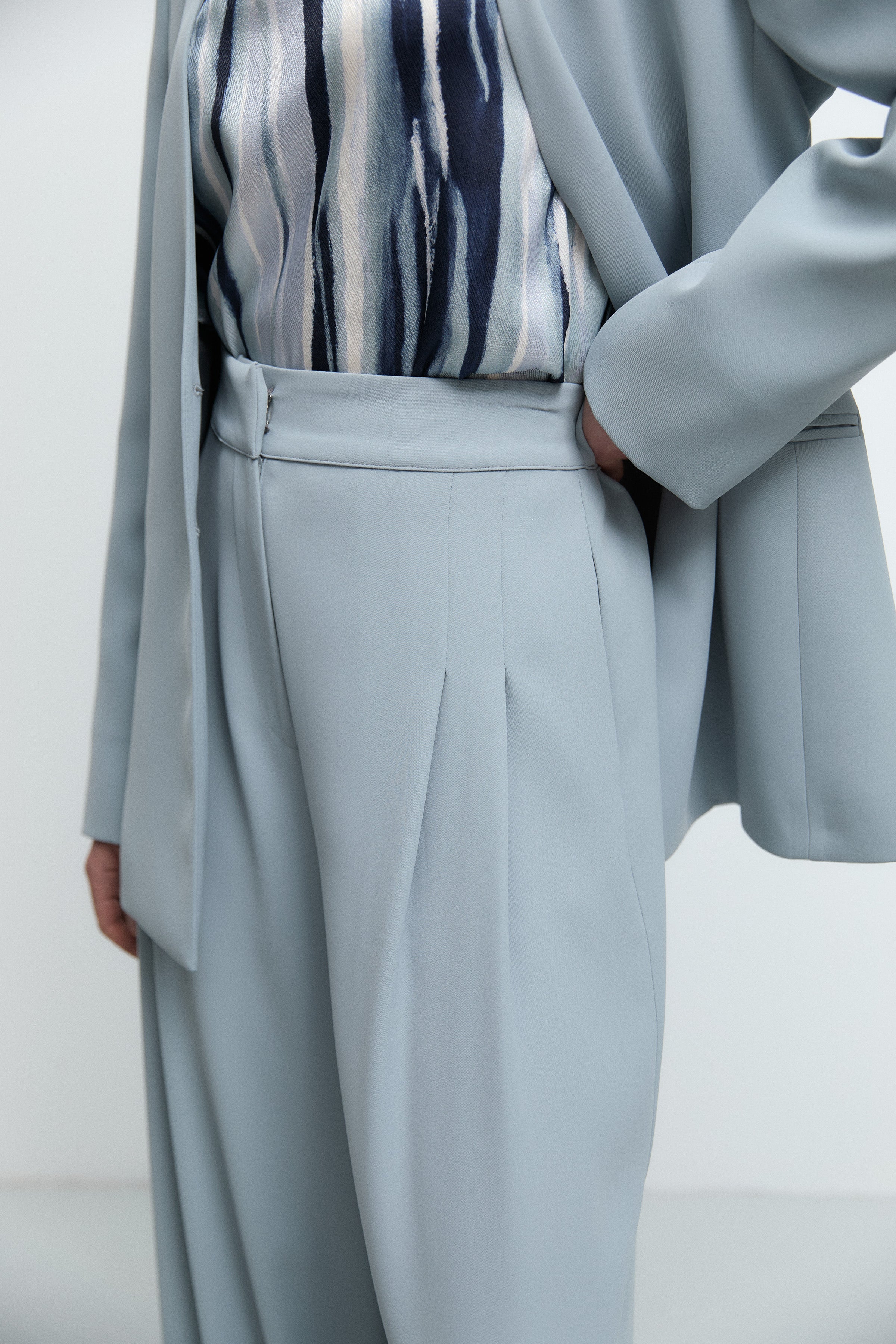 Pileli Beli Lastikli Pantolon - Açık Mavi