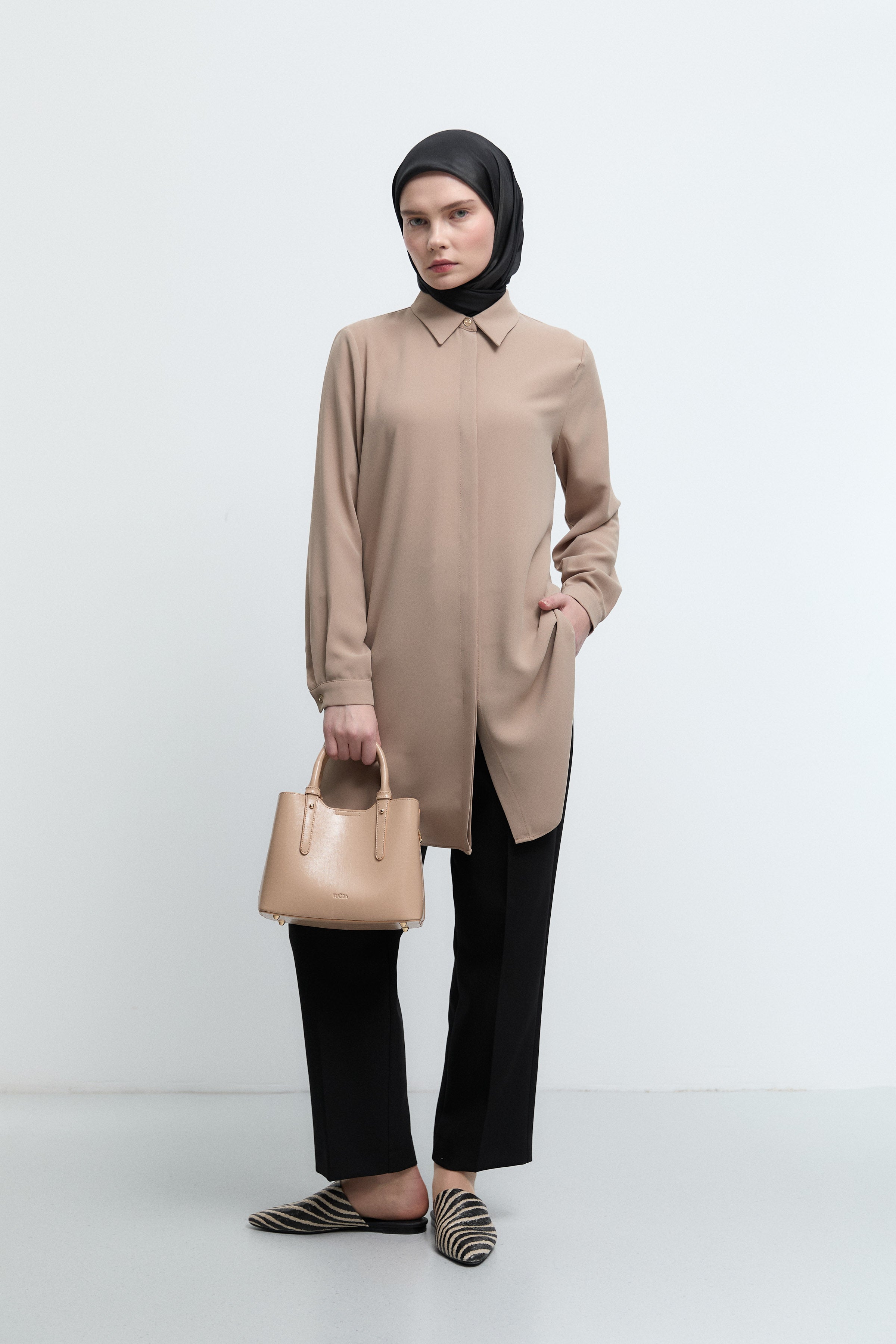 Gömlek Yaka Tunik - Taş