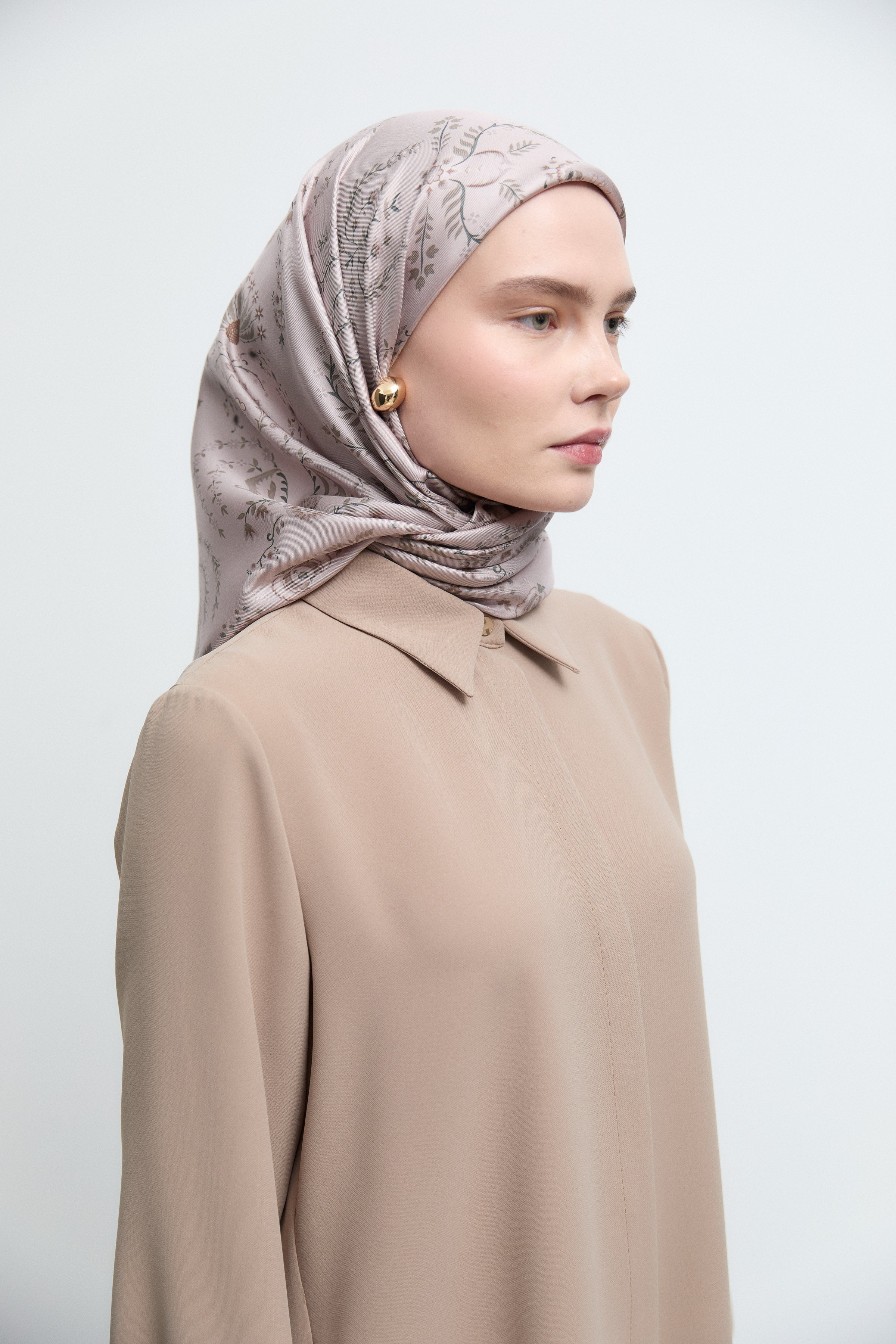 Hatai Saten İpek Eşarp - Pudra