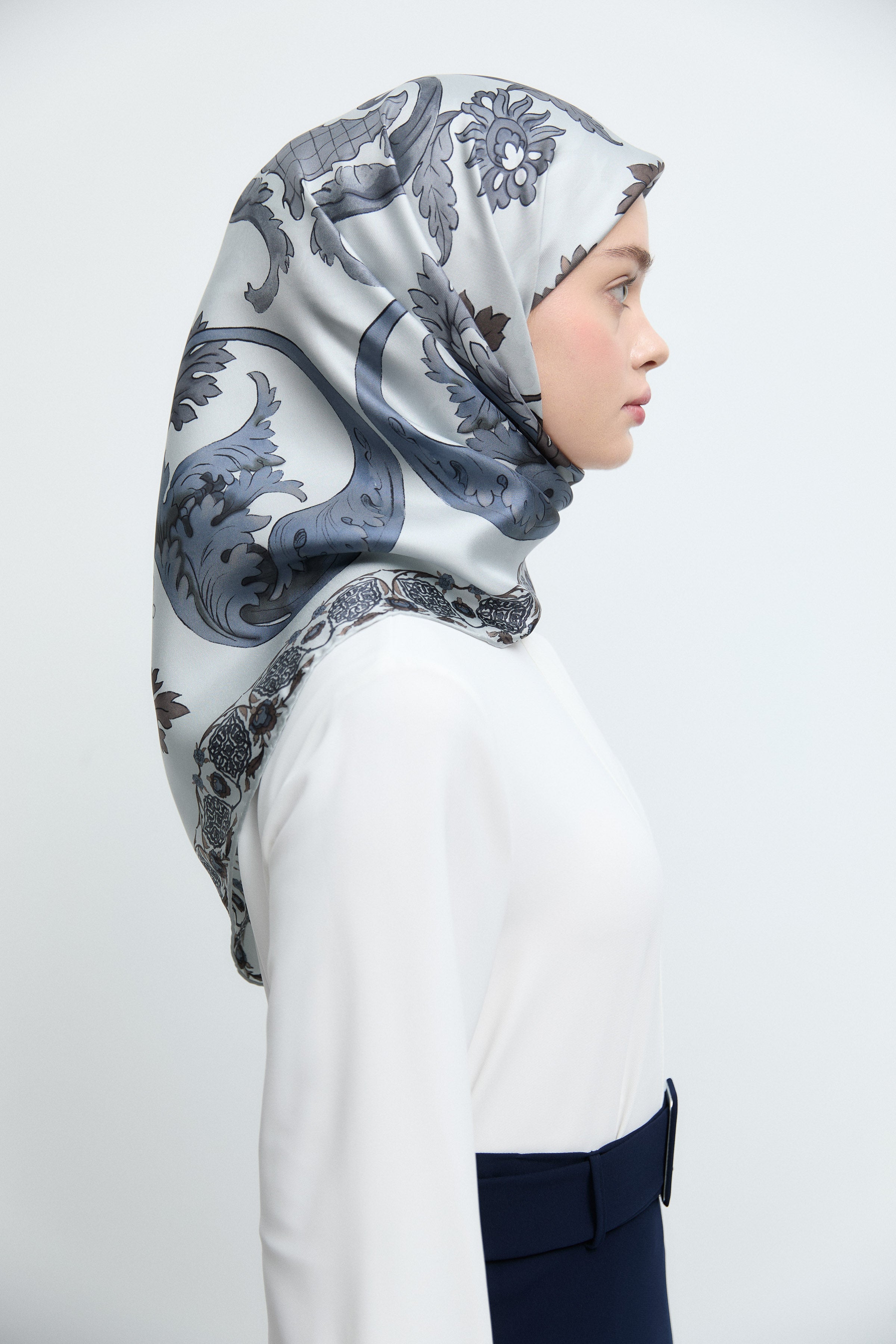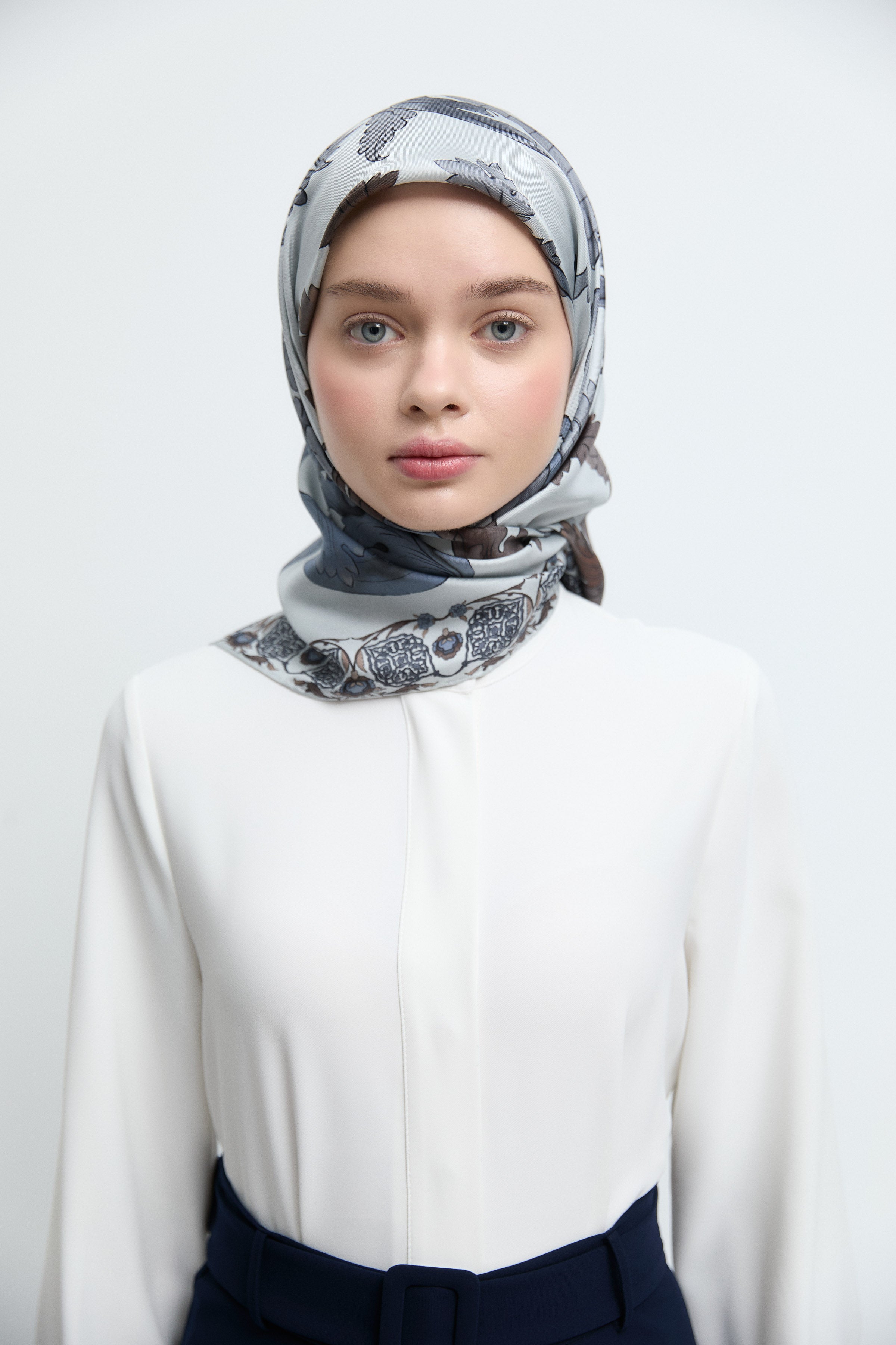 Belva Twill İpek Eşarp - Beyaz