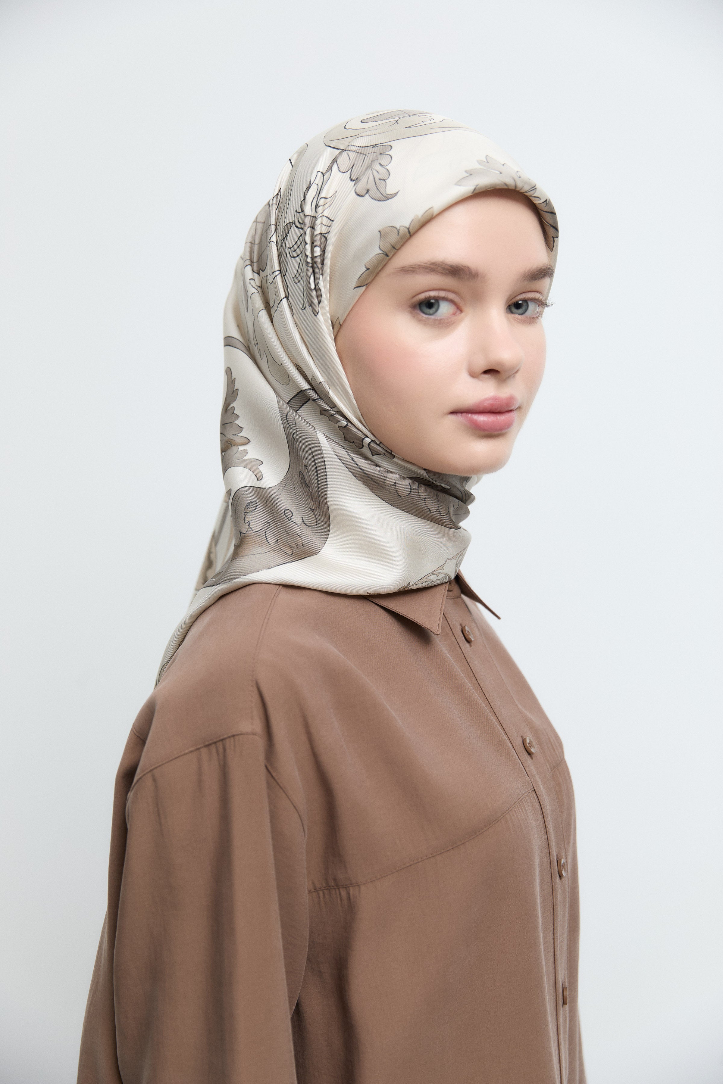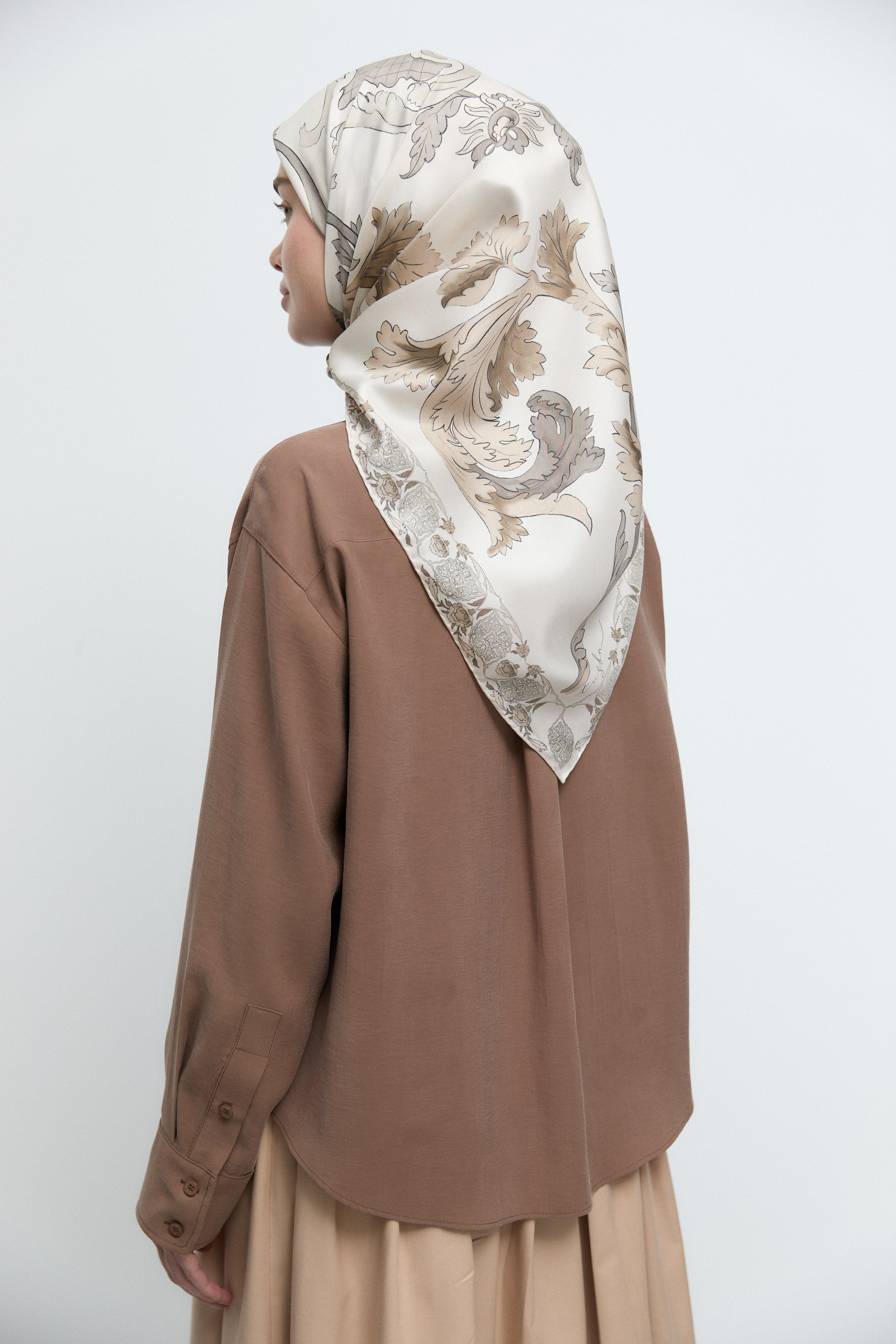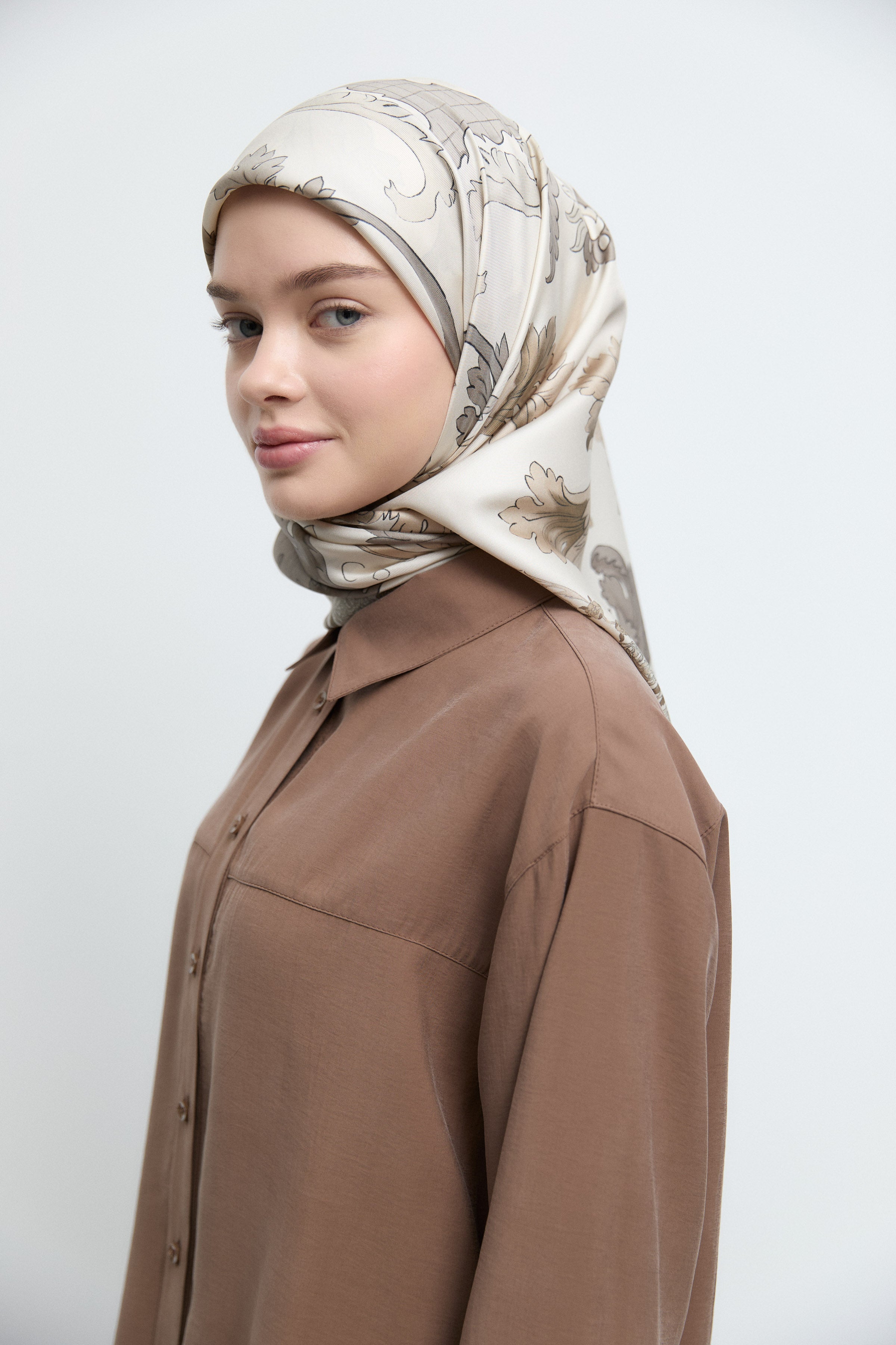 Taharri Twill İpek Eşarp - Ekru