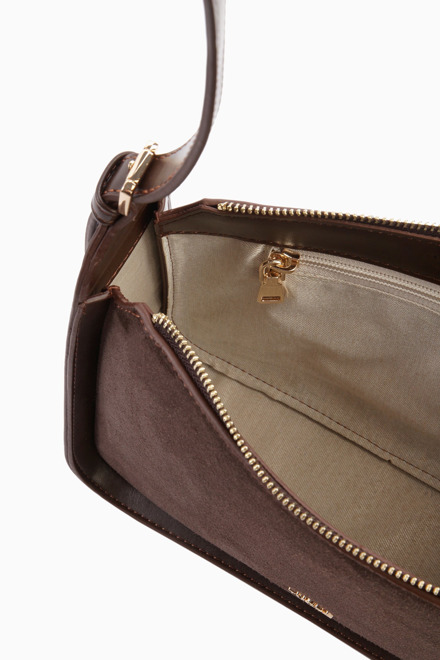 Askısı Kemerli Süet Çanta - Kahve