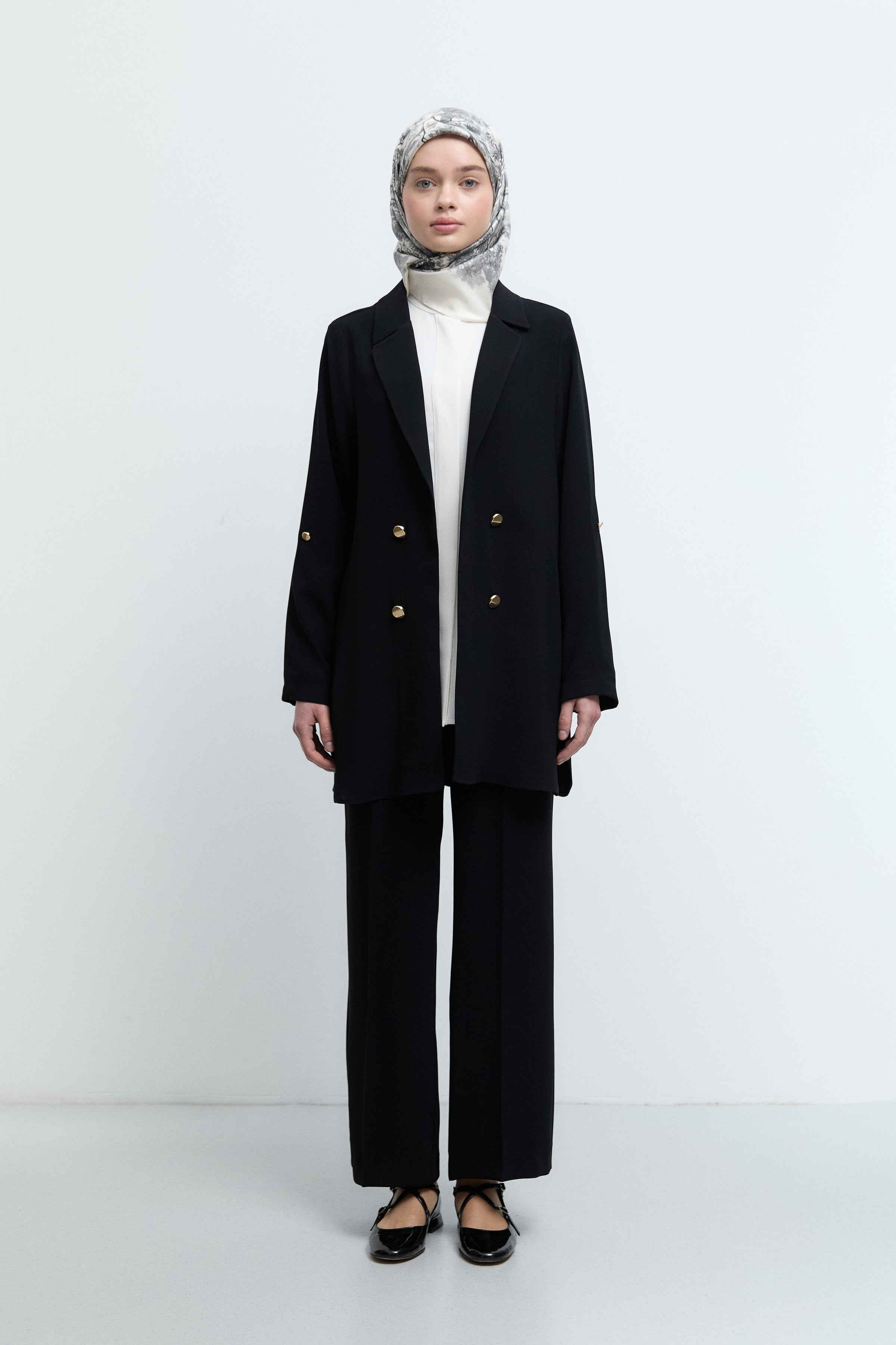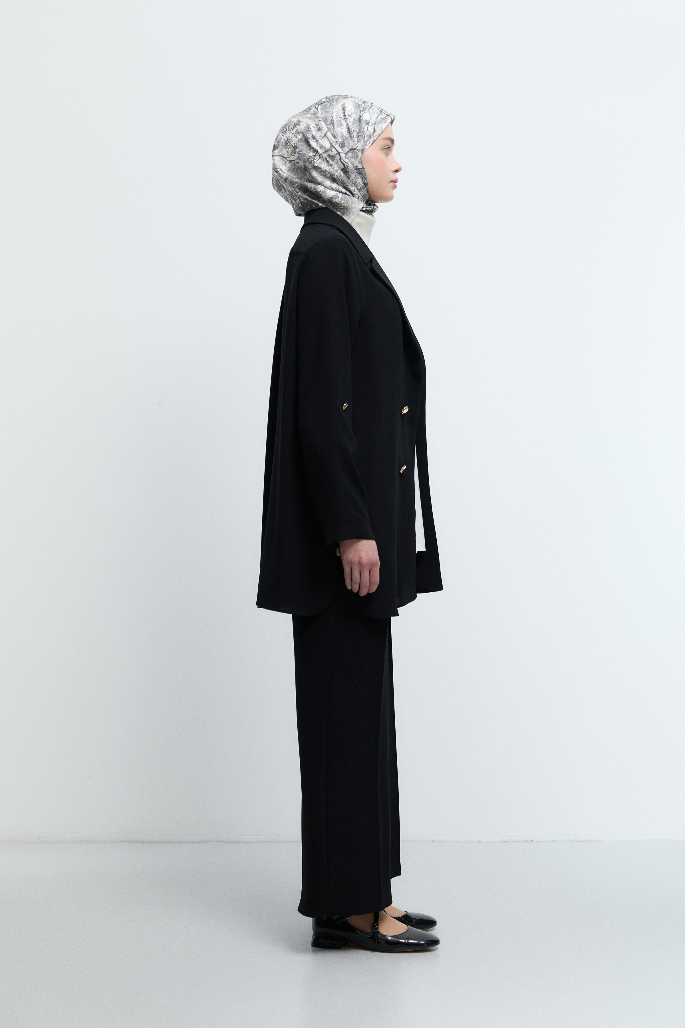 Belden lastikli yapısıyla gün boyu konfor sunan bu basic pantolon, sade tasarımını modern ve rafine bir siluetle tamamlar.