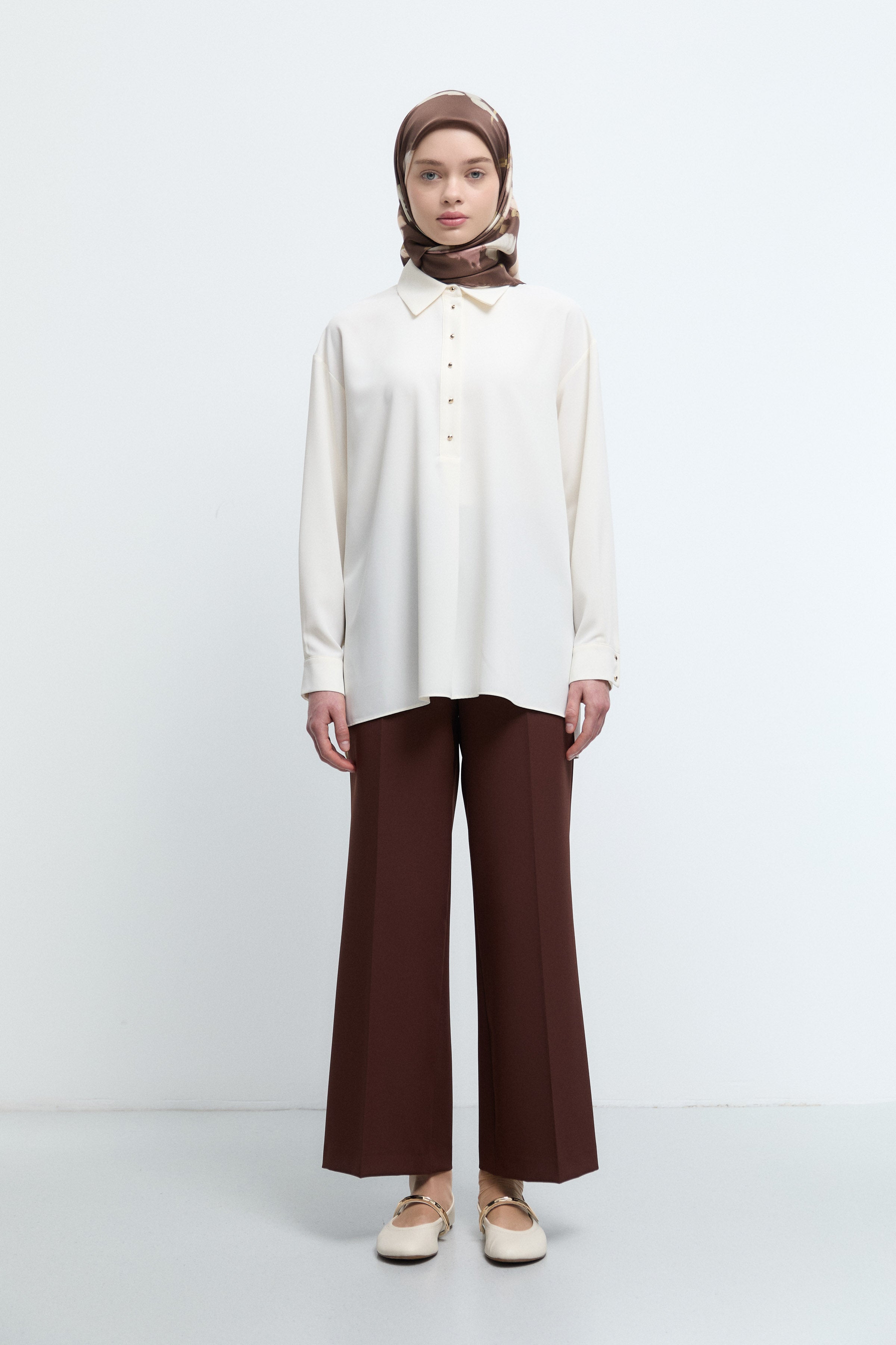 Belden Yarım Lastikli Basic Pantolon - Kahve
