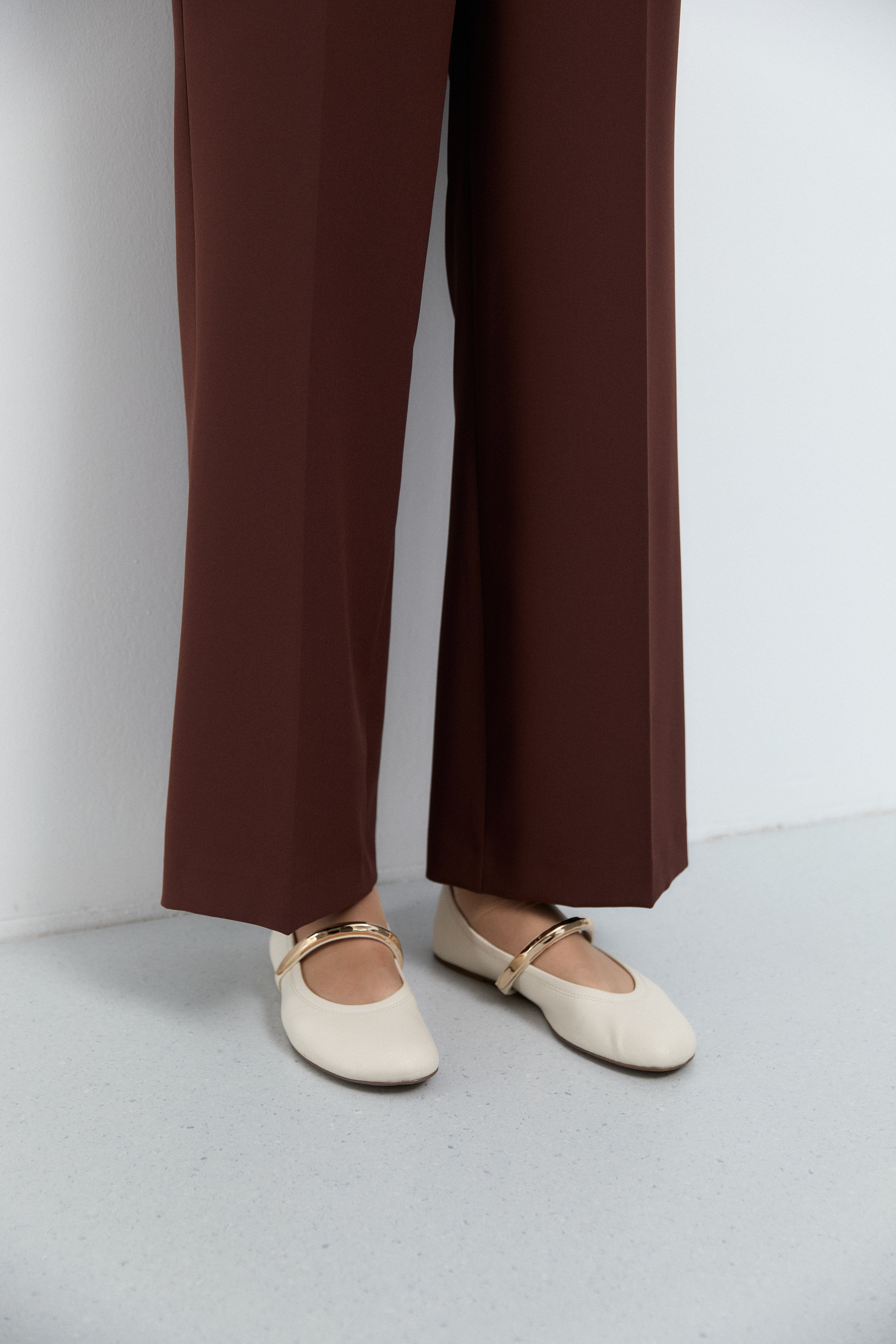 Belden yarım lastikli basic pantolon, hem rahat hem de düzenli bir görünüm sunan dengeli tasarımıyla öne çıkar. Arka kısmındaki lastik detayı hareket özgürlüğü sağlarken, ön bölümdeki düz hat temiz ve derli toplu bir duruş oluşturur.