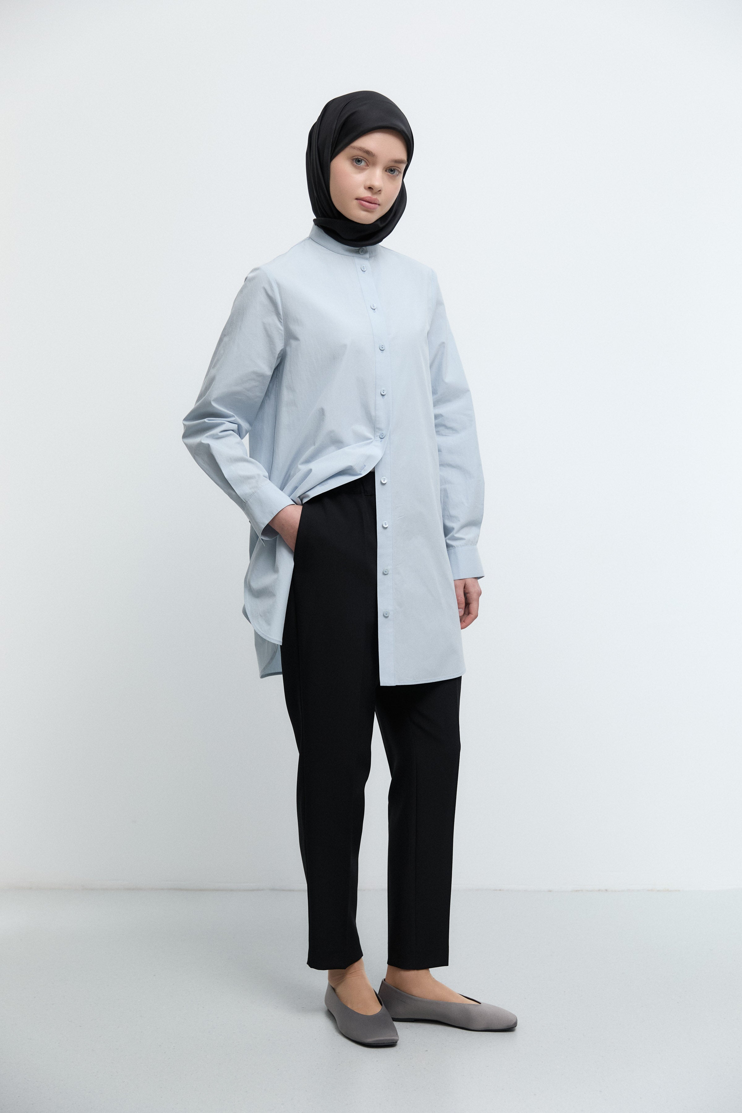 Esnek bel yapısı hareket özgürlüğü sağlarken, sade kesimi düzenli ve dengeli bir görünüm sunar.