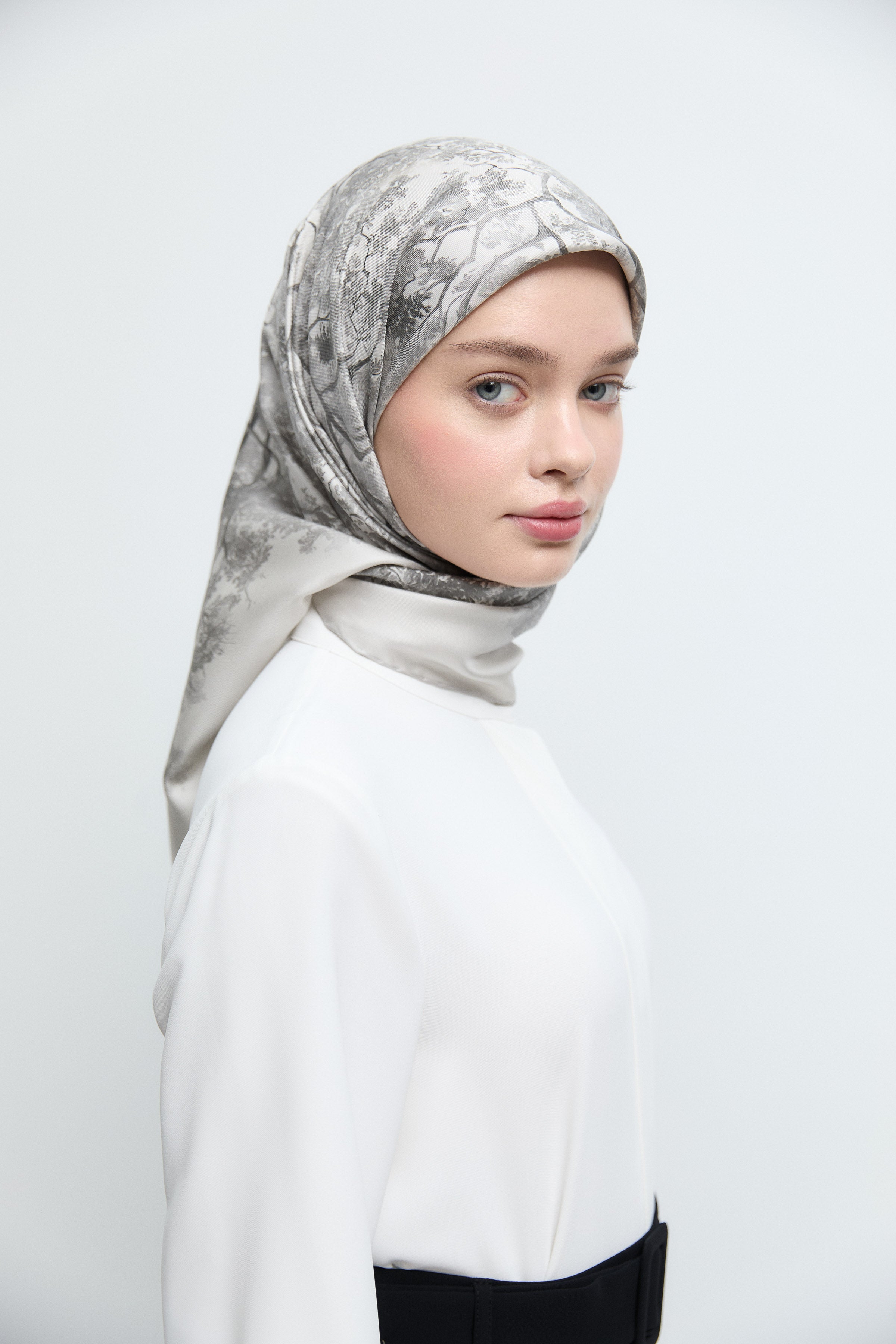 Belva Twill İpek Eşarp - Gri