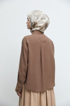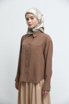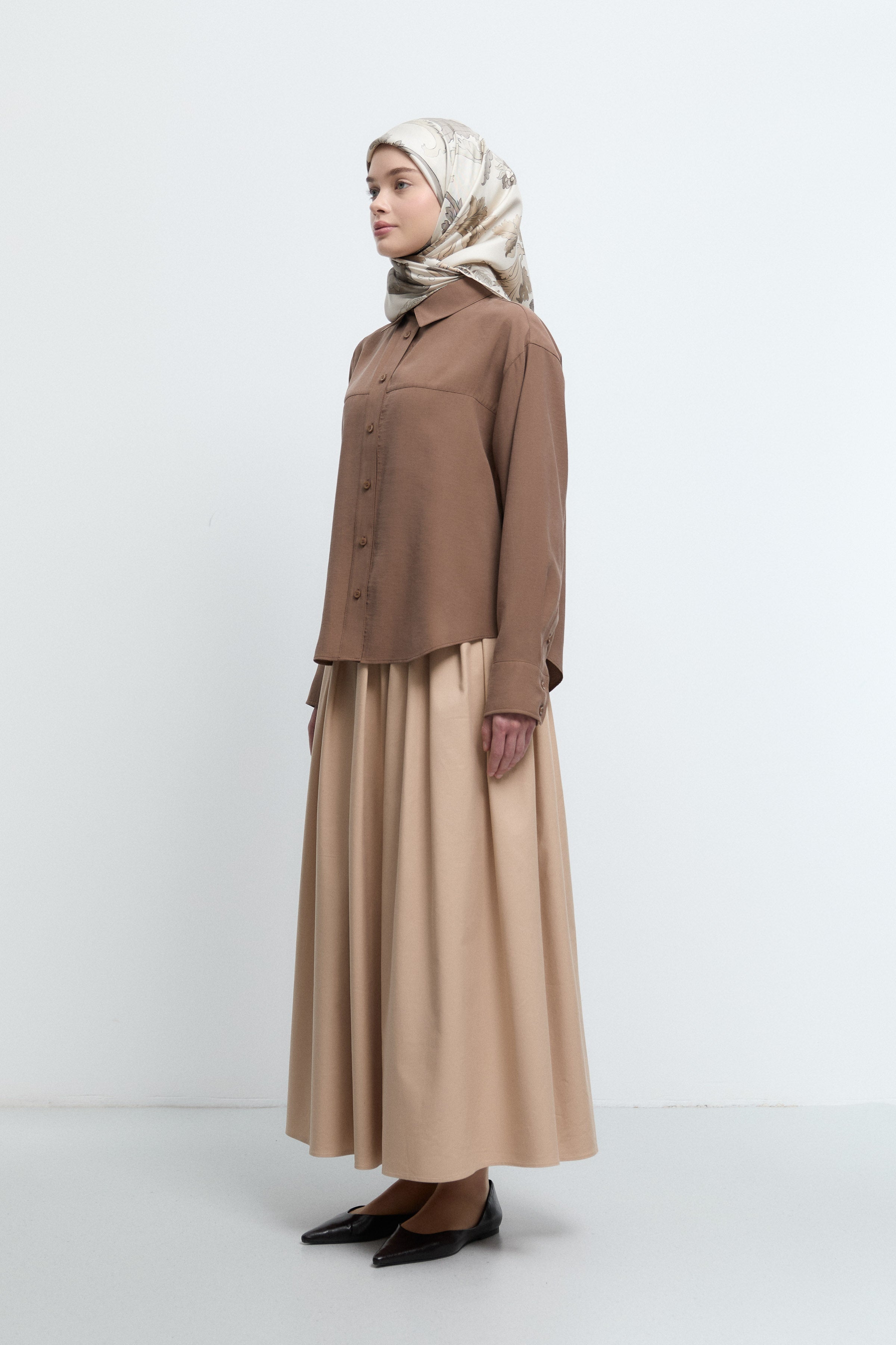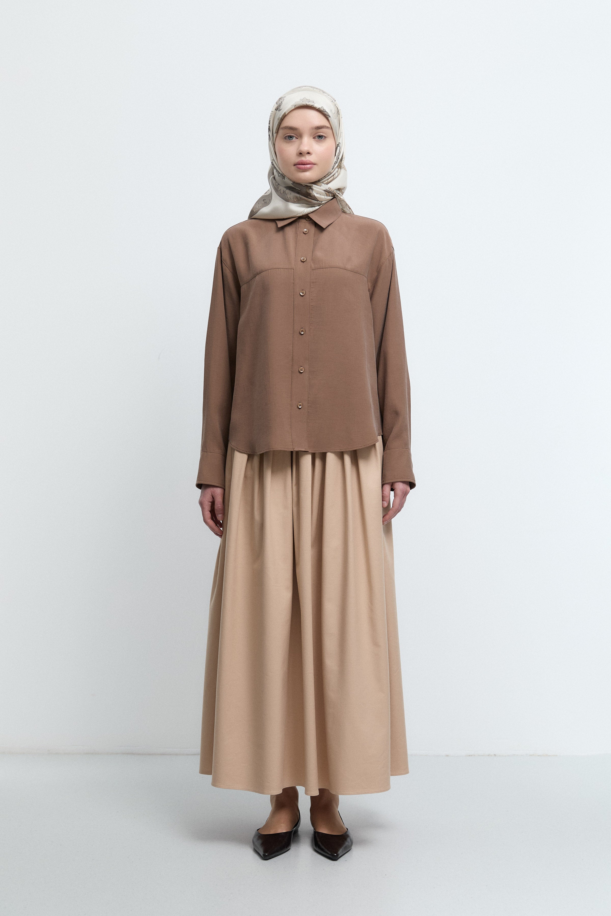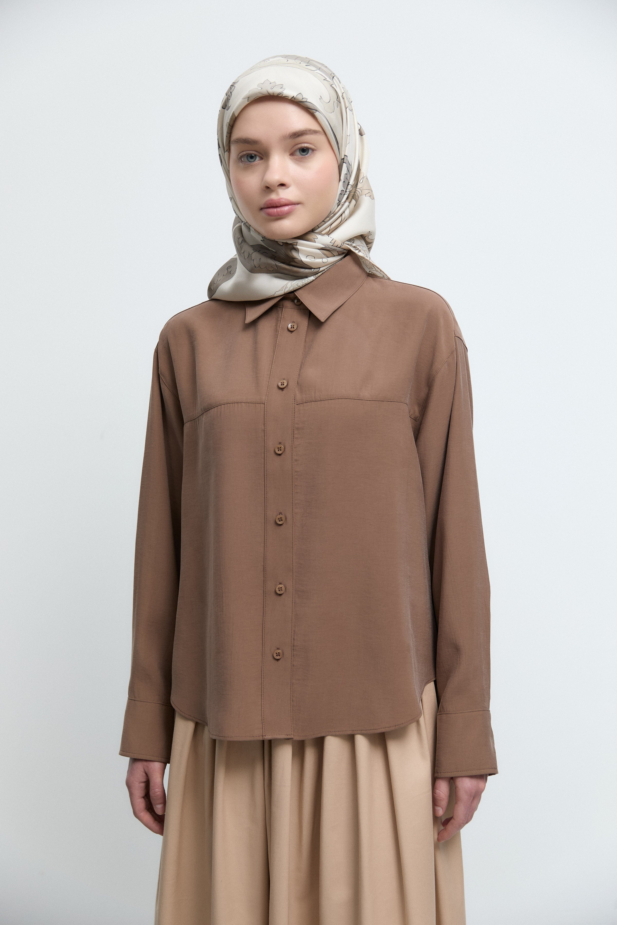 Düşük kol tasarımıyla rahat ve modern bir siluet sunan bu gömlek, sade şıklığı akıcı bir form ile tamamlar.