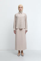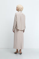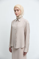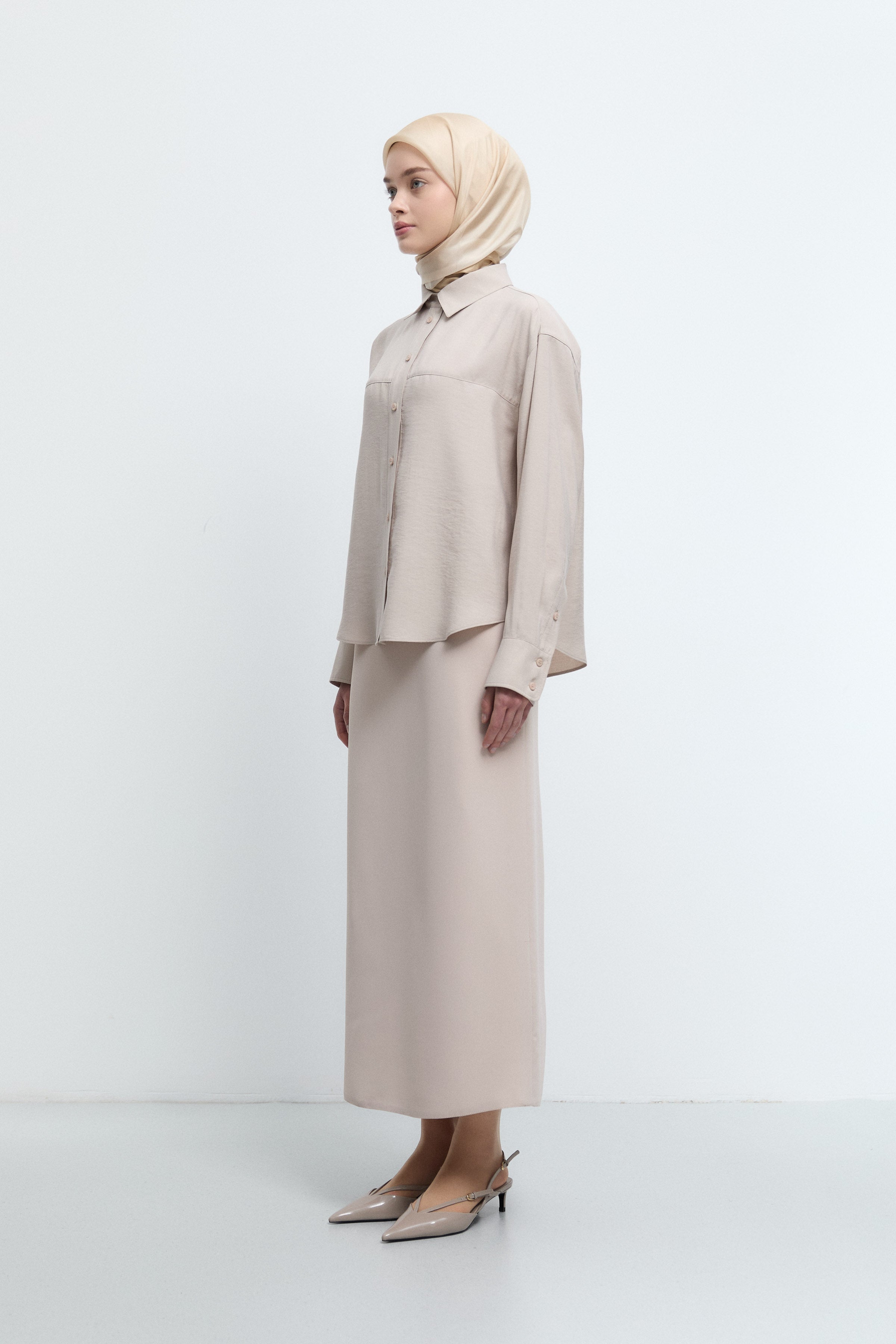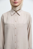 Düşük kol tasarımıyla rahat ve modern bir siluet sunan bu gömlek, sade şıklığı akıcı bir form ile tamamlar.