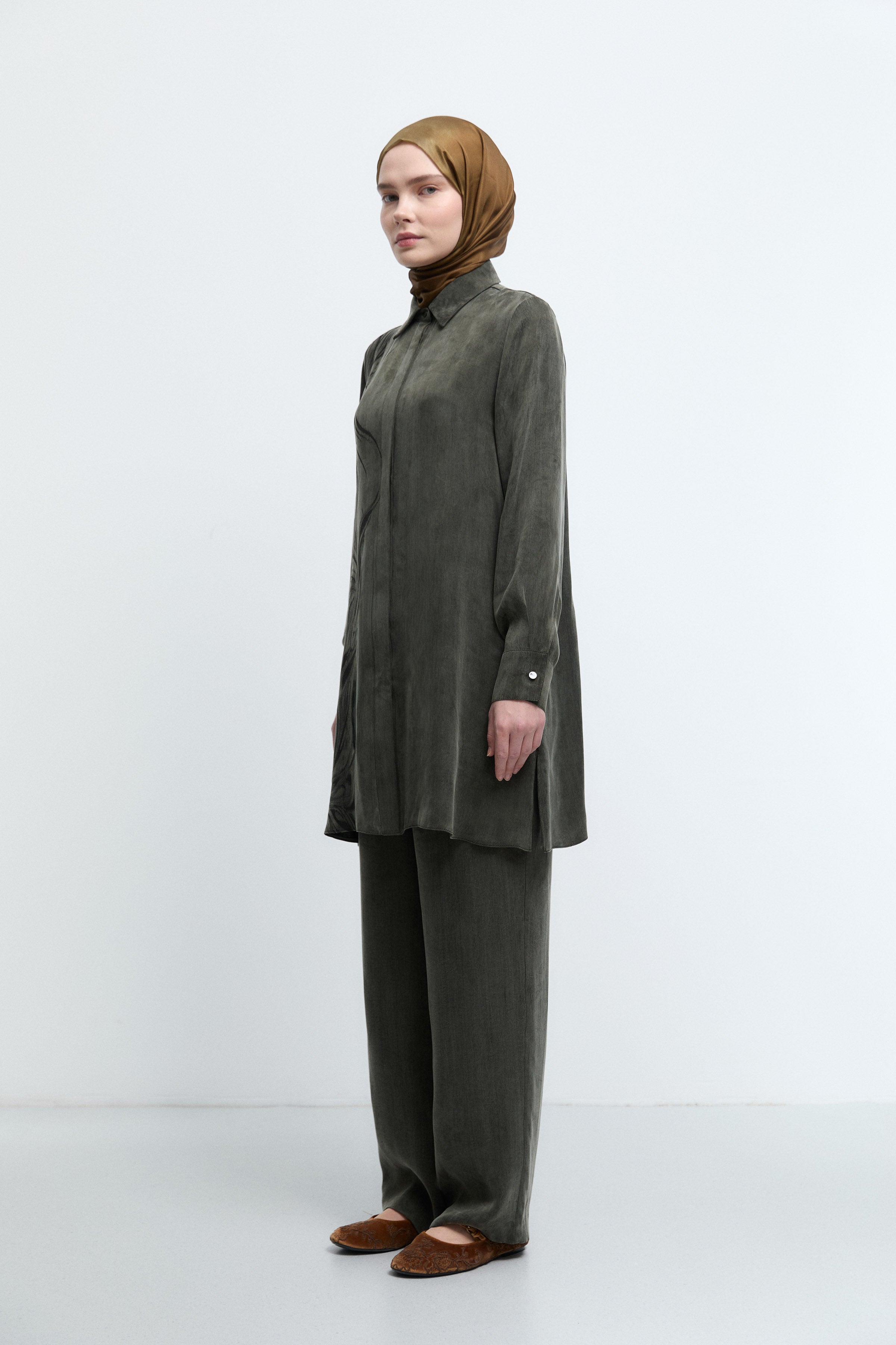 Gizli Patlı Desenli Tunik - Haki