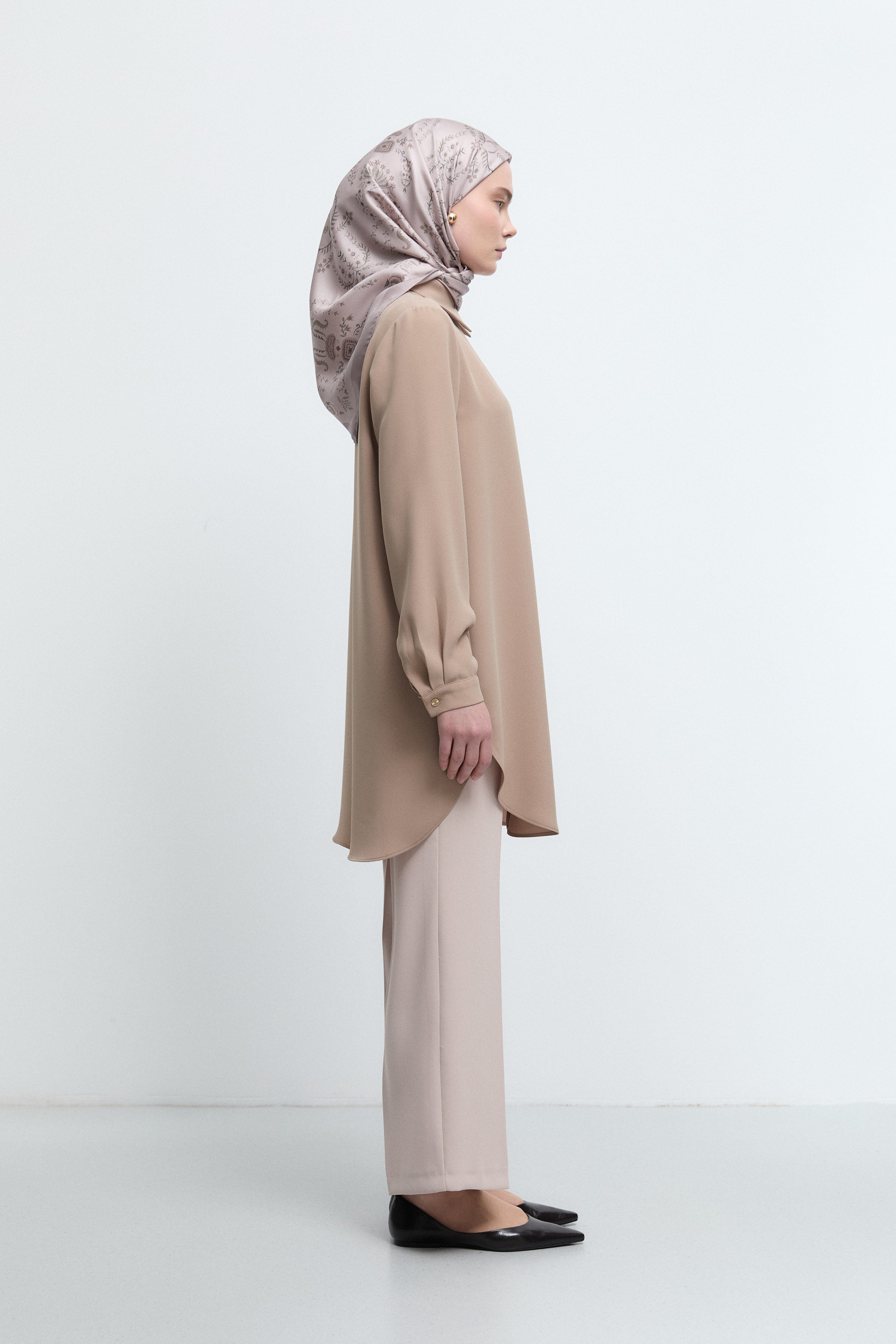 Gömlek yaka detayıyla klasik zarafeti modern bir çizgiyle buluşturan bu tunik, net siluetiyle güçlü bir duruş sunar.
