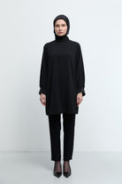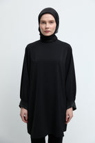 Kol Ağzı Taşlı Tunik - Siyah