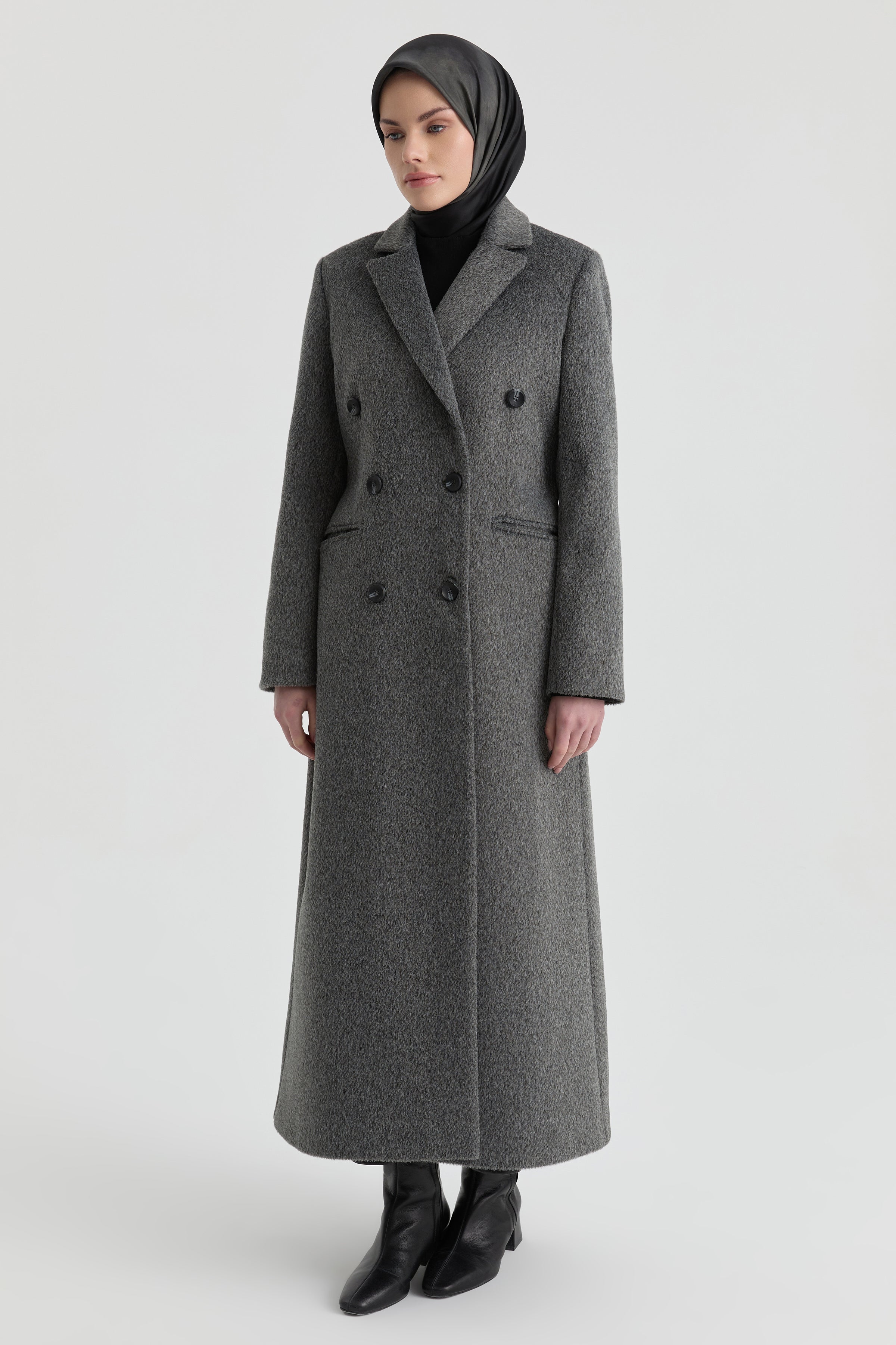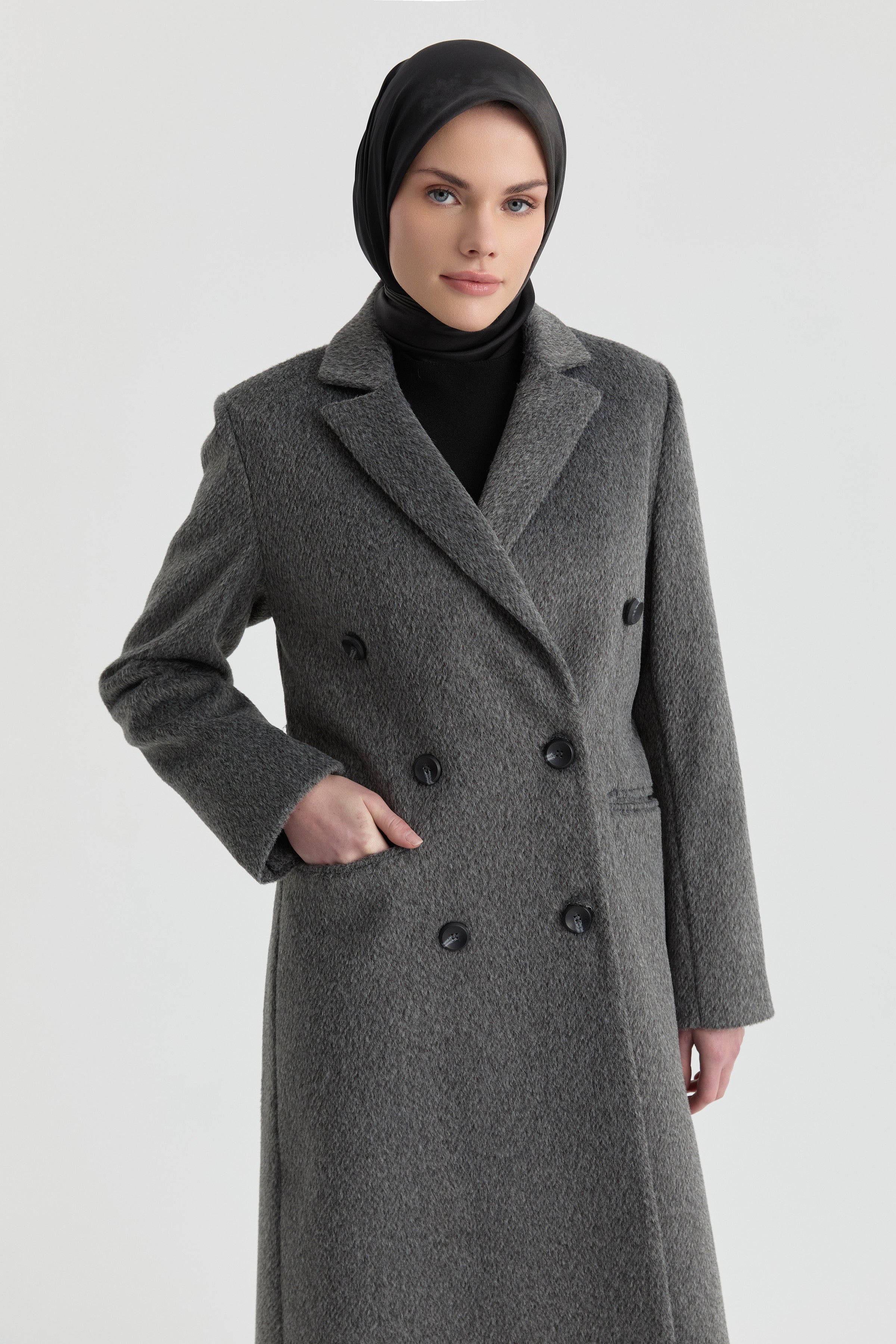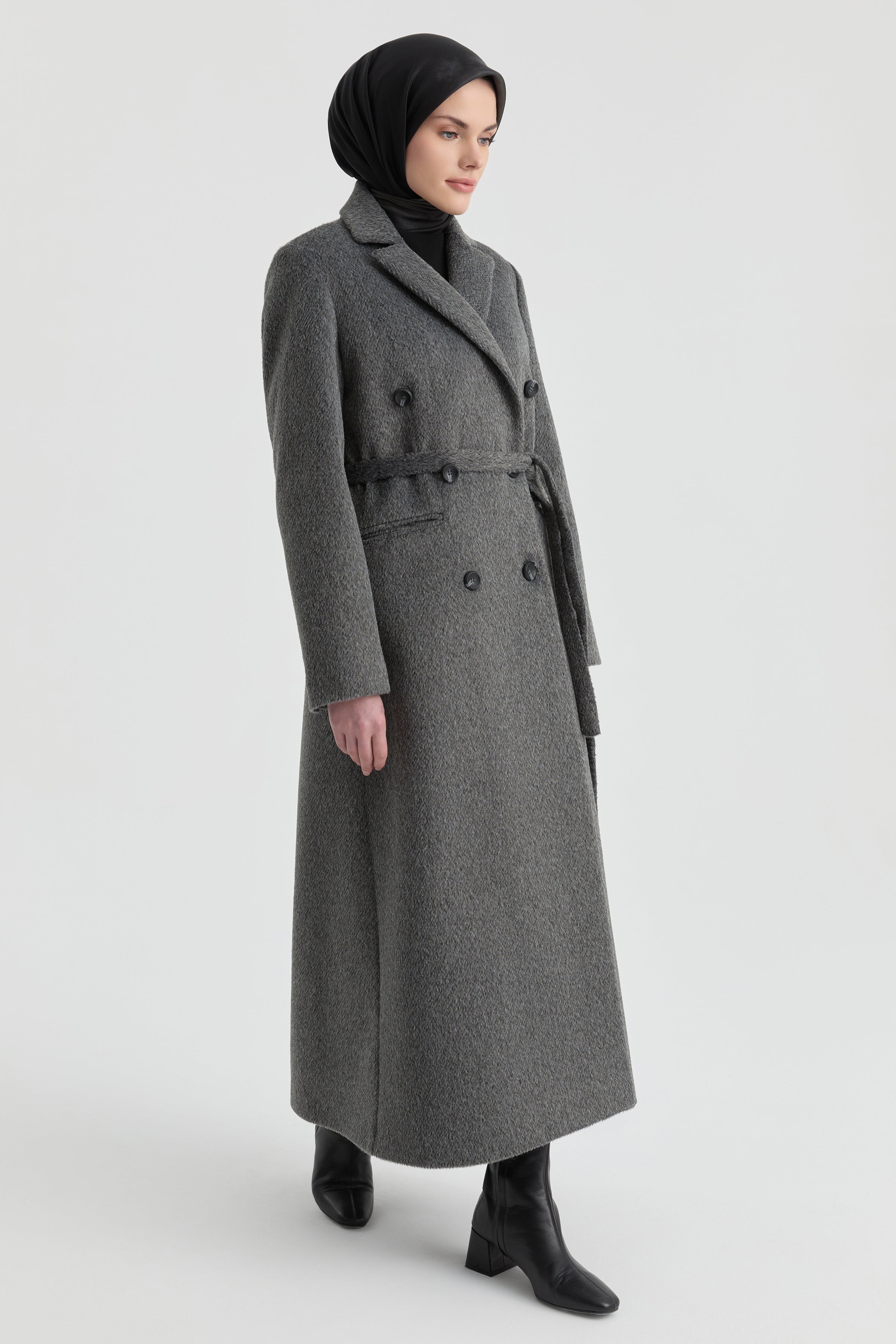Kruvaze İnce Kuşaklı Kaban - Antrasit