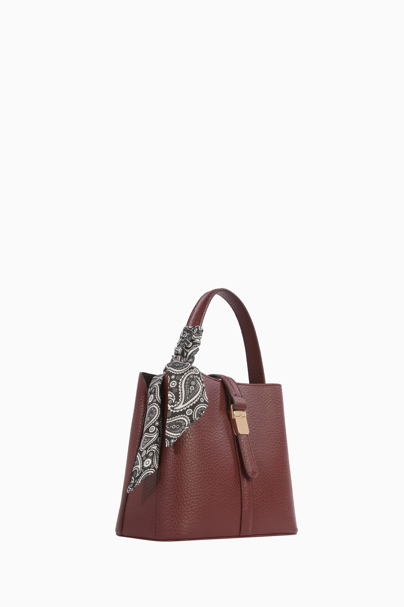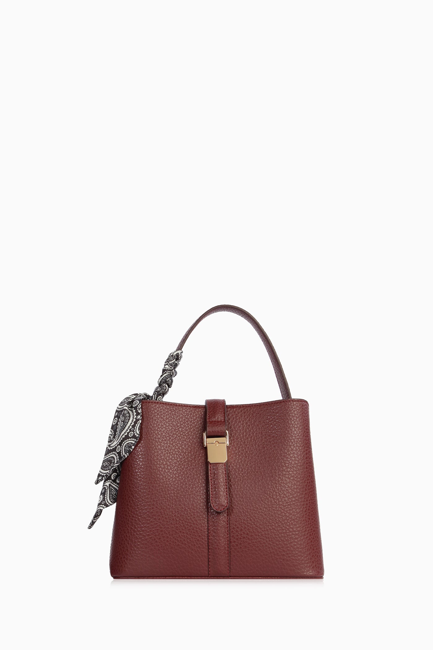 Metal aksesuarlarıyla öne çıkan bu çanta, minimal siluetine karakter katıyor.