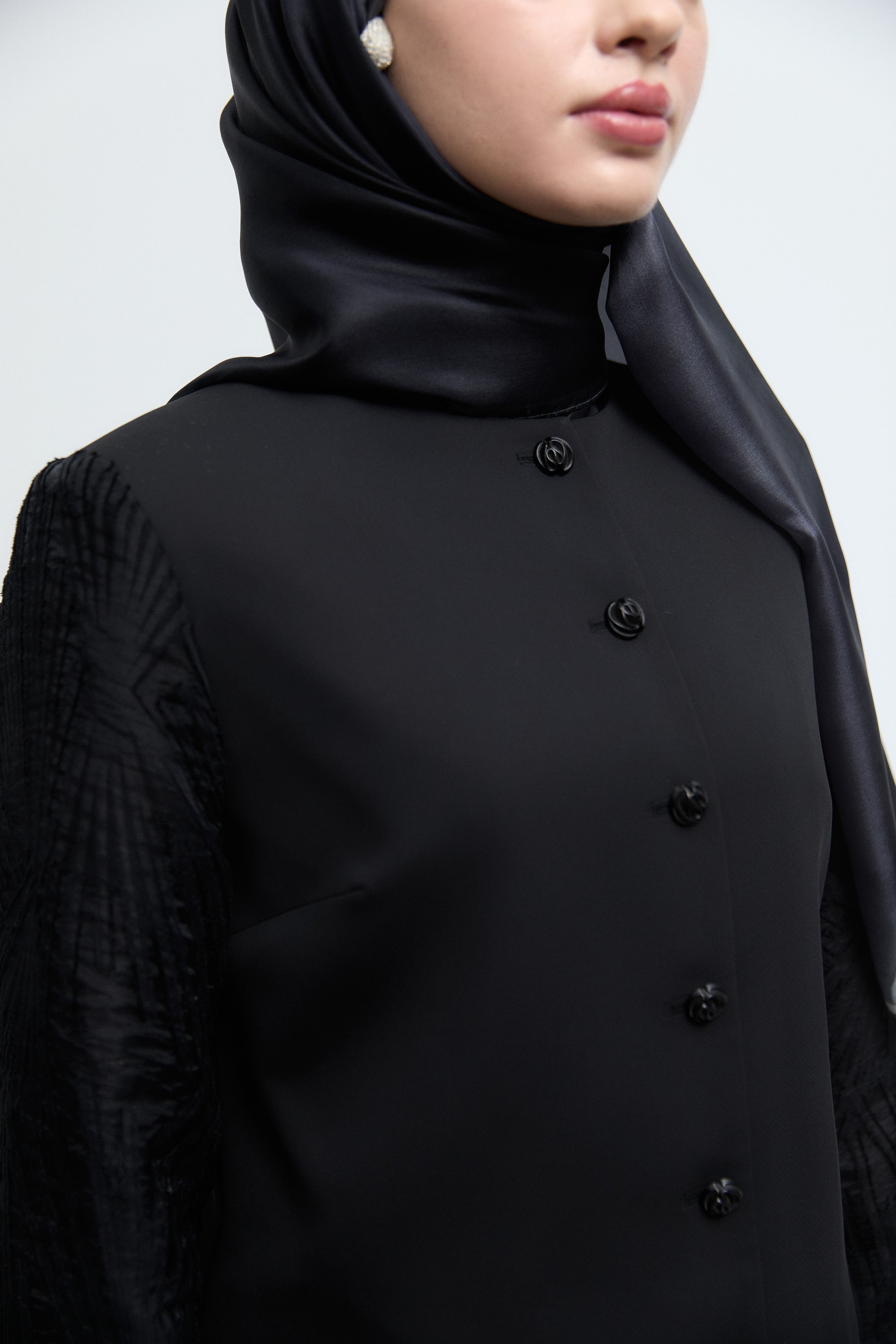 Önden Düğme Detaylı Takım - Siyah