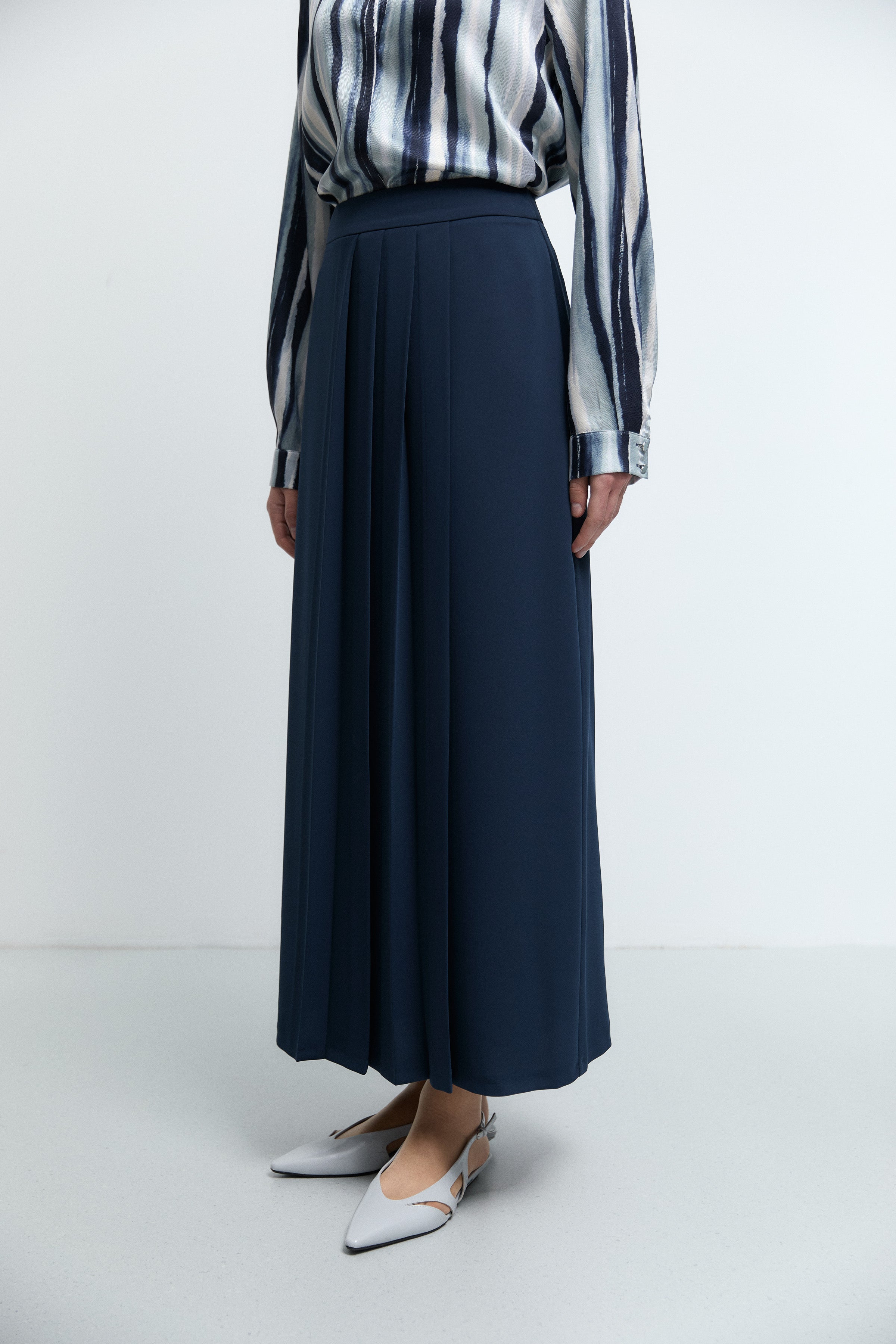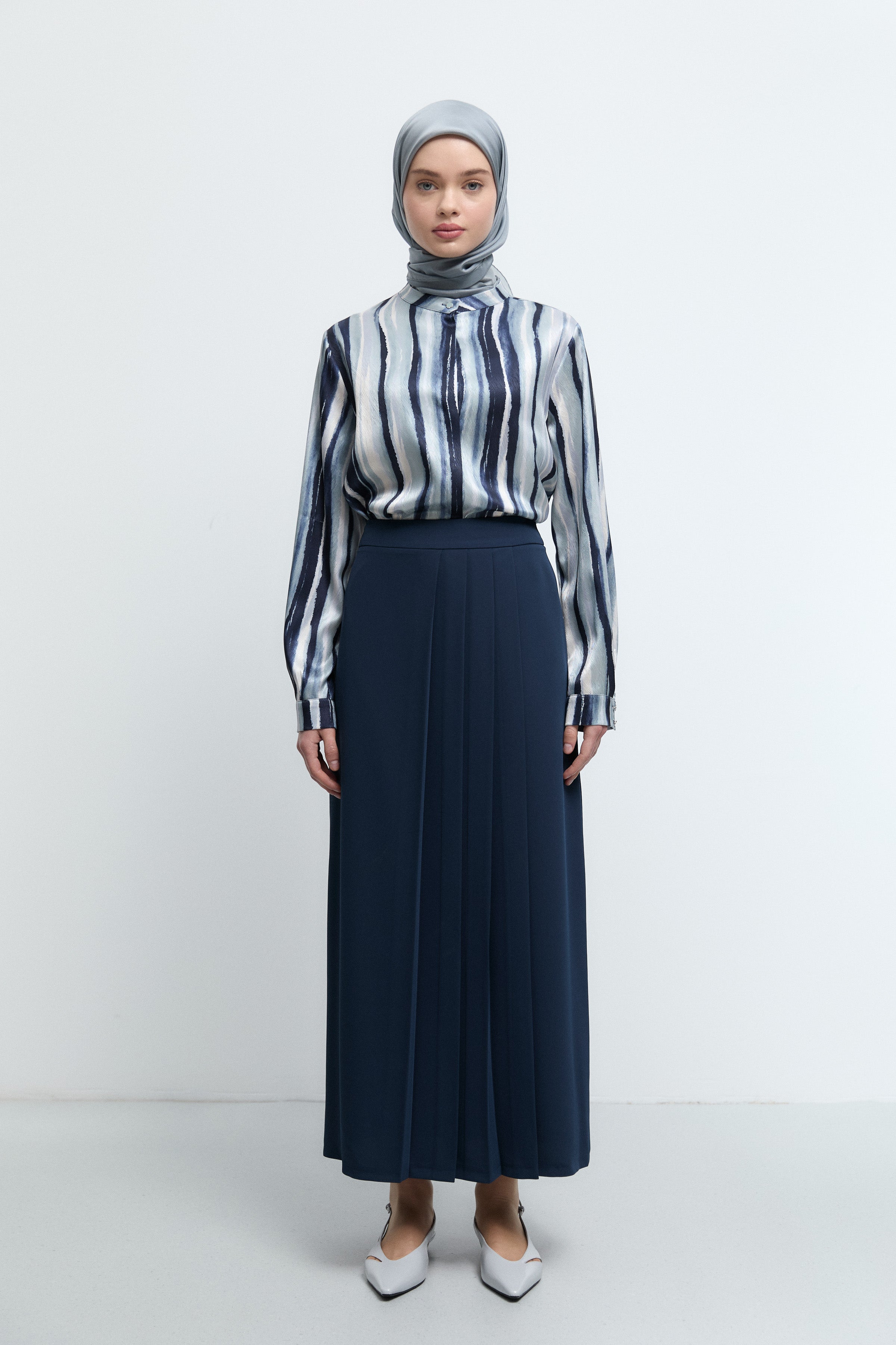 İncelikle tasarlanmış kırma vurgusuyla sade şıklığı zenginleştiren Önden Kırma Detaylı Etek, sofistike ve dengeli kombinler için seçkin bir parçadır.