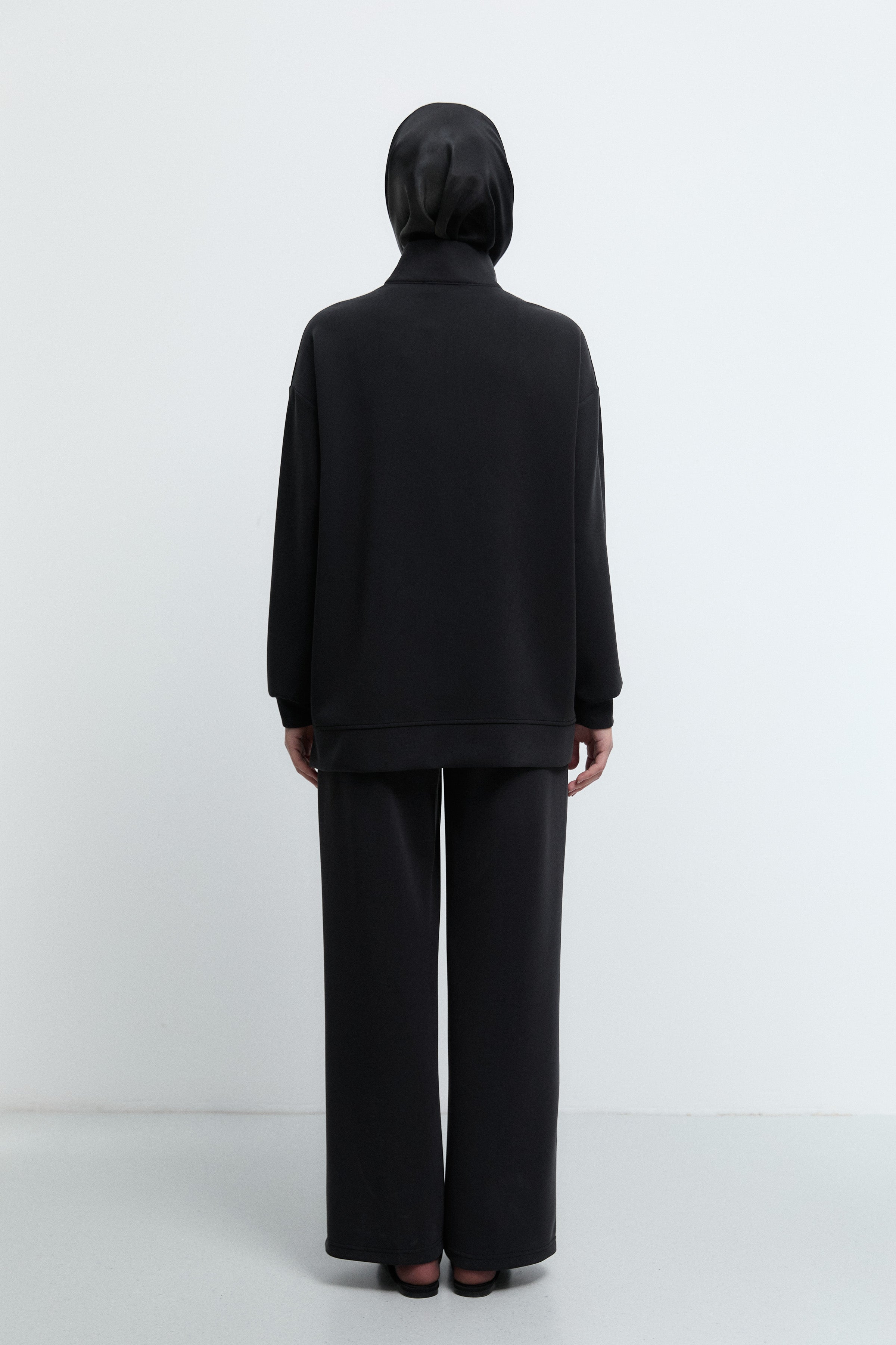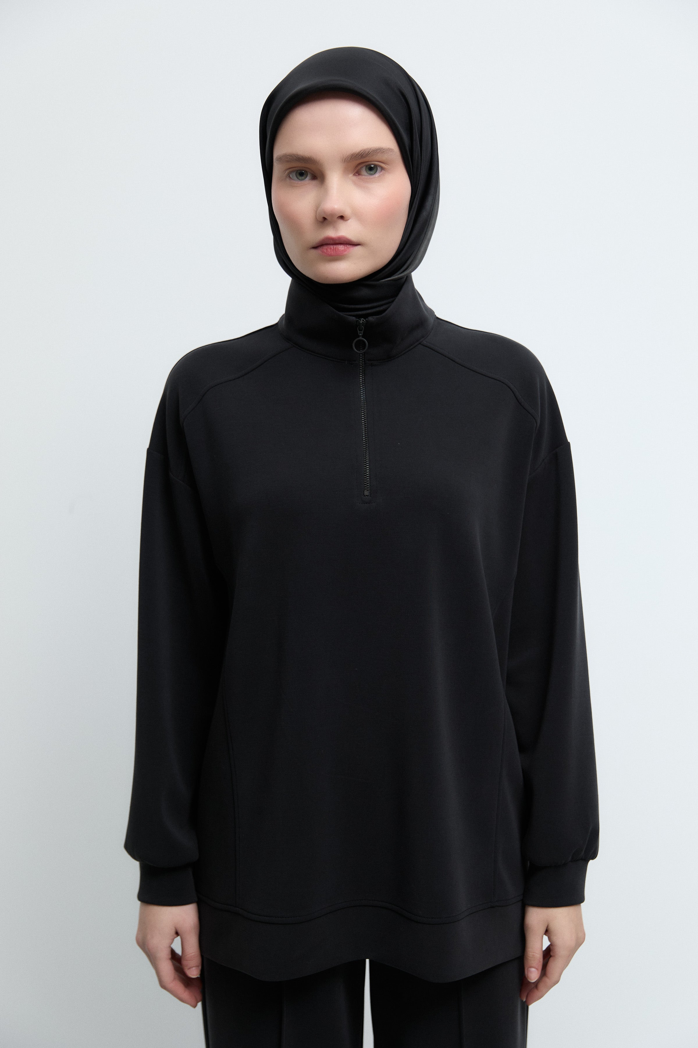 Ön fermuar detayıyla modern ve dinamik bir duruş sunan bu sweat, konforu rafine bir tasarım anlayışıyla buluşturur.