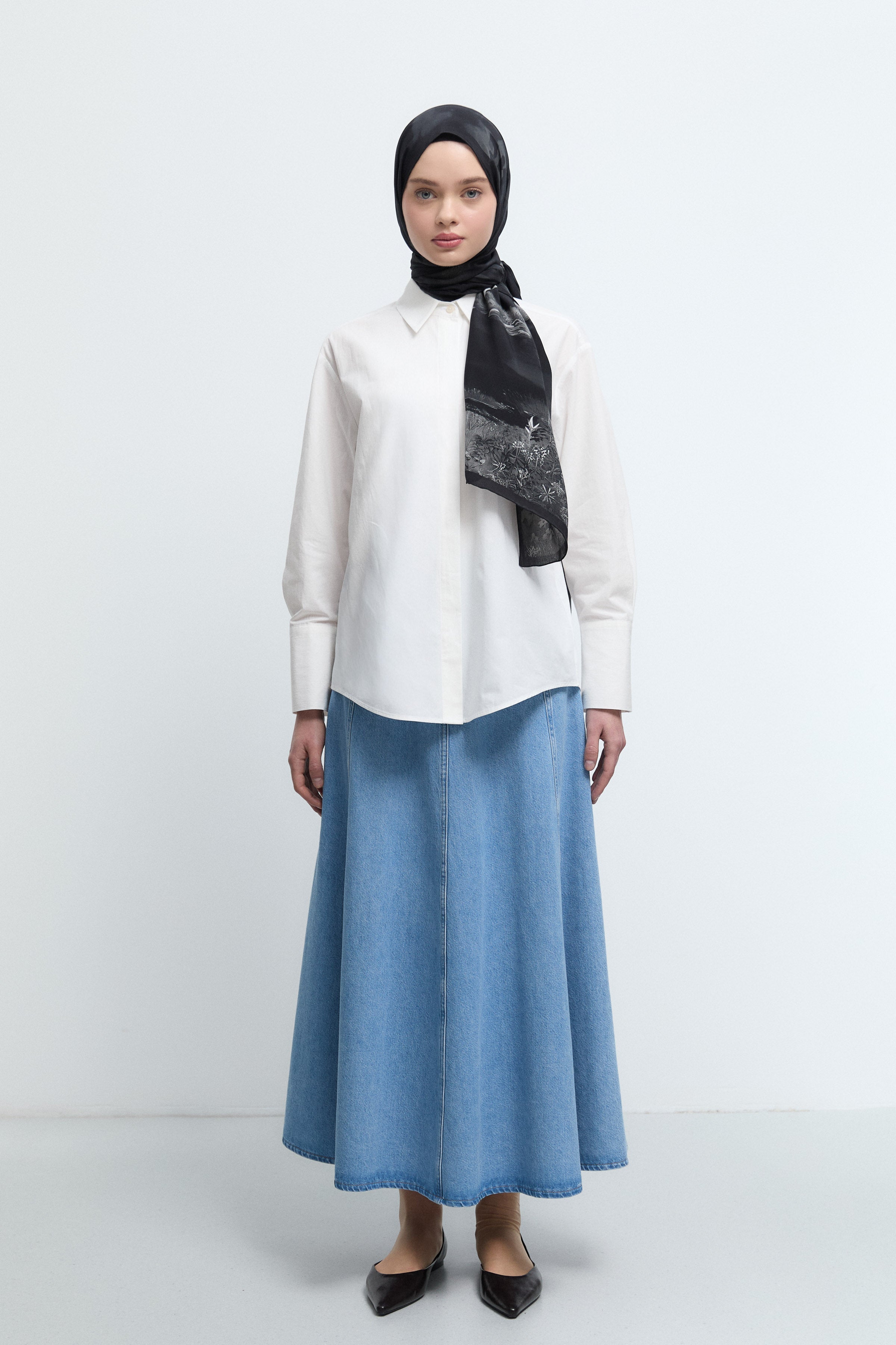 Yapılandırılmış omuz formu ve sade tasarımıyla öne çıkan Takma Kollu Gömlek, rafine ve profesyonel kombinlerin vazgeçilmez parçasıdır.