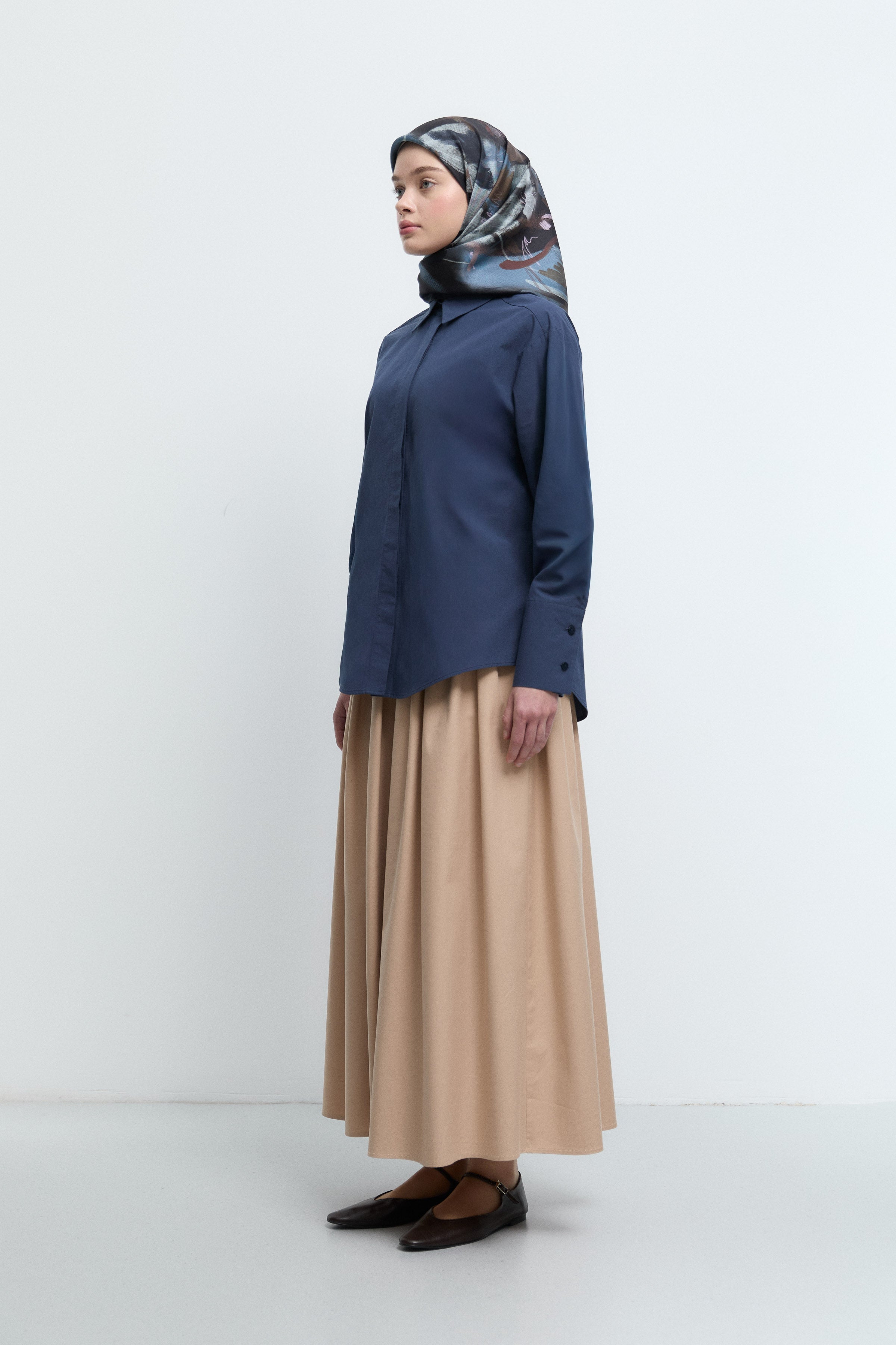 Yapılandırılmış omuz formu ve sade tasarımıyla öne çıkan Takma Kollu Gömlek, rafine ve profesyonel kombinlerin vazgeçilmez parçasıdır.
