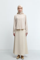 Yakadan Kırma Detaylı Bluz - Bej