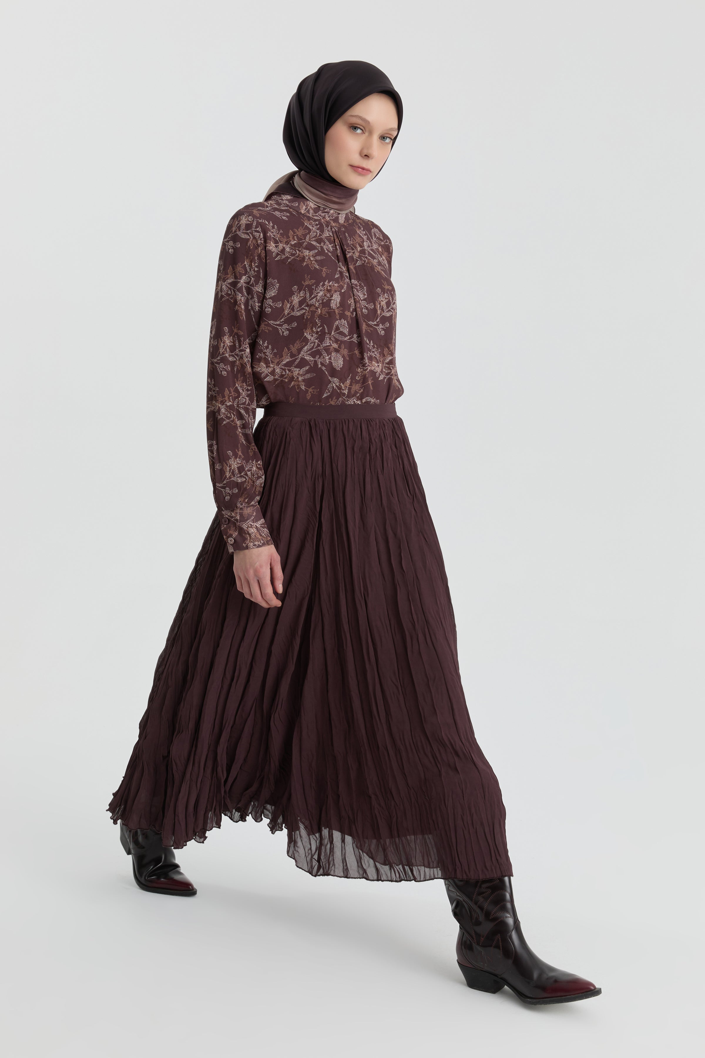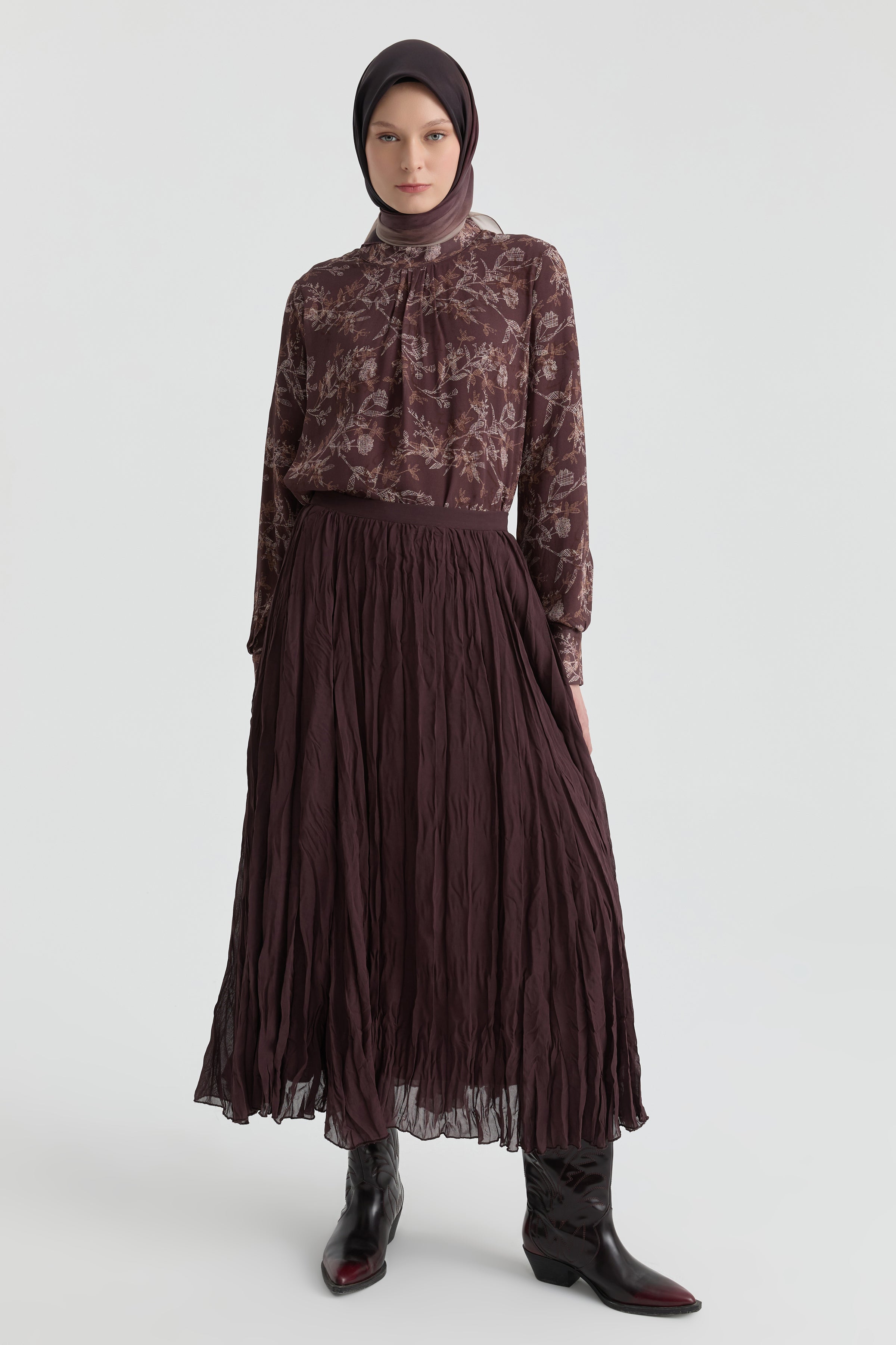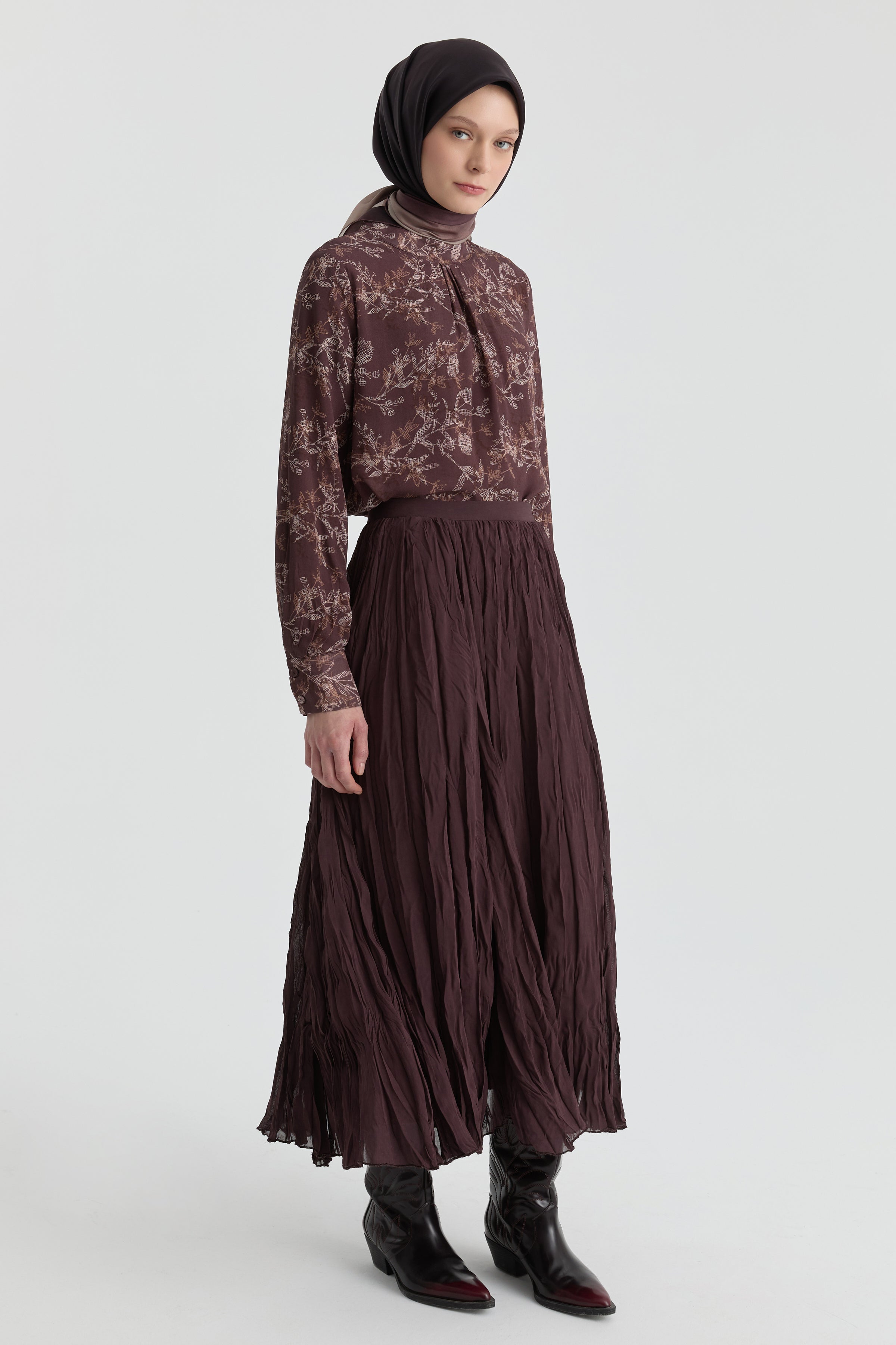 Crash Dokulu Uzun Etek - Kahve