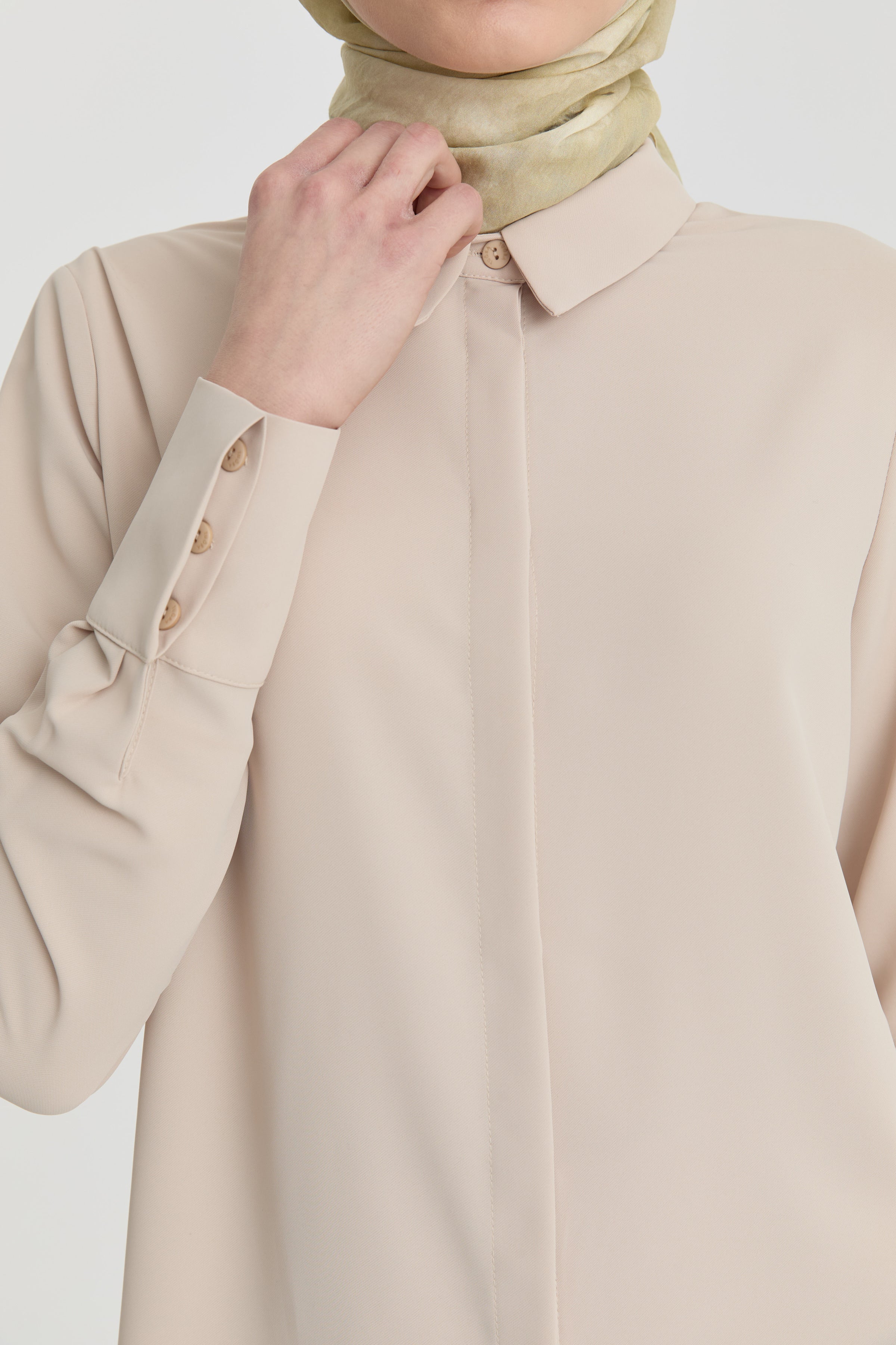 Gizli Patlı Basic Gömlek, zarif ve sade bir şıklık arayanlar için ideal bir seçimdir. Gizli düğme detayları, gömleğe modern bir görünüm kazandırırken, klasik kesimi her vücut tipine uyum sağlar.