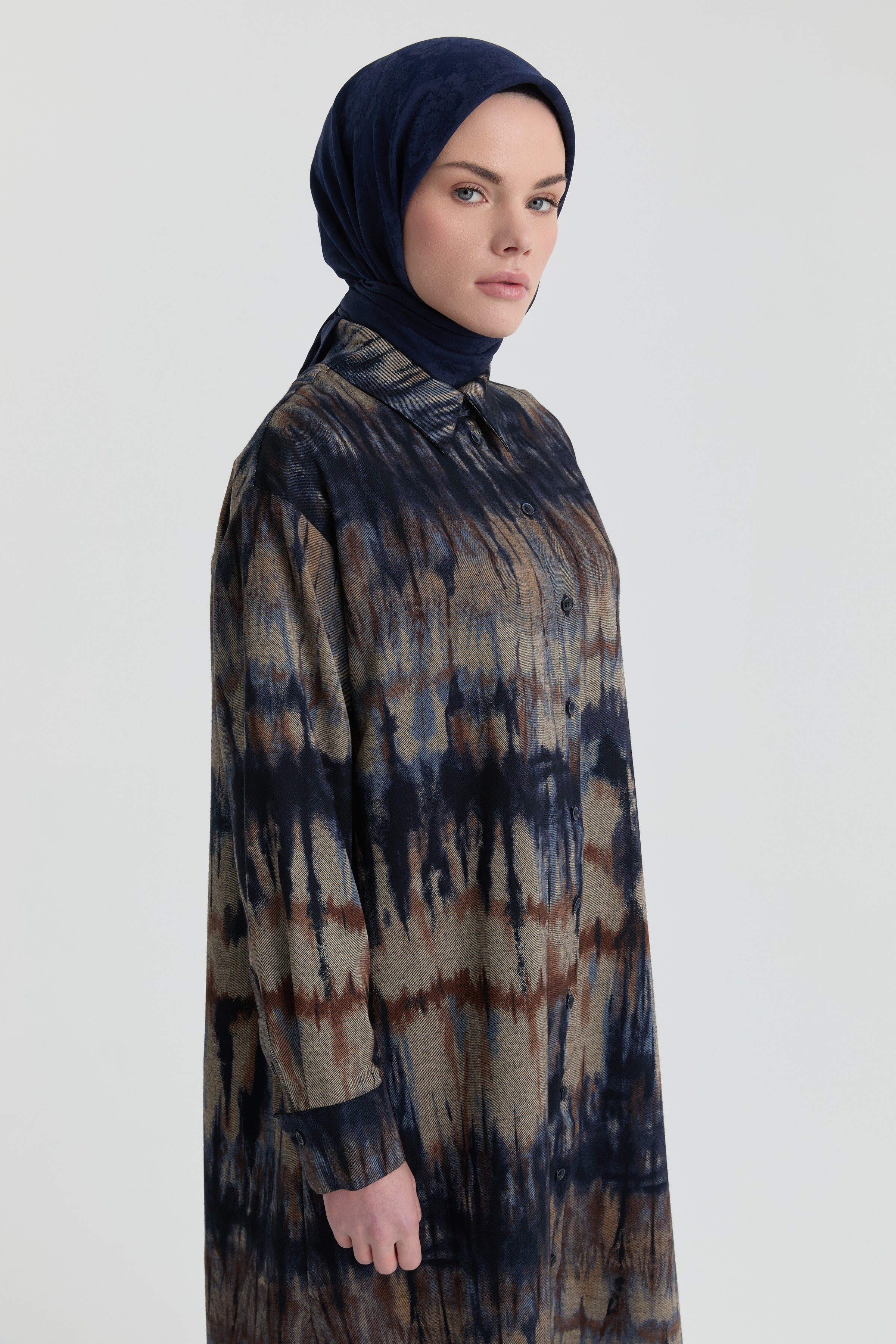 Gömlek yaka detayıyla klasik çizgileri modern bir siluetle buluşturan bu tunik, akıcı yapısıyla gün boyu konfor sunar.