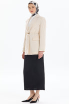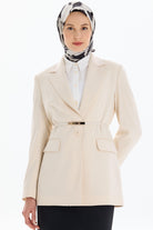 Blazer Yaka Yırtmaçlı Ceket - Bej