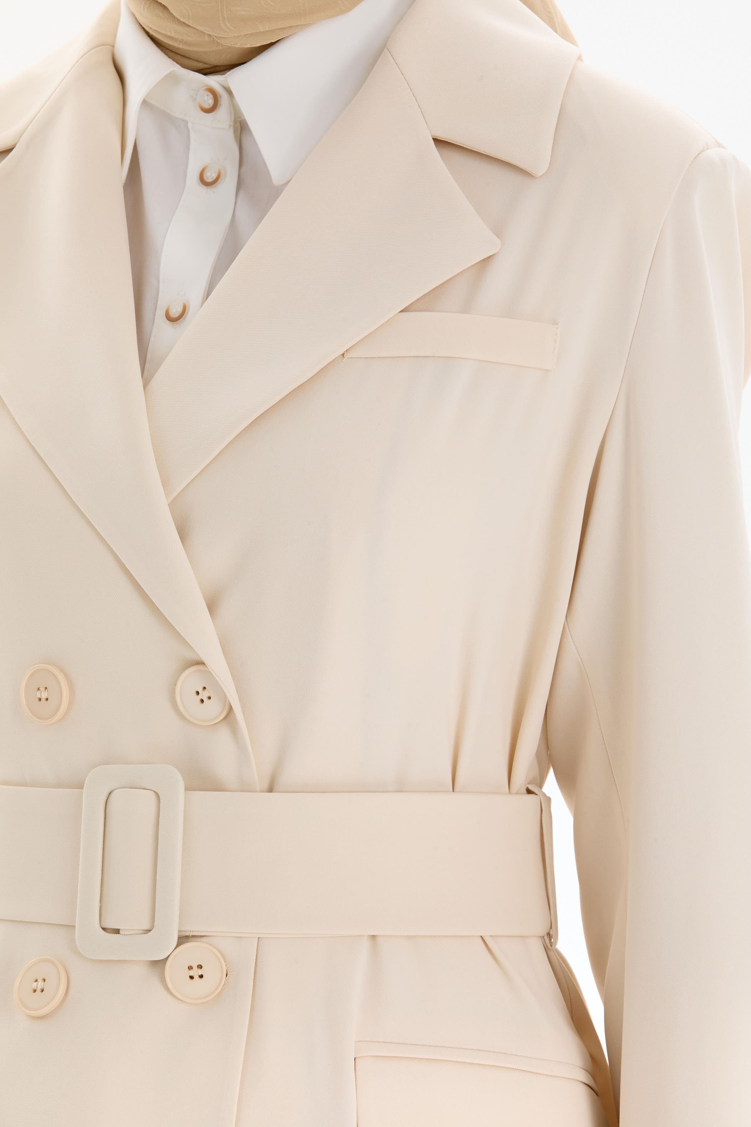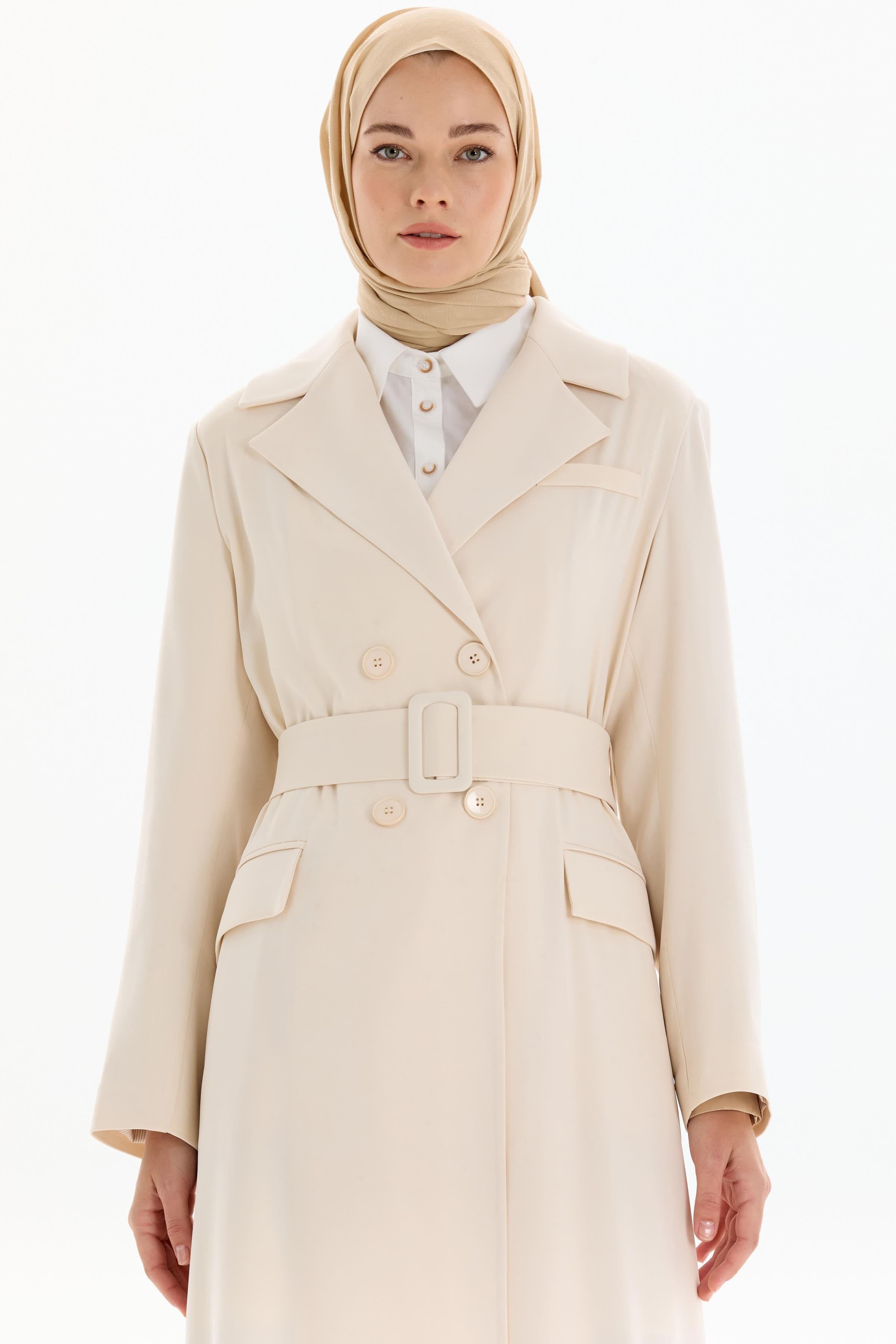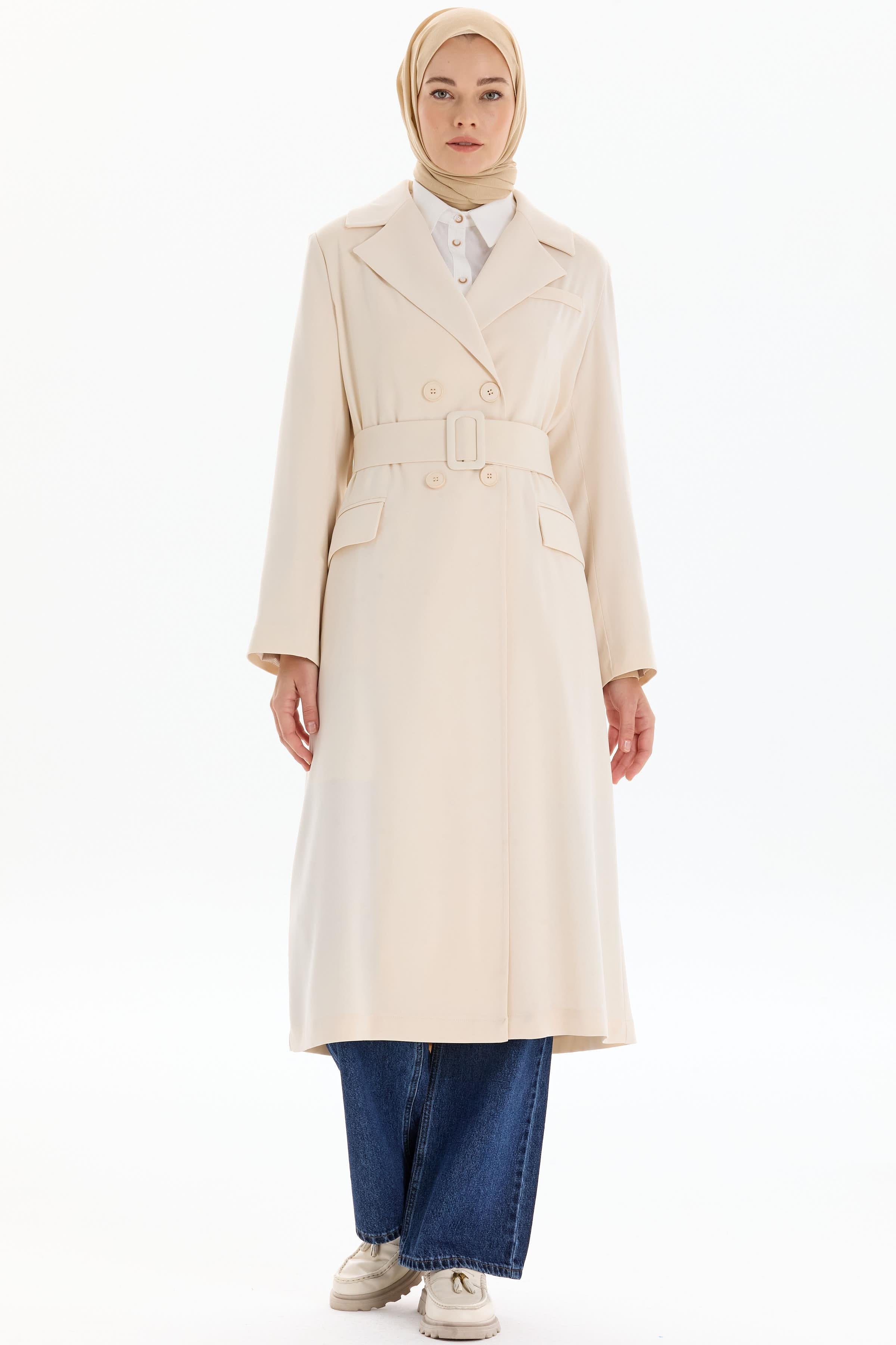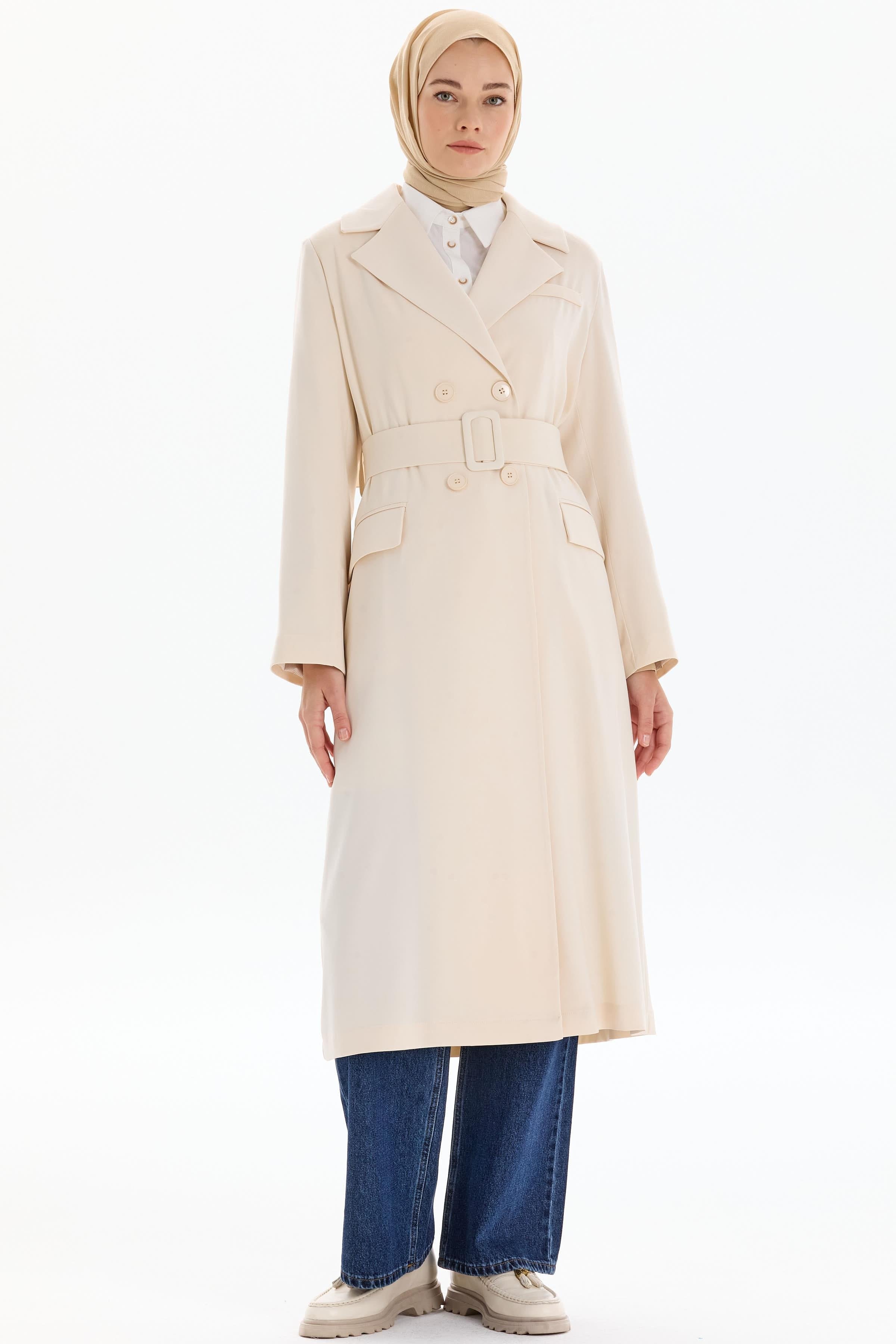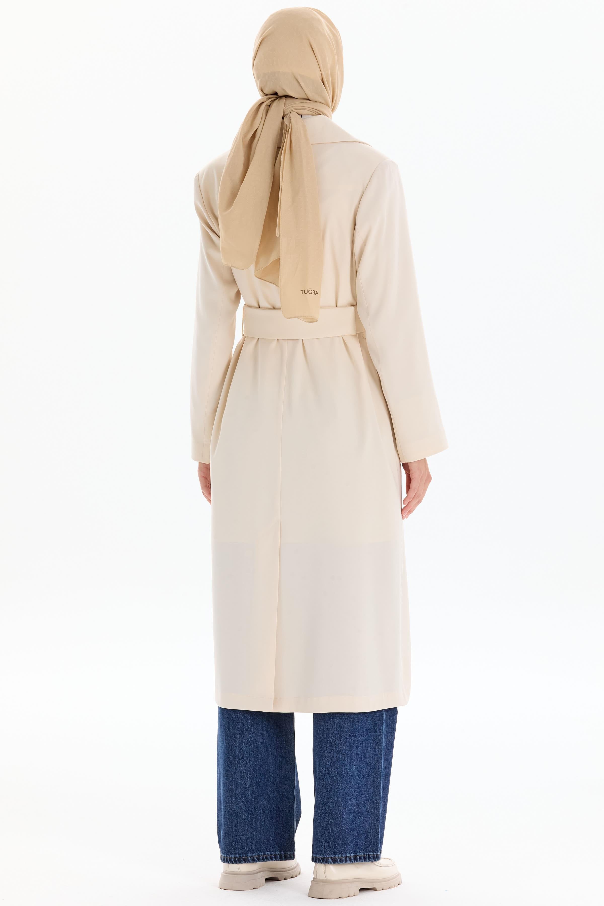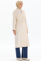 Garnili Duble Kollu Uzun Ceket - Bej
