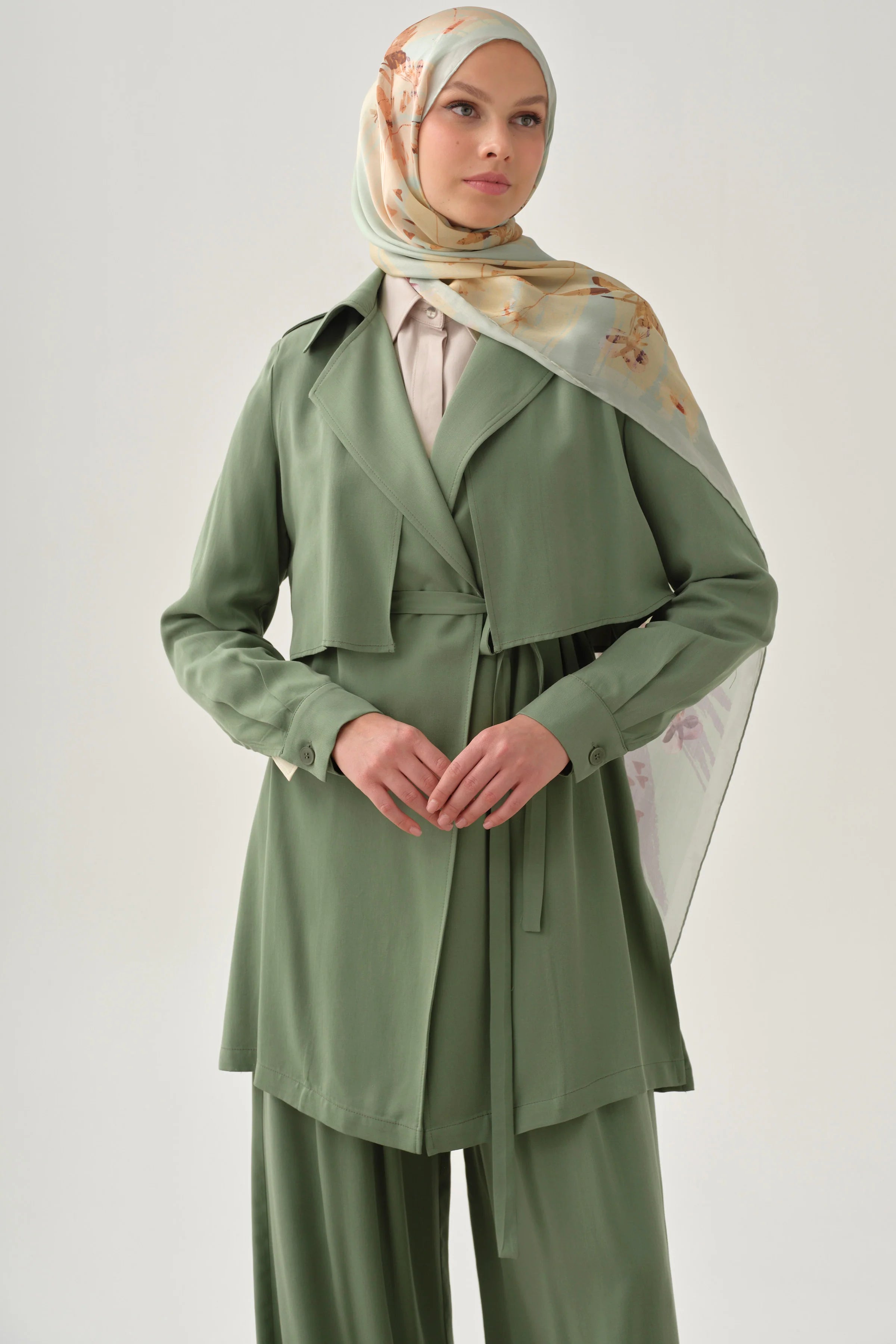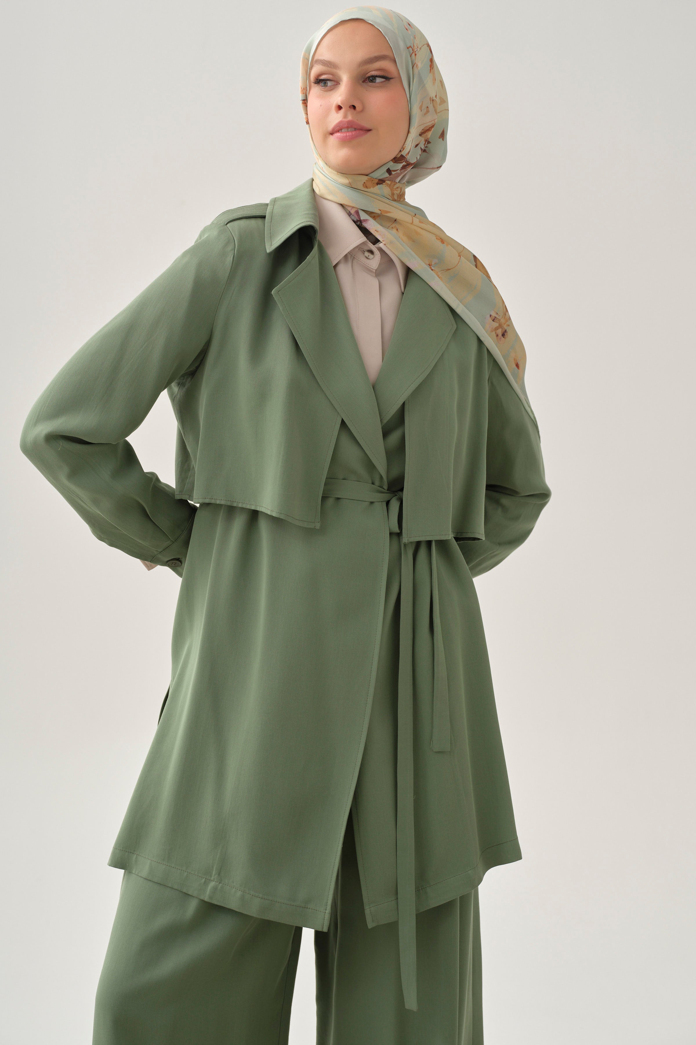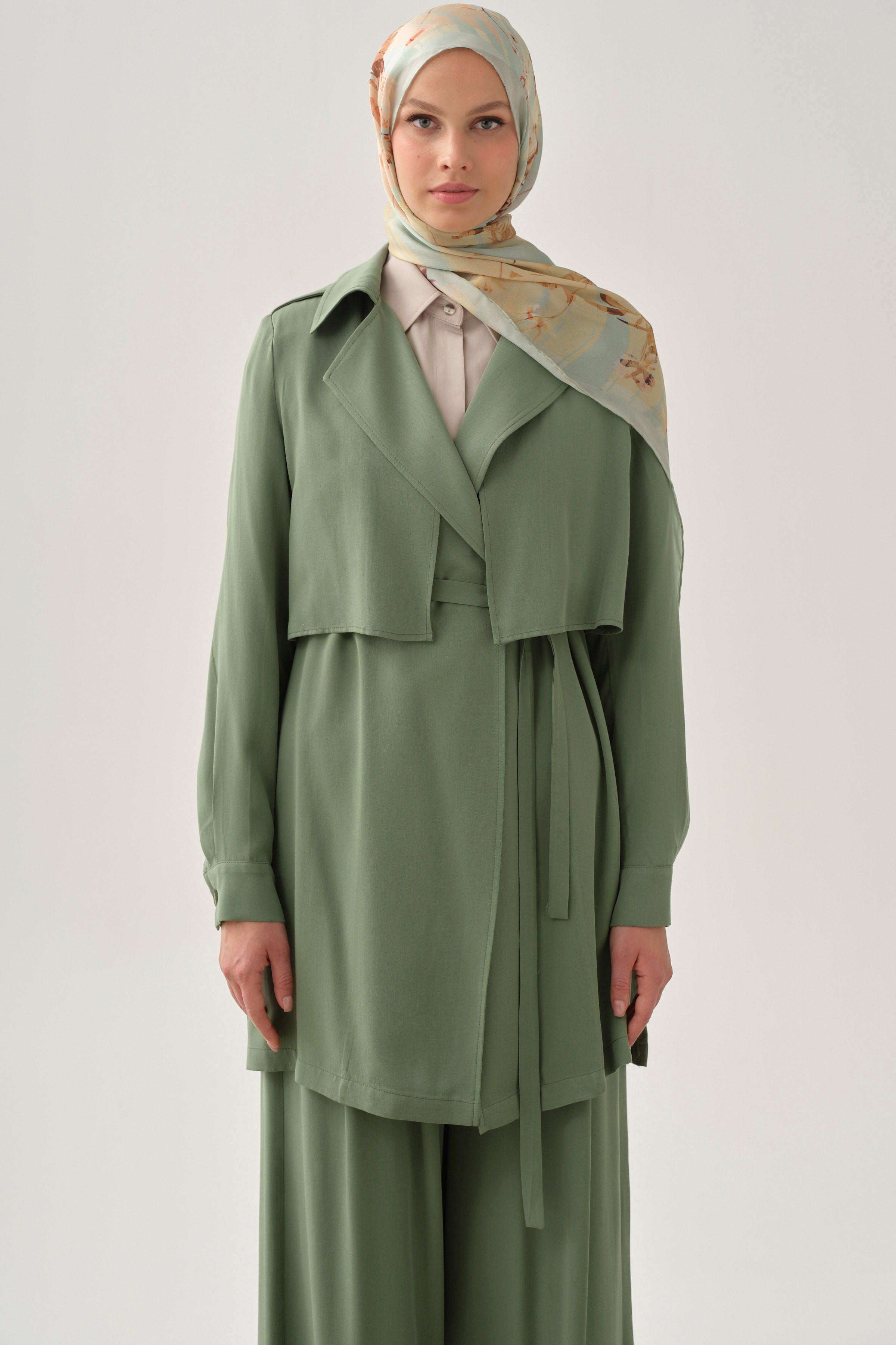 Manşetli Salaş Ceket - Göl Yeşili