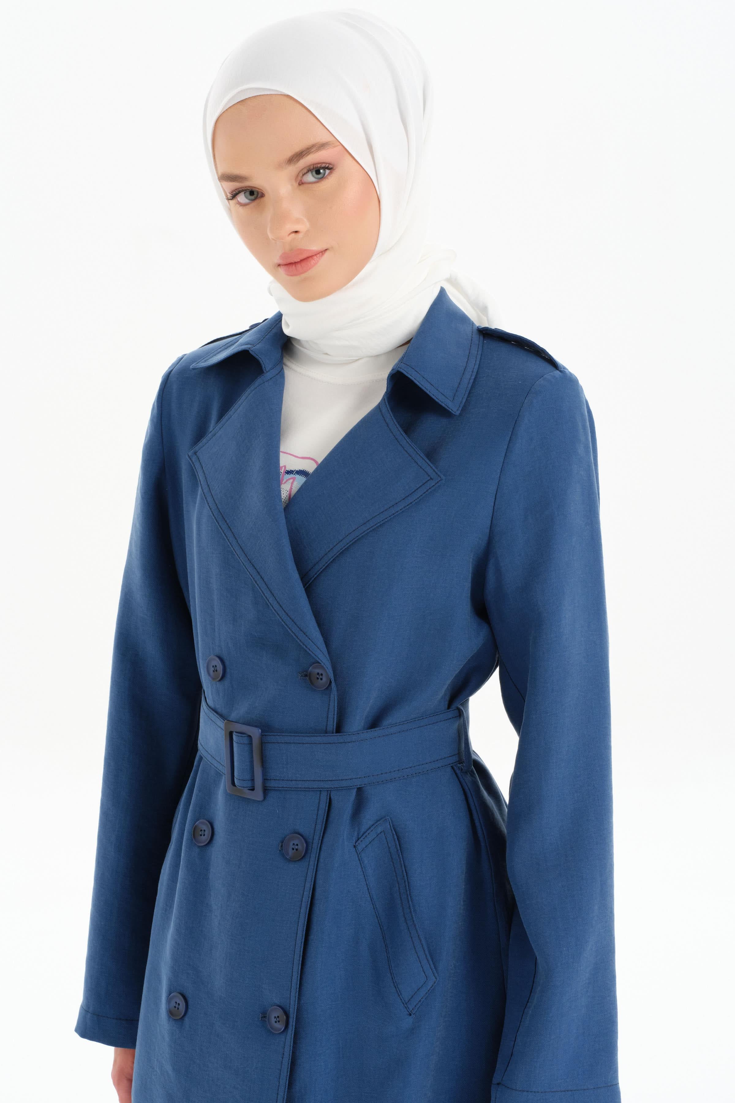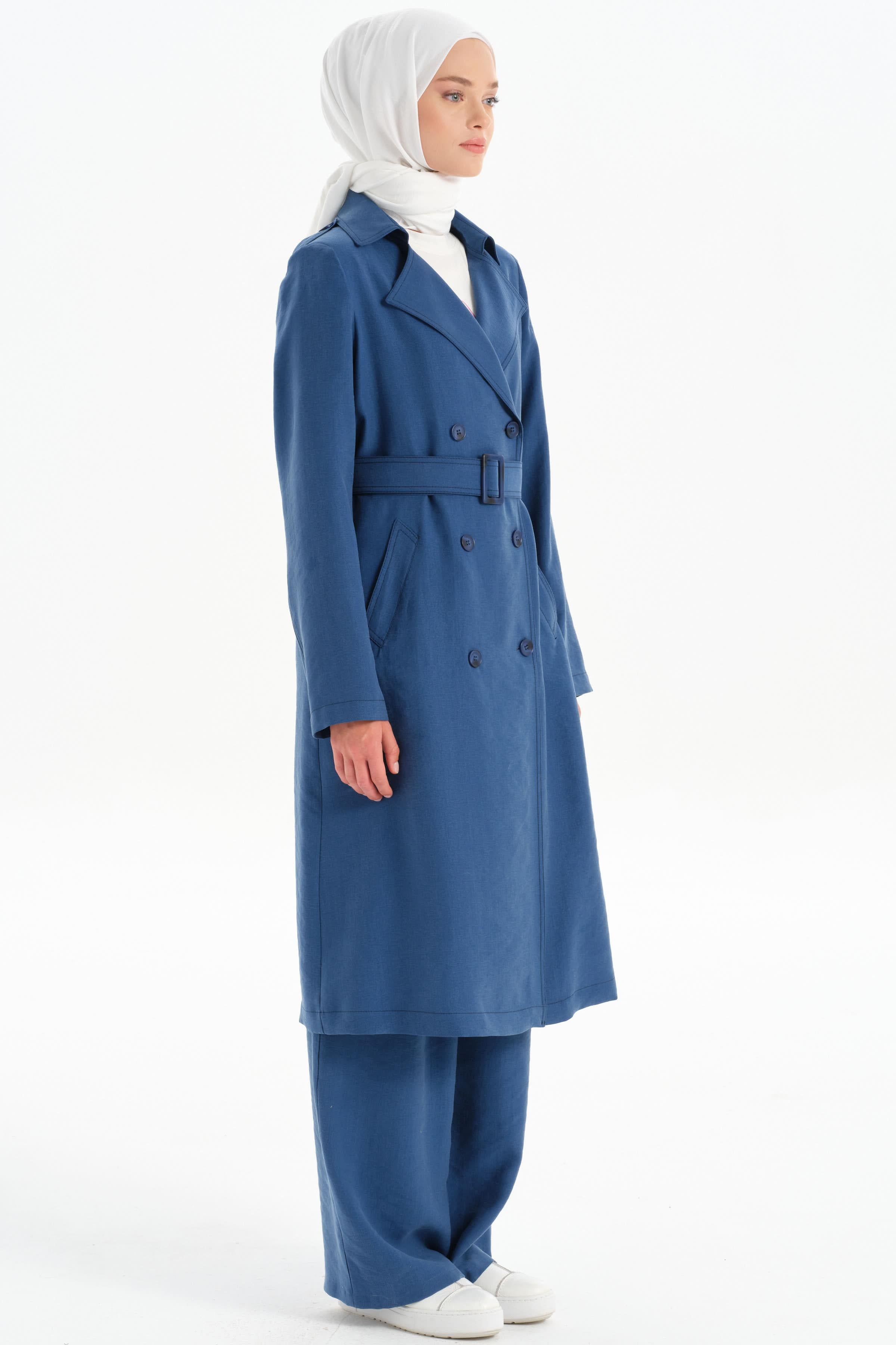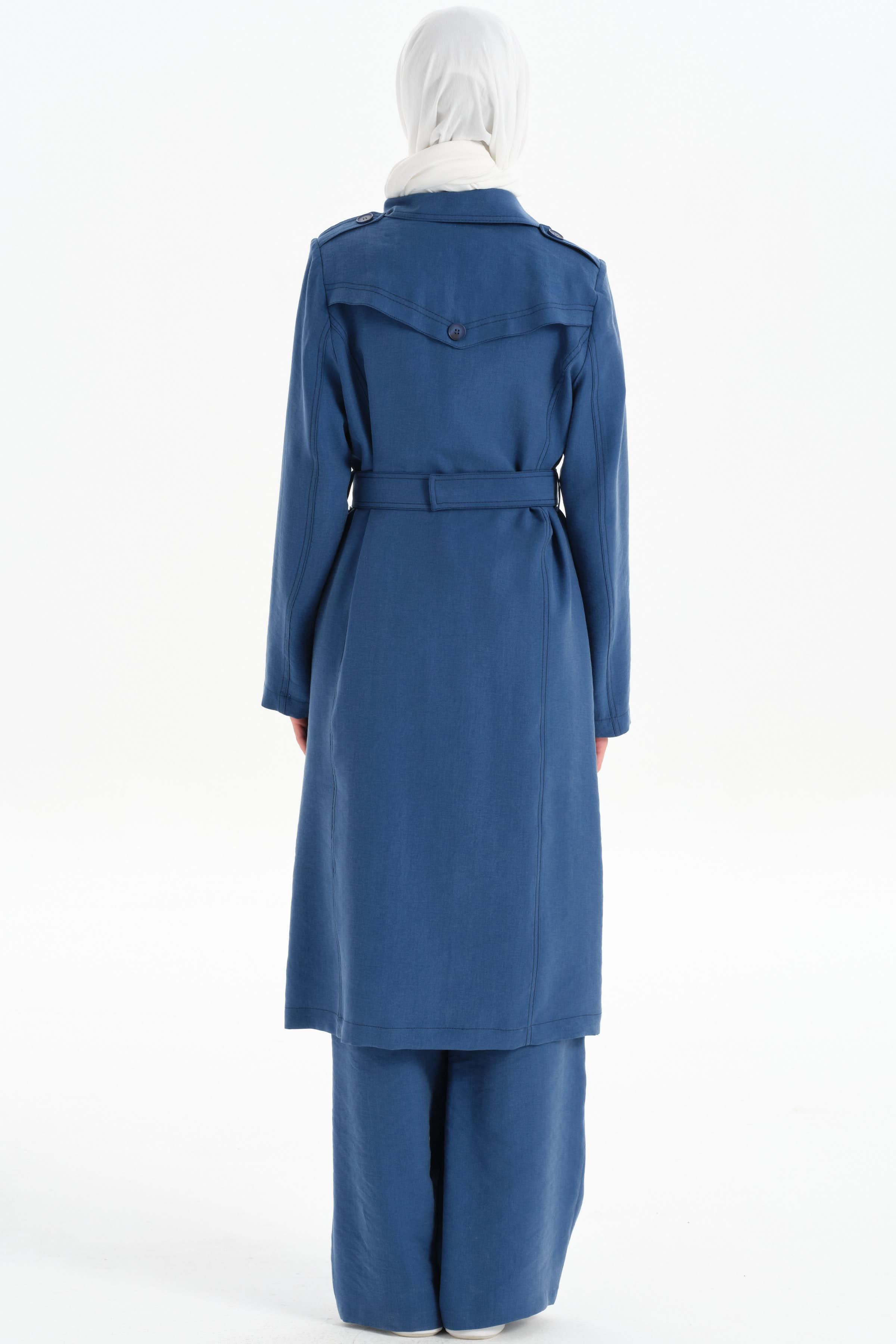 Apoletli Kruvaze Düğmeli Trenç - İndigo
